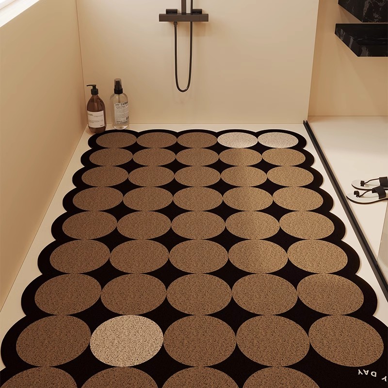 • 둥근 다크 커피 실크 원형 욕실 매트
