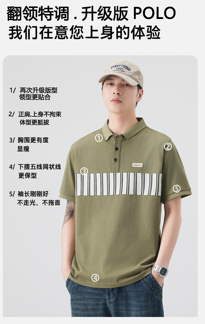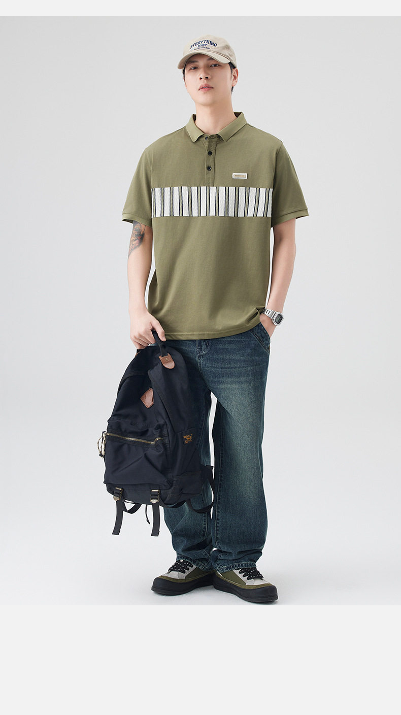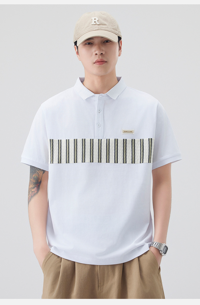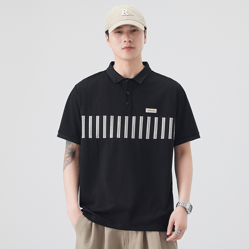 트렌디 한 브랜드 반팔 폴로 셔츠 남자 여름 옷깃 티셔츠 트렌디 스티칭 줄무늬 티셔츠 캐주얼 올 매치 탑스토어 가기