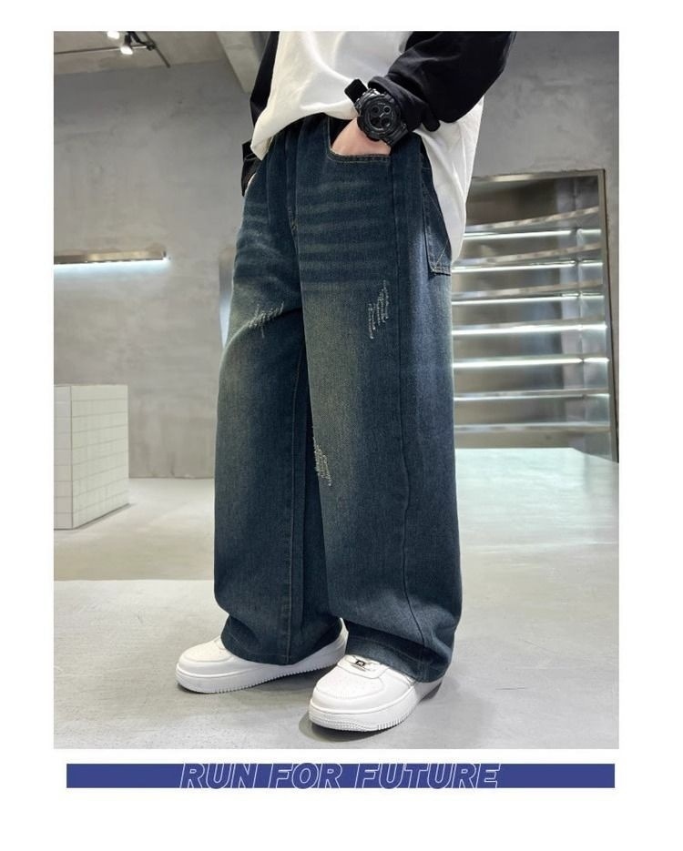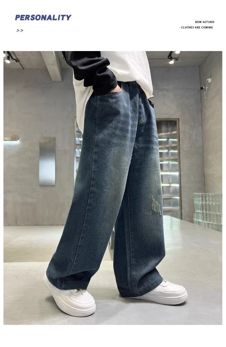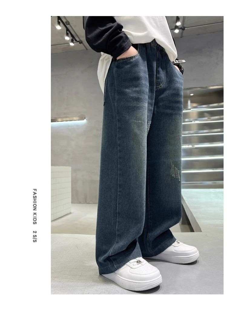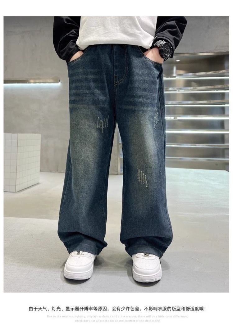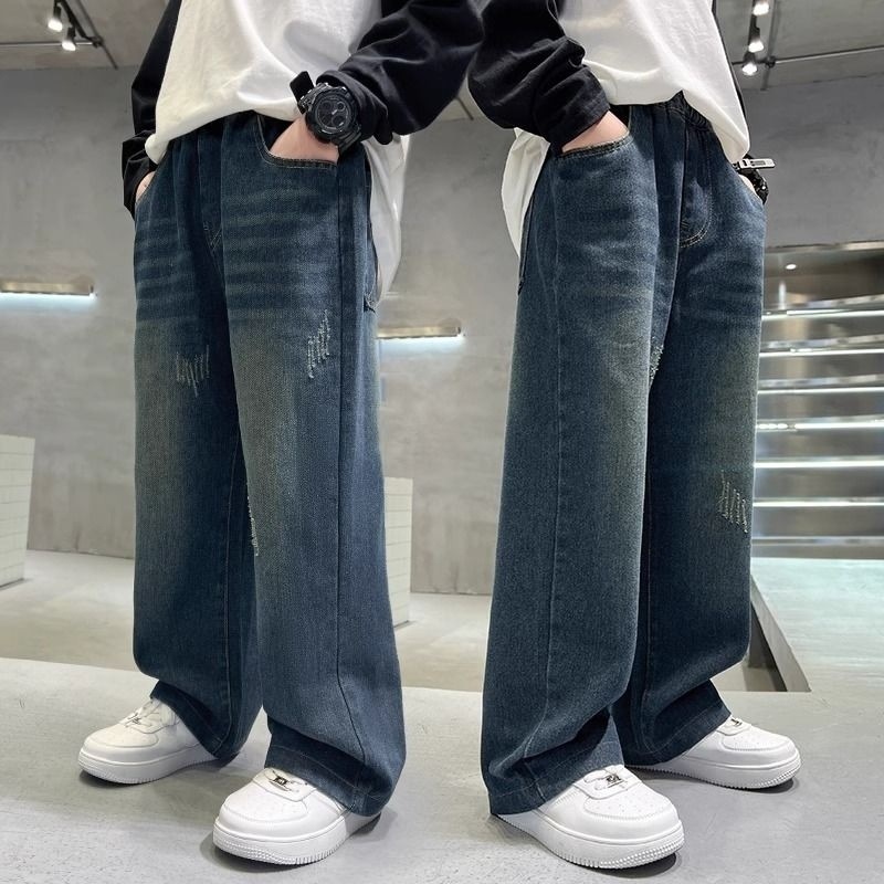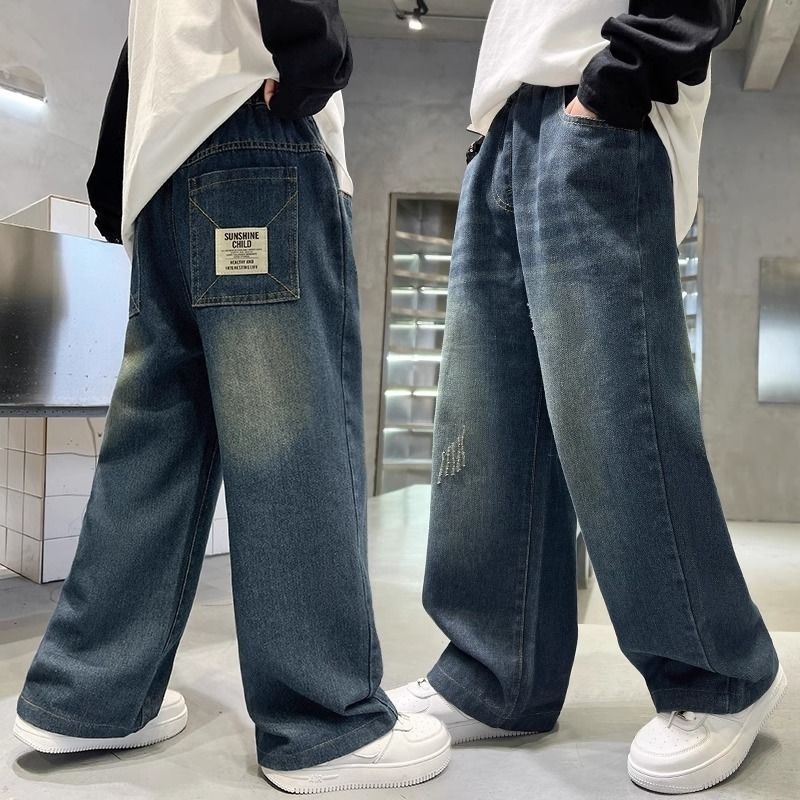 [1050 컬렉션] 어린이 소년 바지 2025 새 대형 어린이 스트레이트 바지 느슨한 넓은 다리 데님스토어 가기