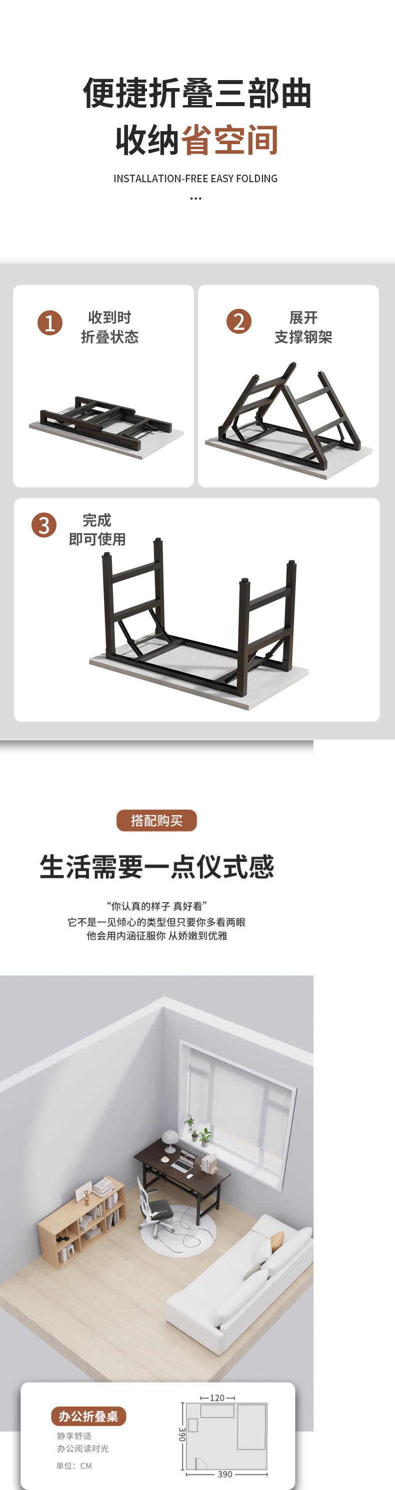 긴 접이식 테이블 식탁 컴퓨터 책상 긴 테이블 간단한 쓰기 책상 교육 데스크 회의 및 전시 테이블 의자스토어 가기