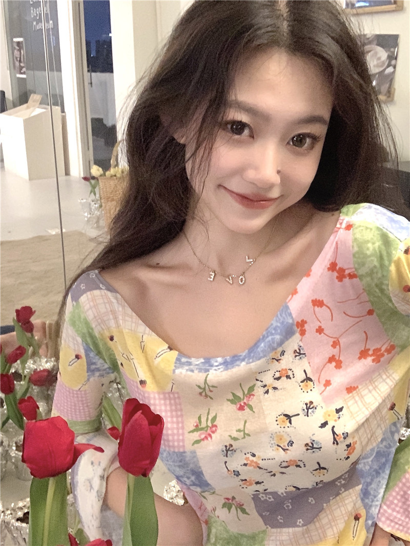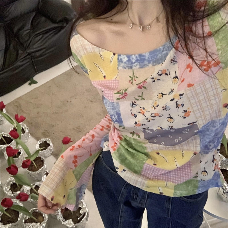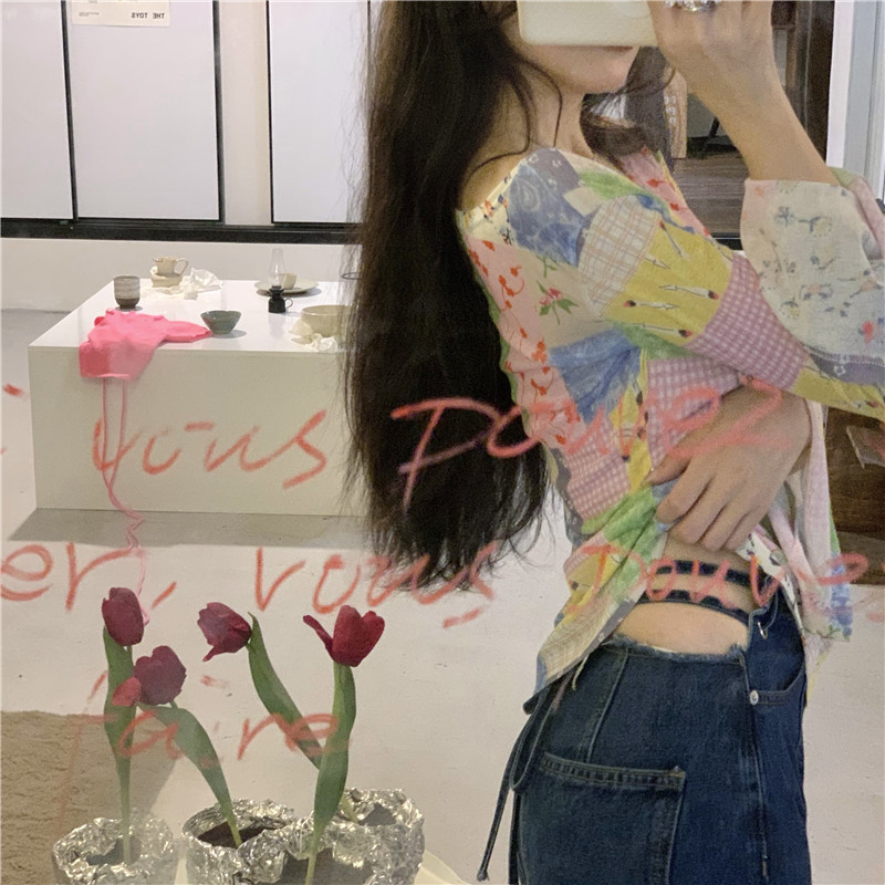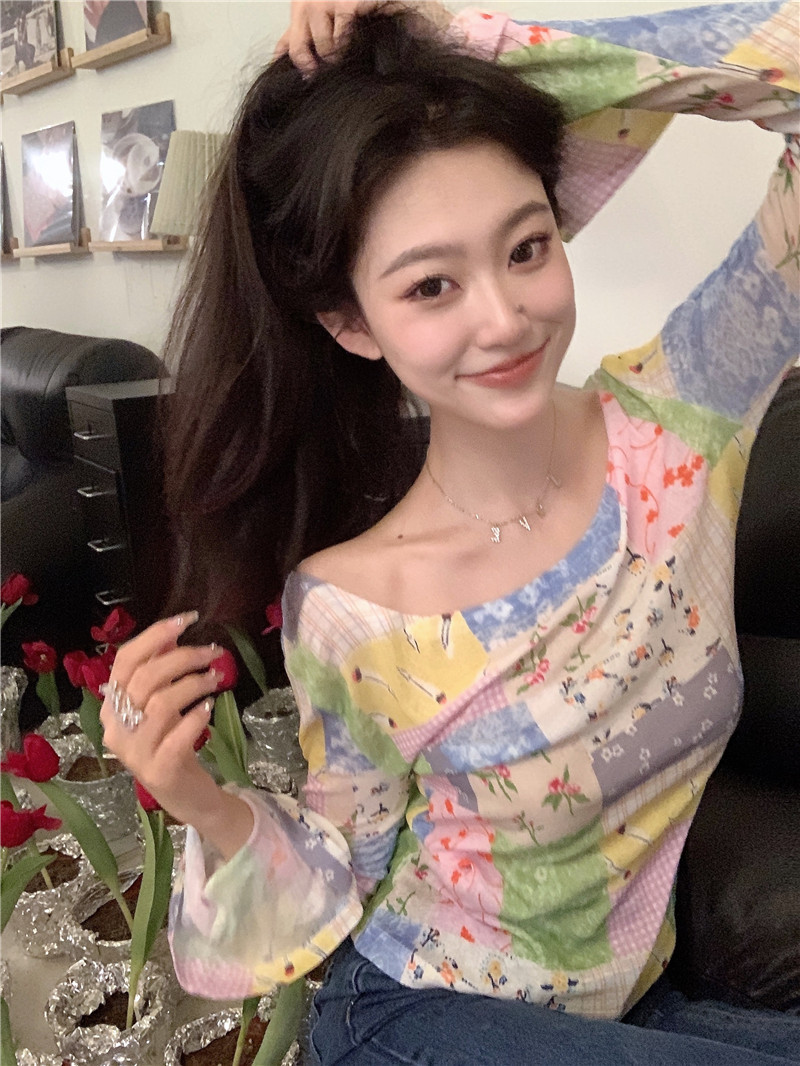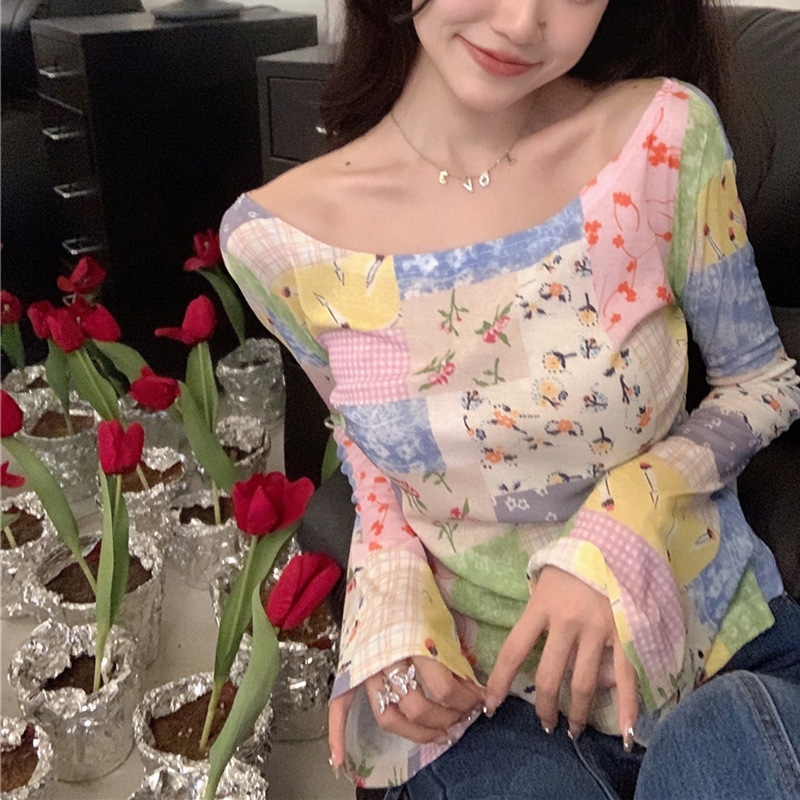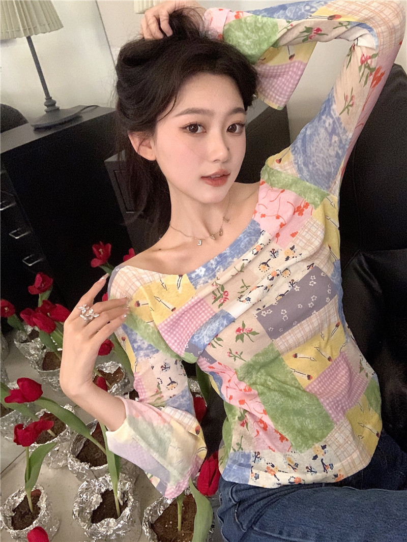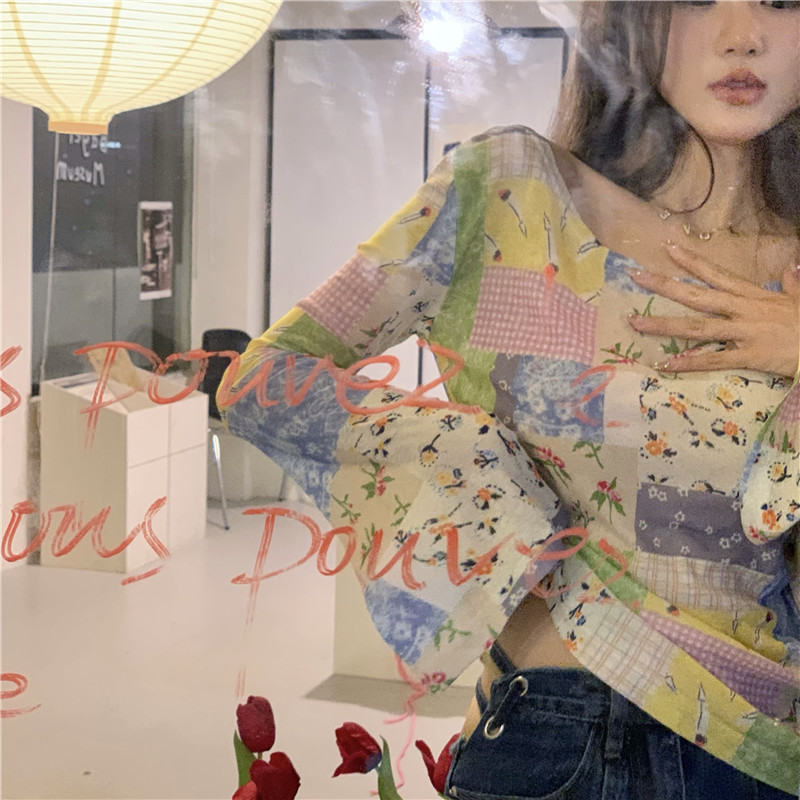 봄과 가을 여름 짧은 선 스크린 탑 여성의 긴팔 티셔츠 디자인 센스 니쉬 메쉬 우아한 내베이스 셔츠스토어 가기