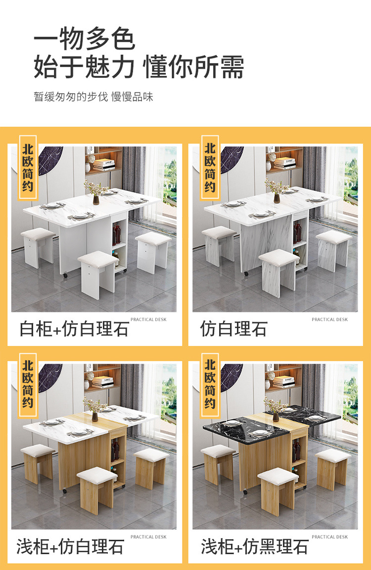 접이식 식탁 가구 작은 아파트 다기능 이동식 테이블 4 개의 의자 바퀴 식탁 공장 공급스토어 가기