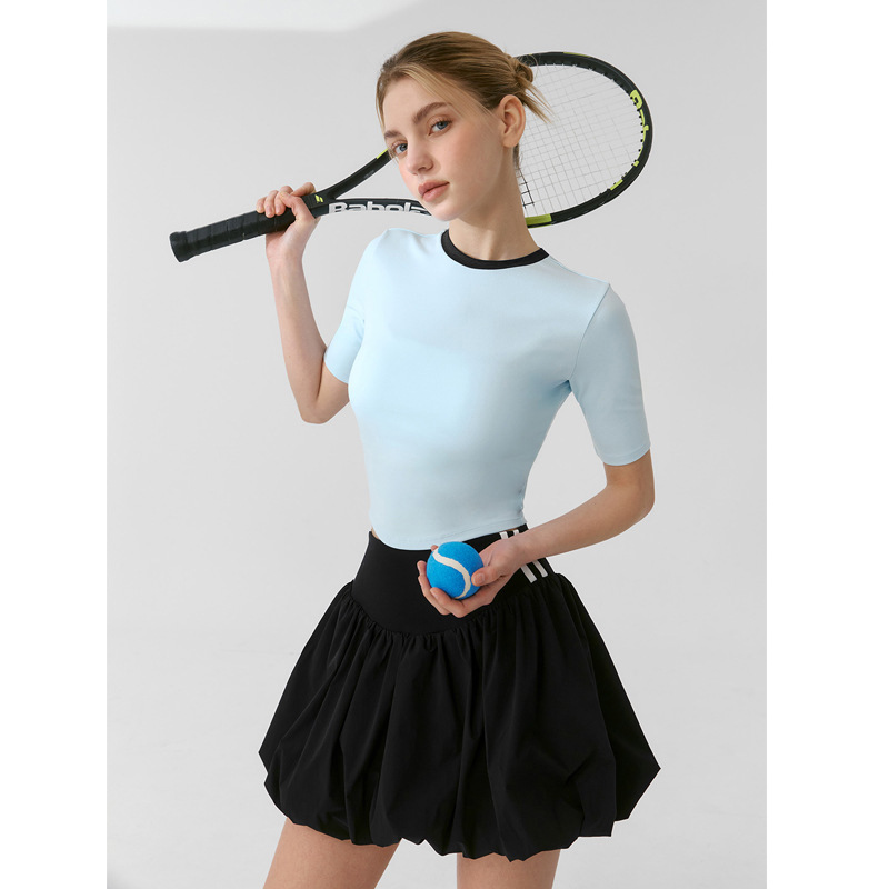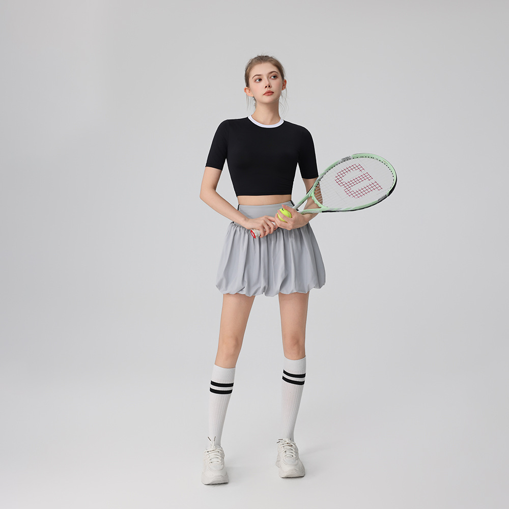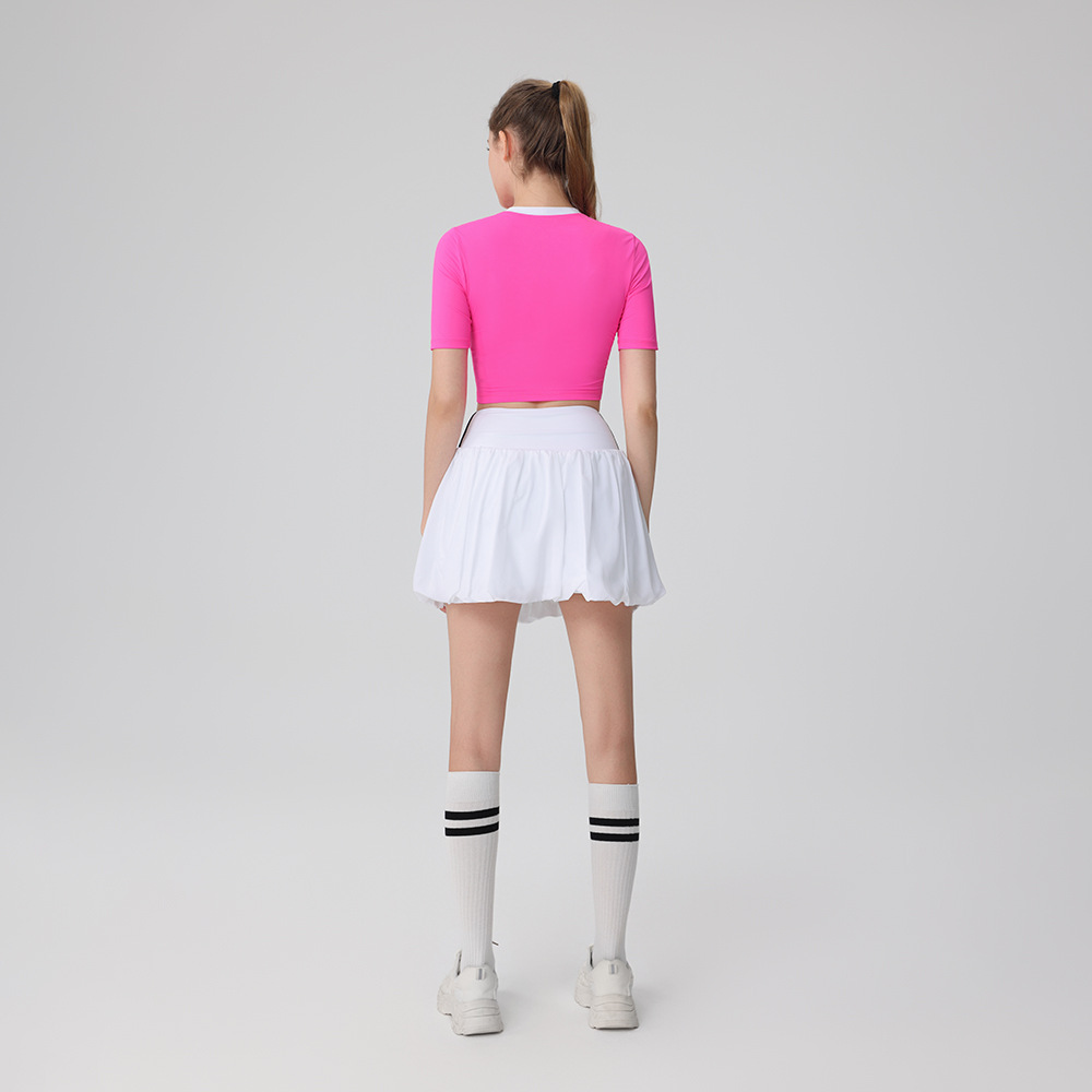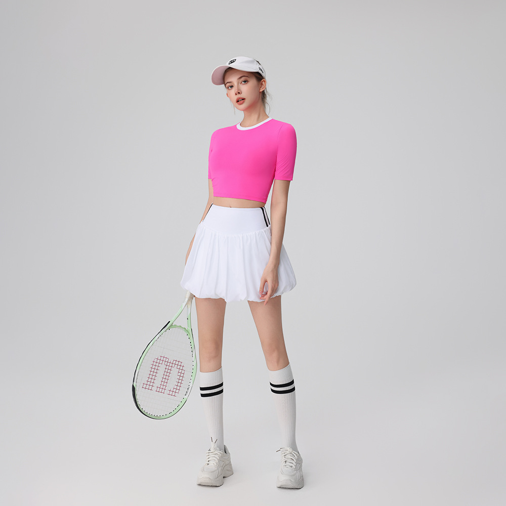 2025 새로운 여름 반팔 꽃 캐주얼 배드민턴 스커트 정장 슬리밍 골프 여성 테니스 정장