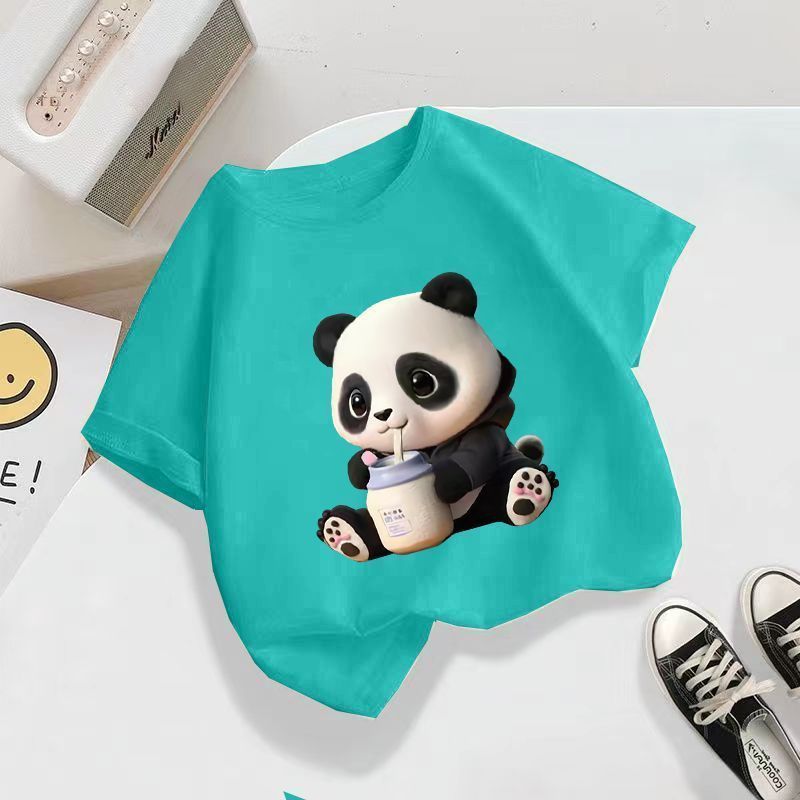 남자와 여자의 유행 반팔 티셔츠 어린이 여름 서양식 반소매 탑 티셔츠 빅 보이 잘 생긴 트렌디