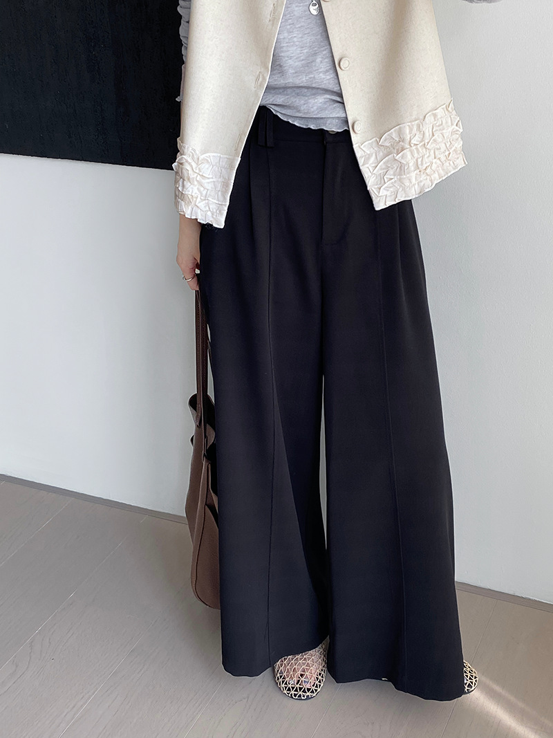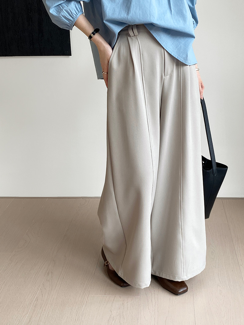 [복지모델은 반품불가] 나모의 한국식 하이웨이스트 루즈 와이드팬츠 여성 드레이프 슬림 스트레이트 팬츠 6052