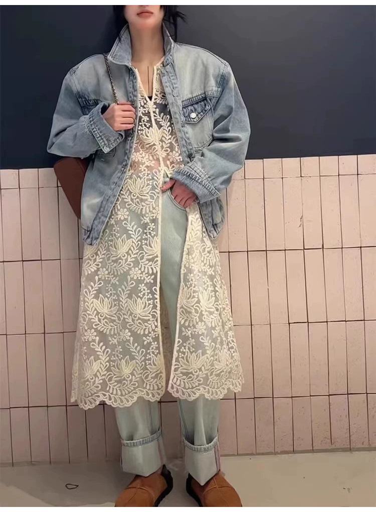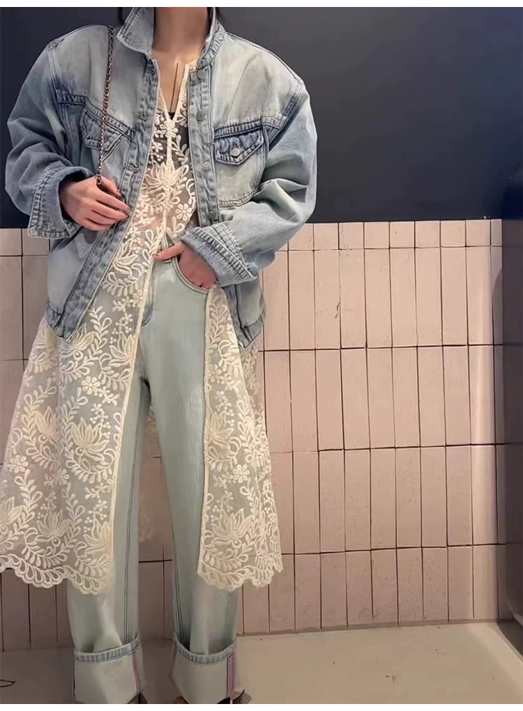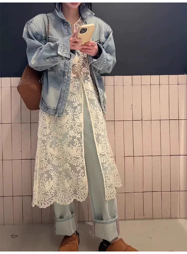 한국 스타일 중공 레이스 원피스 여자 2025 년 봄과 여름 뉴 아우터 롱 블랙 블라우스 탑스토어 가기