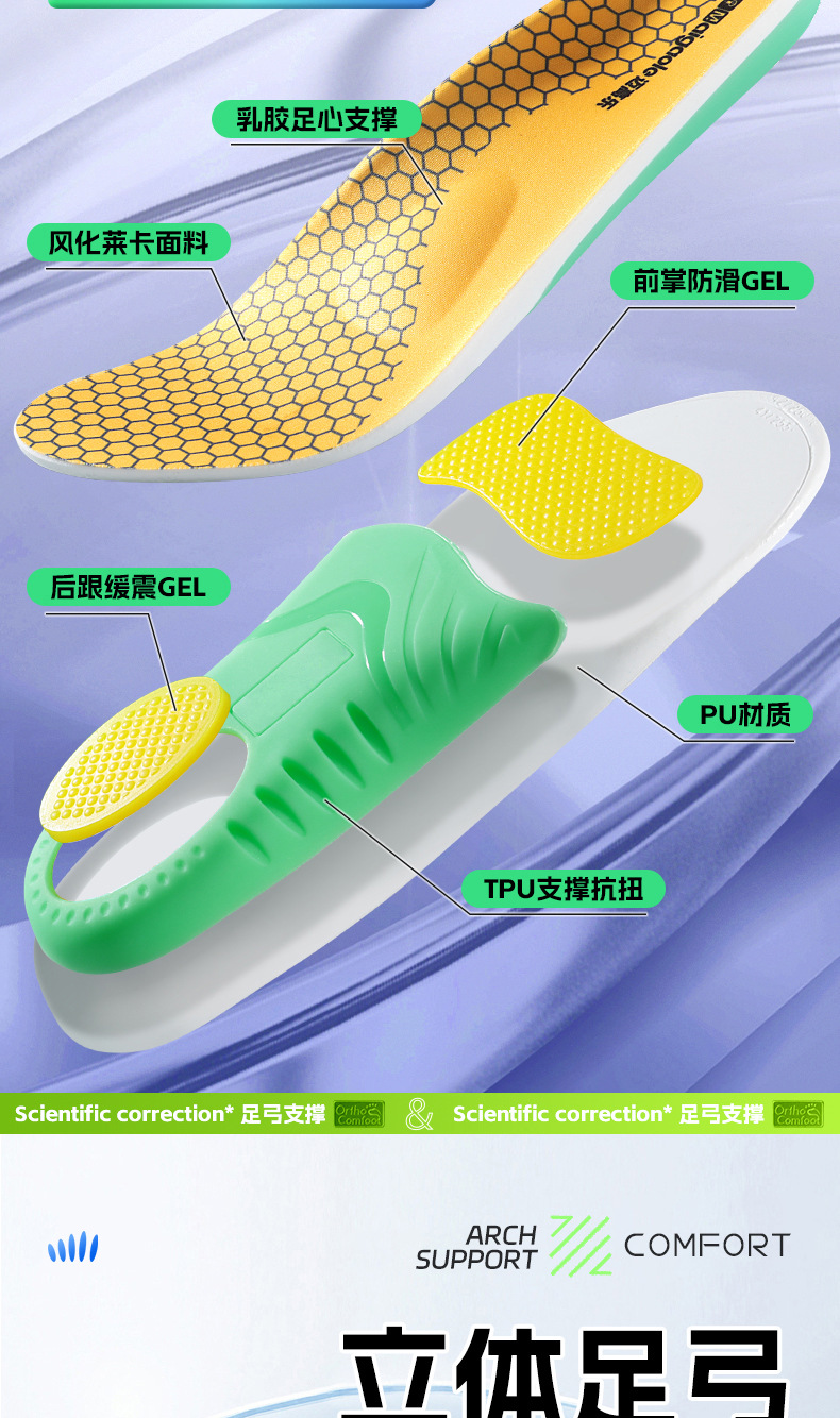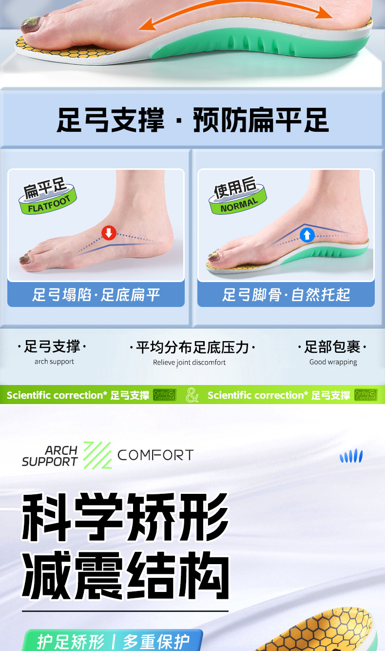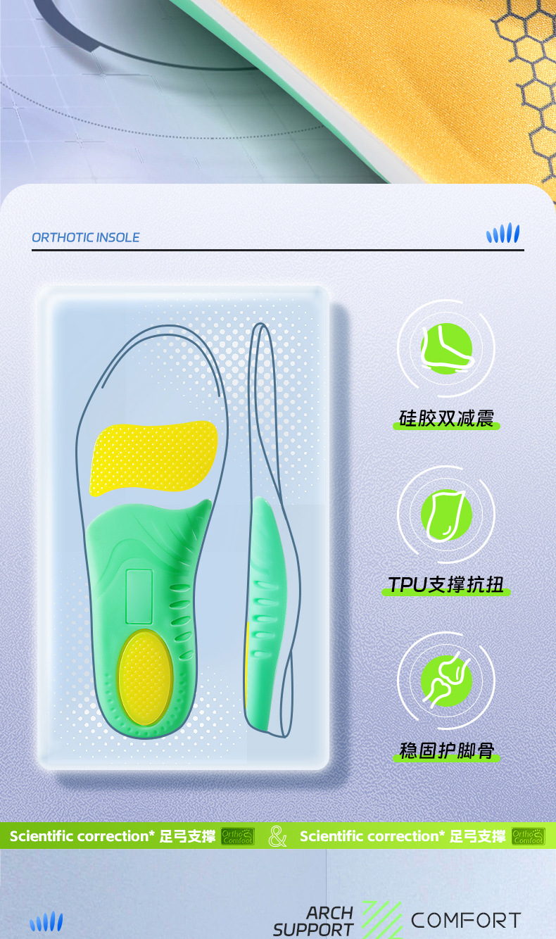 아치 지원 스포츠 깔창 남성과 여성의 높은 탄성 충격 흡수 땀 흡수 탈취제 통기성 쿠션 피로가 아닌 농구 달리기