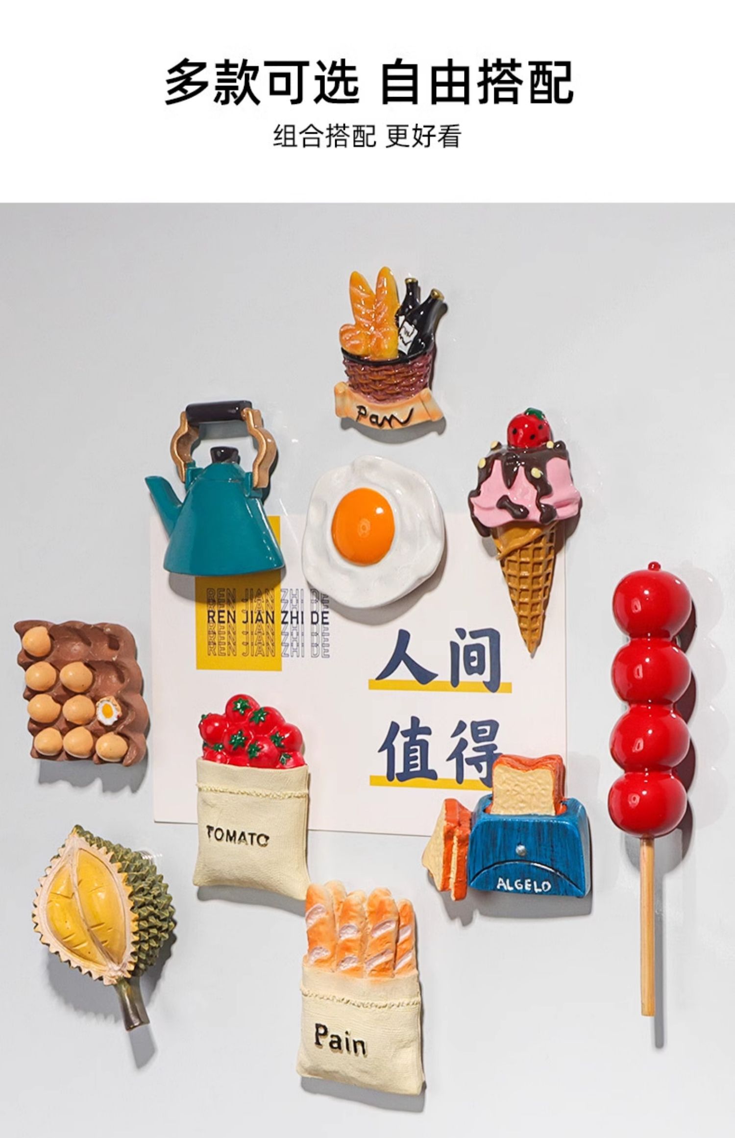3d 창조적 인 흥미로운 높은 가치의 냉장고 스티커 하이 엔드 스티커 귀여운 시뮬레이션 식품 스텐티 만화스토어 가기