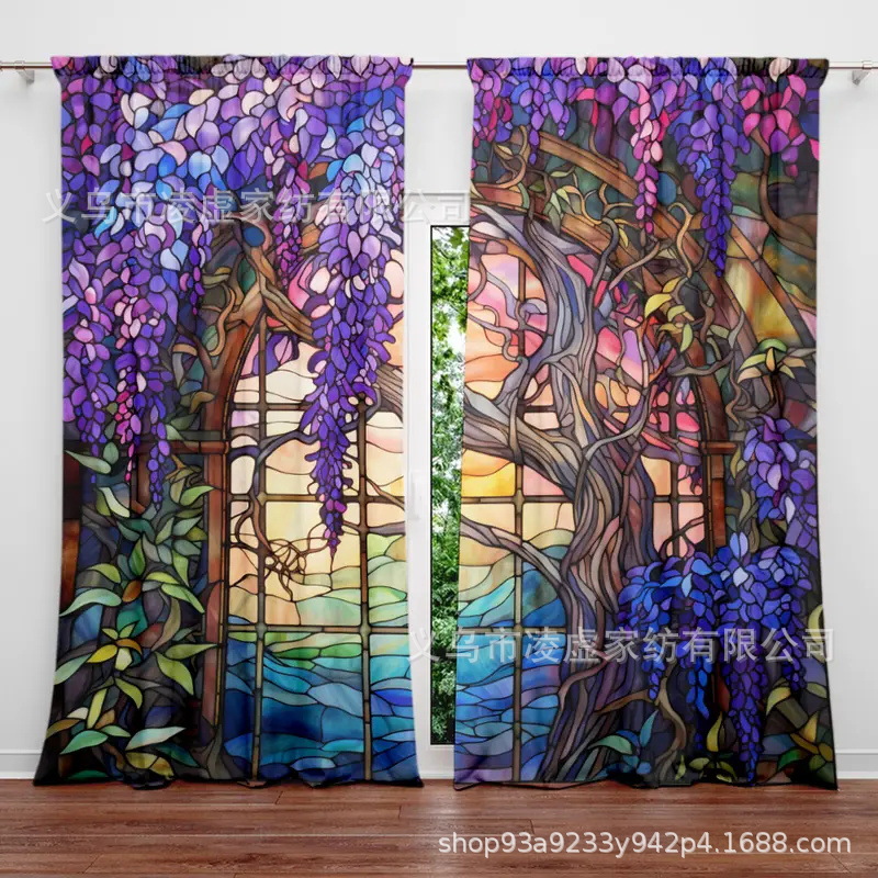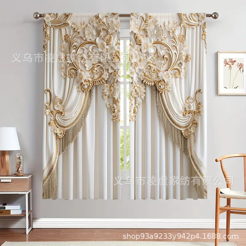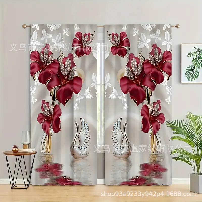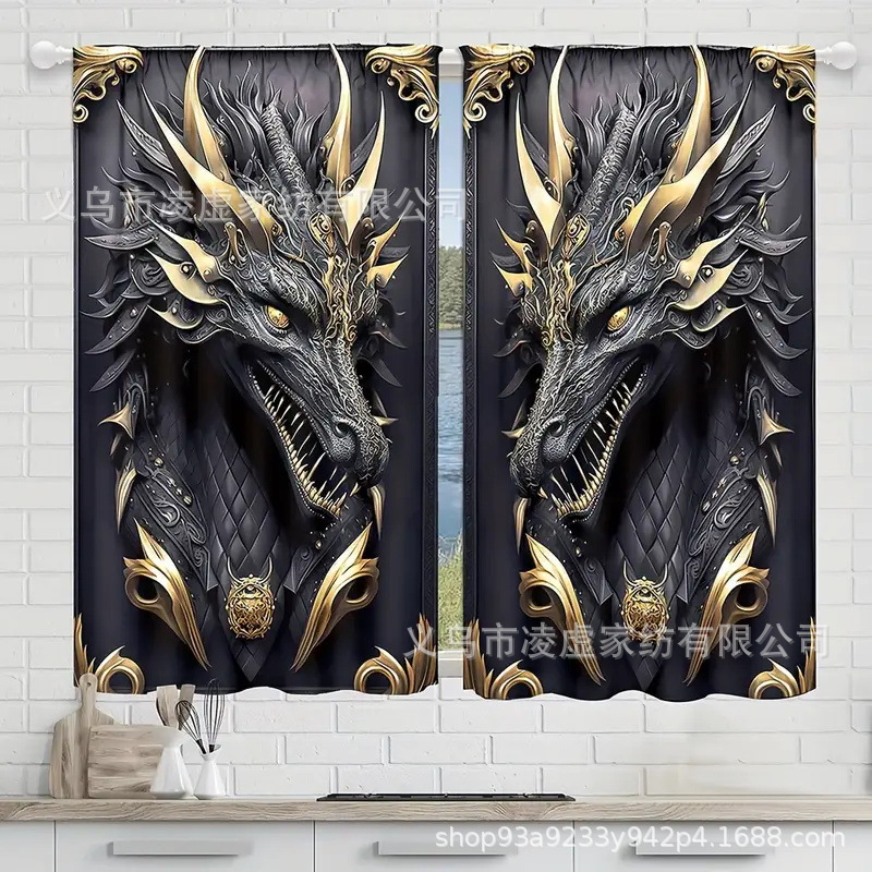 630*210 包装尺寸27*26*5,重量880 3D 打印窗帘,聚酯纺织品,半透明杆袋窗帘,机洗,耐色,装饰动物主题,适用于客厅、卧室、书房 - 全季