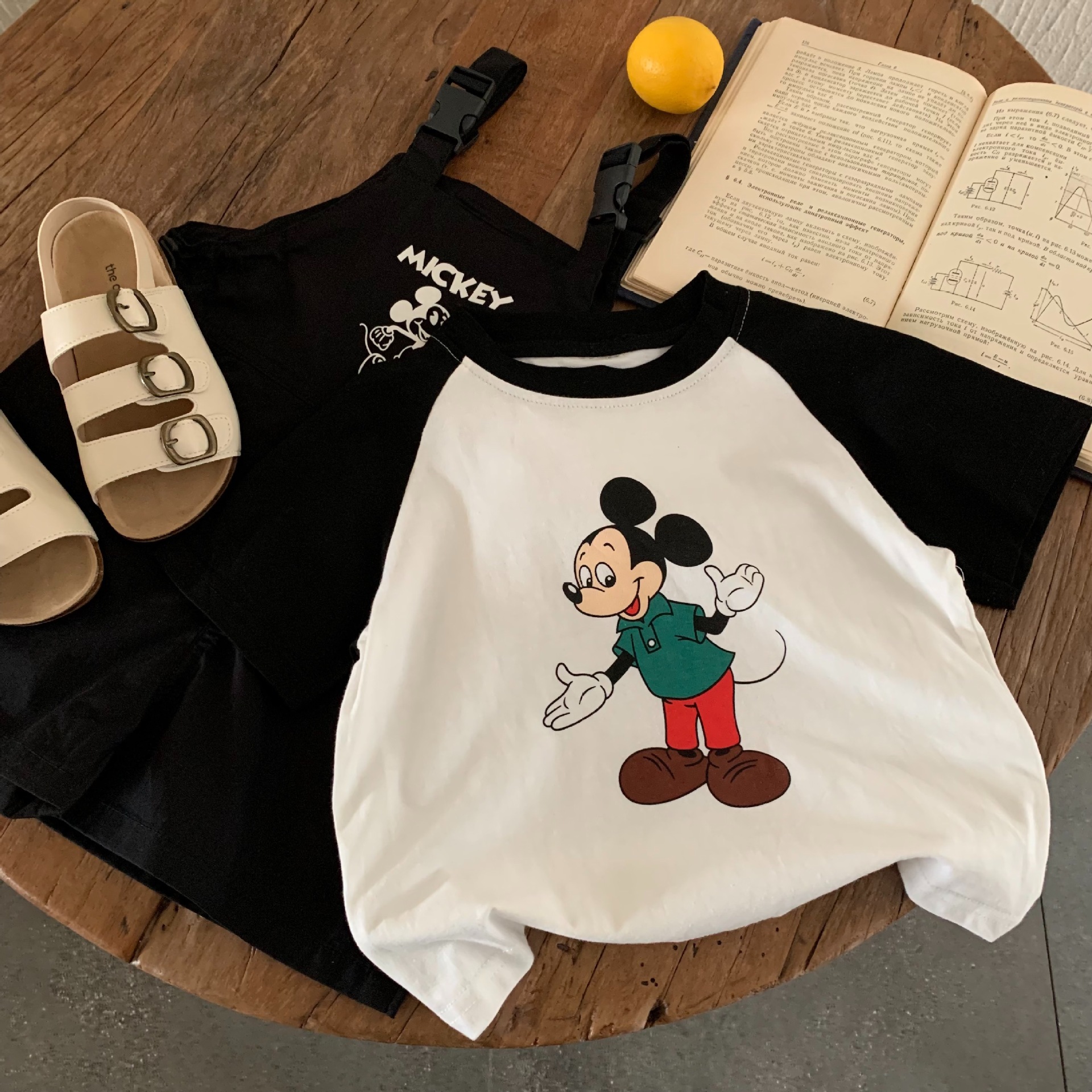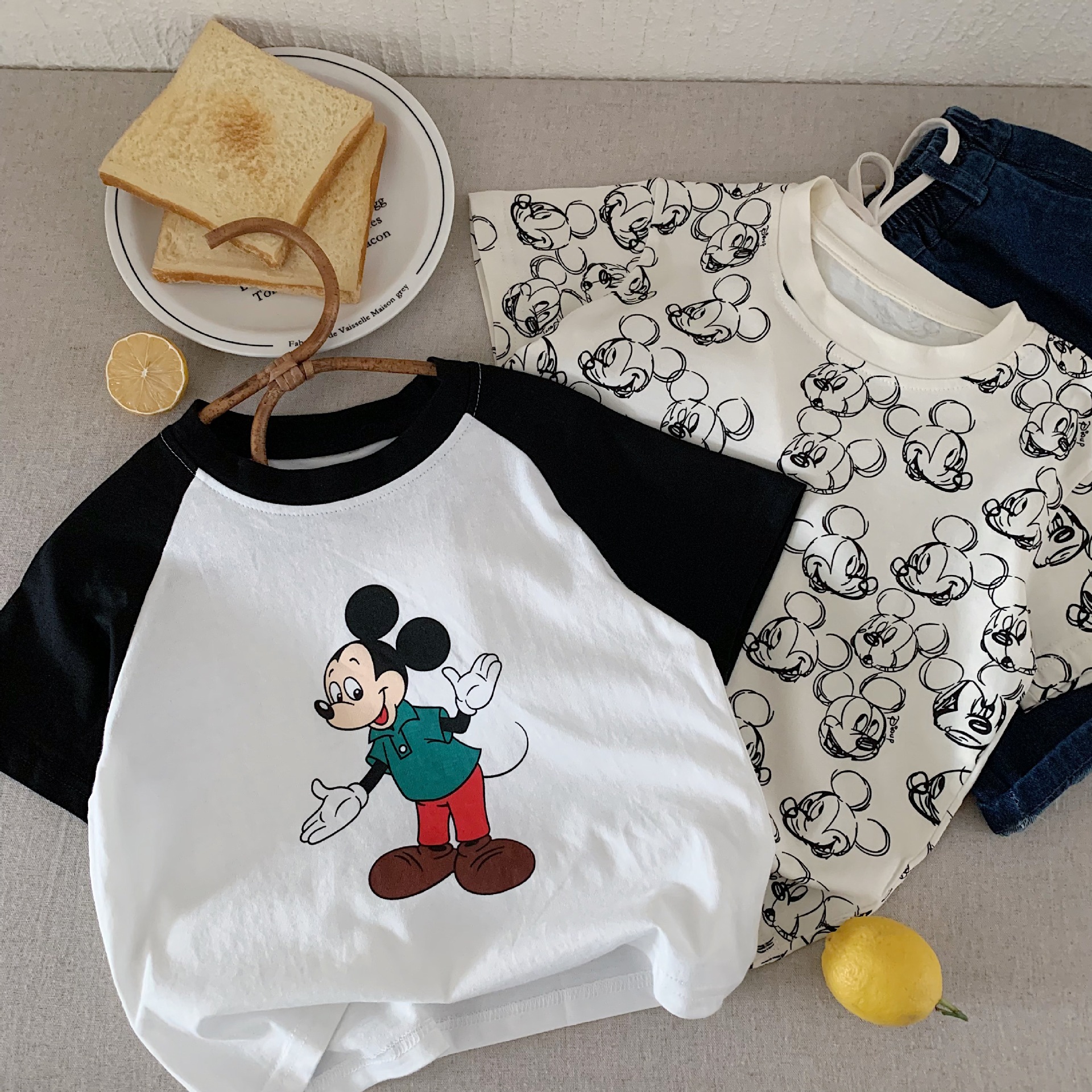어린이 반팔 2025 천 및 설탕 여름 소년 소녀를위한 새로운 도착 스티칭 대조 컬러 반팔 티셔츠 아기 만화 인쇄 티셔츠
