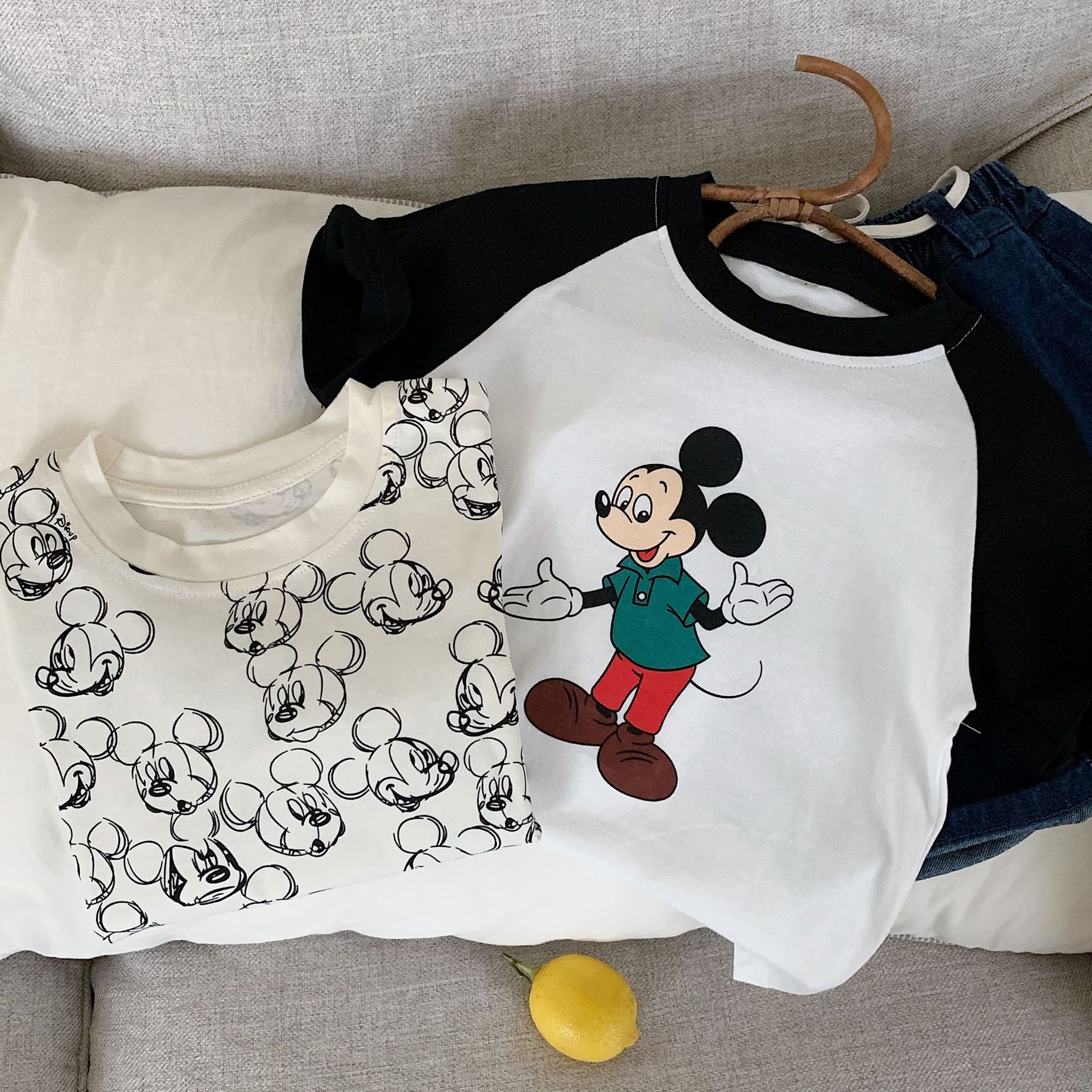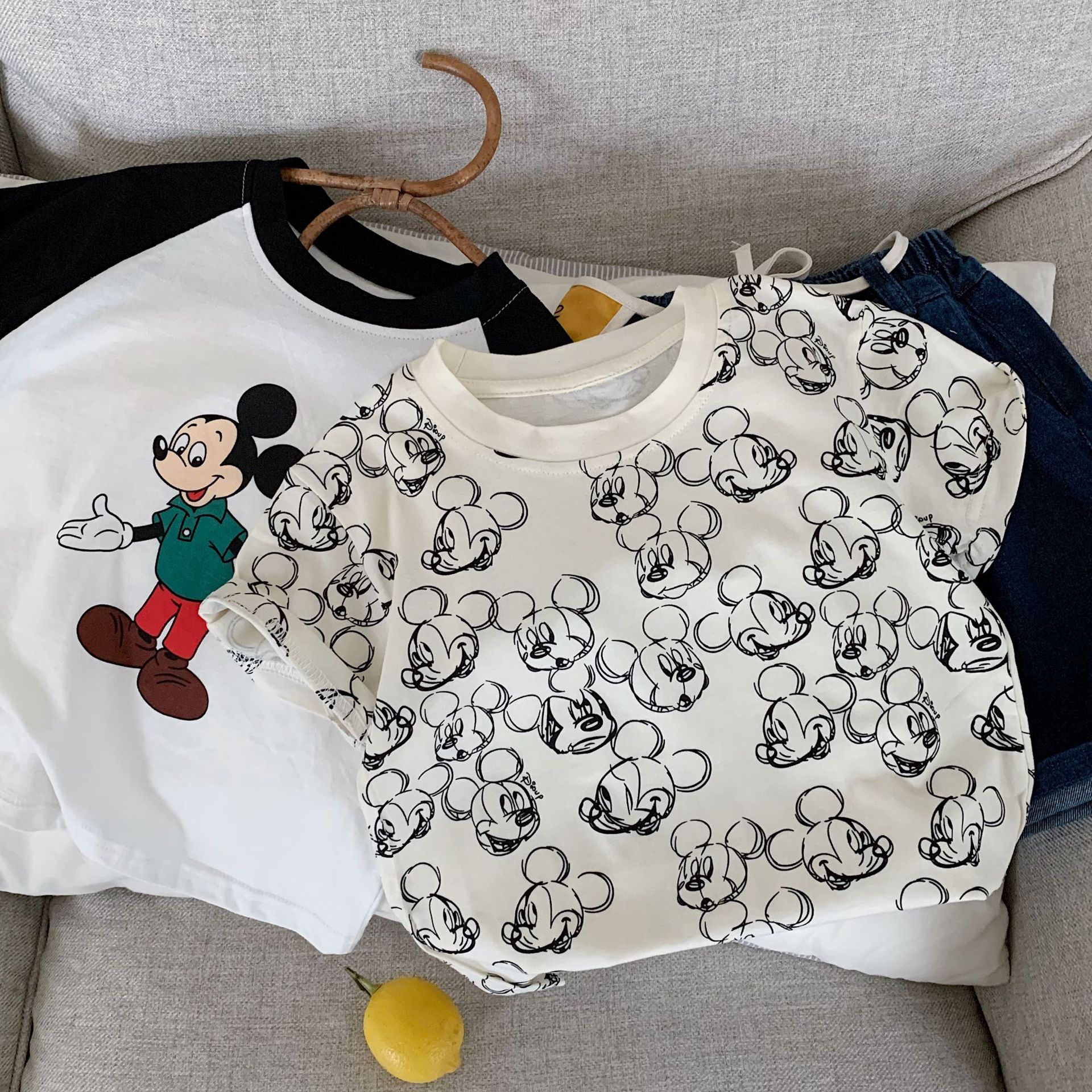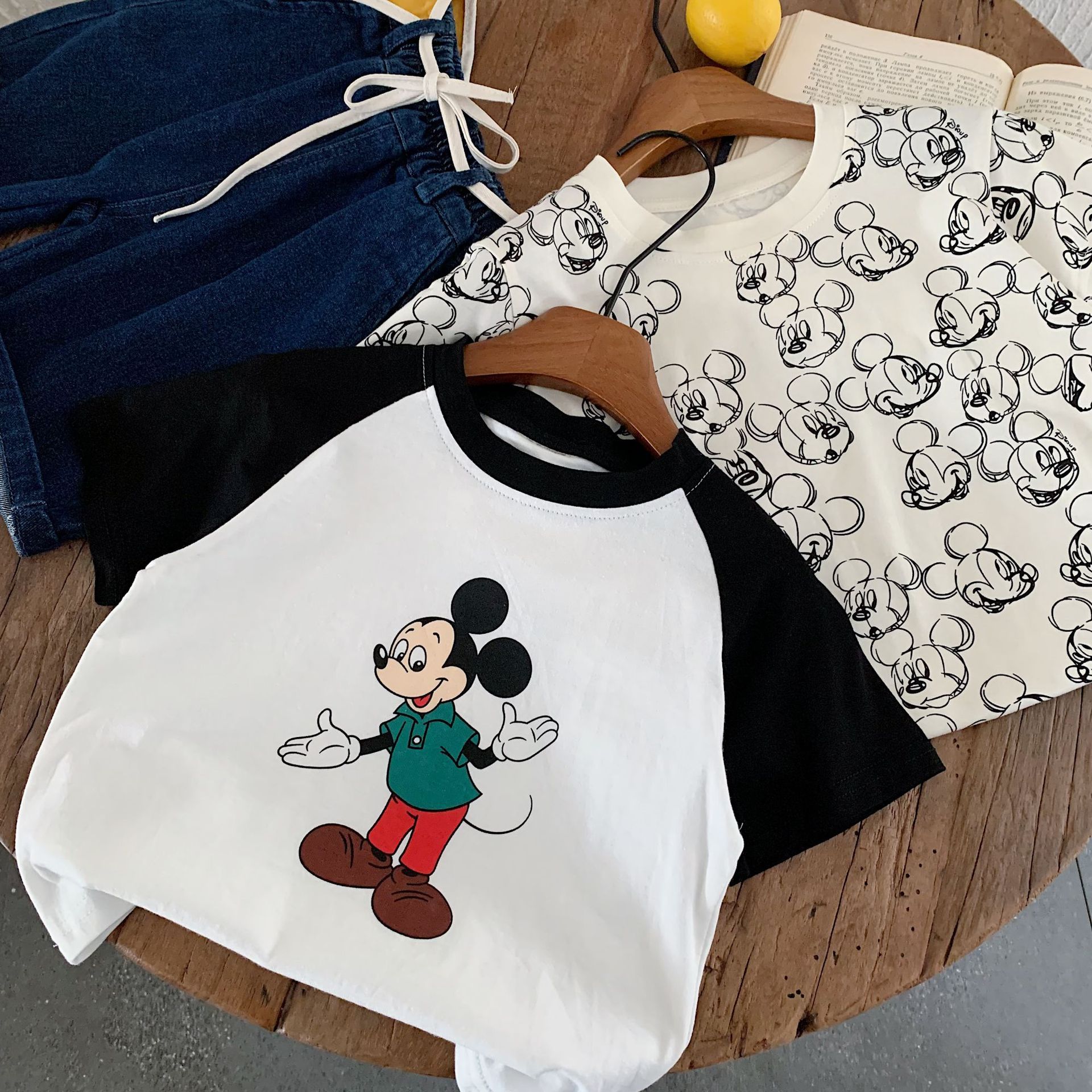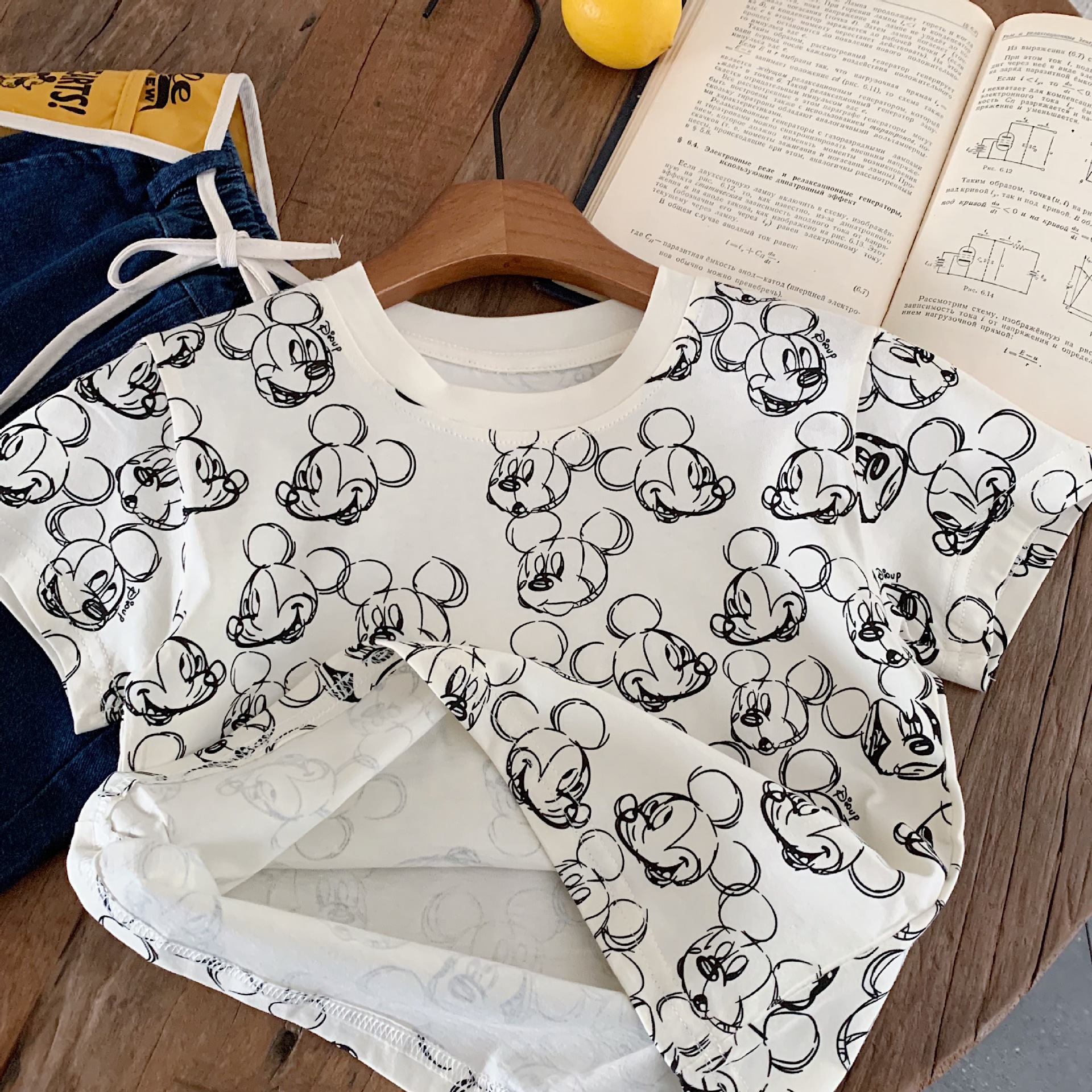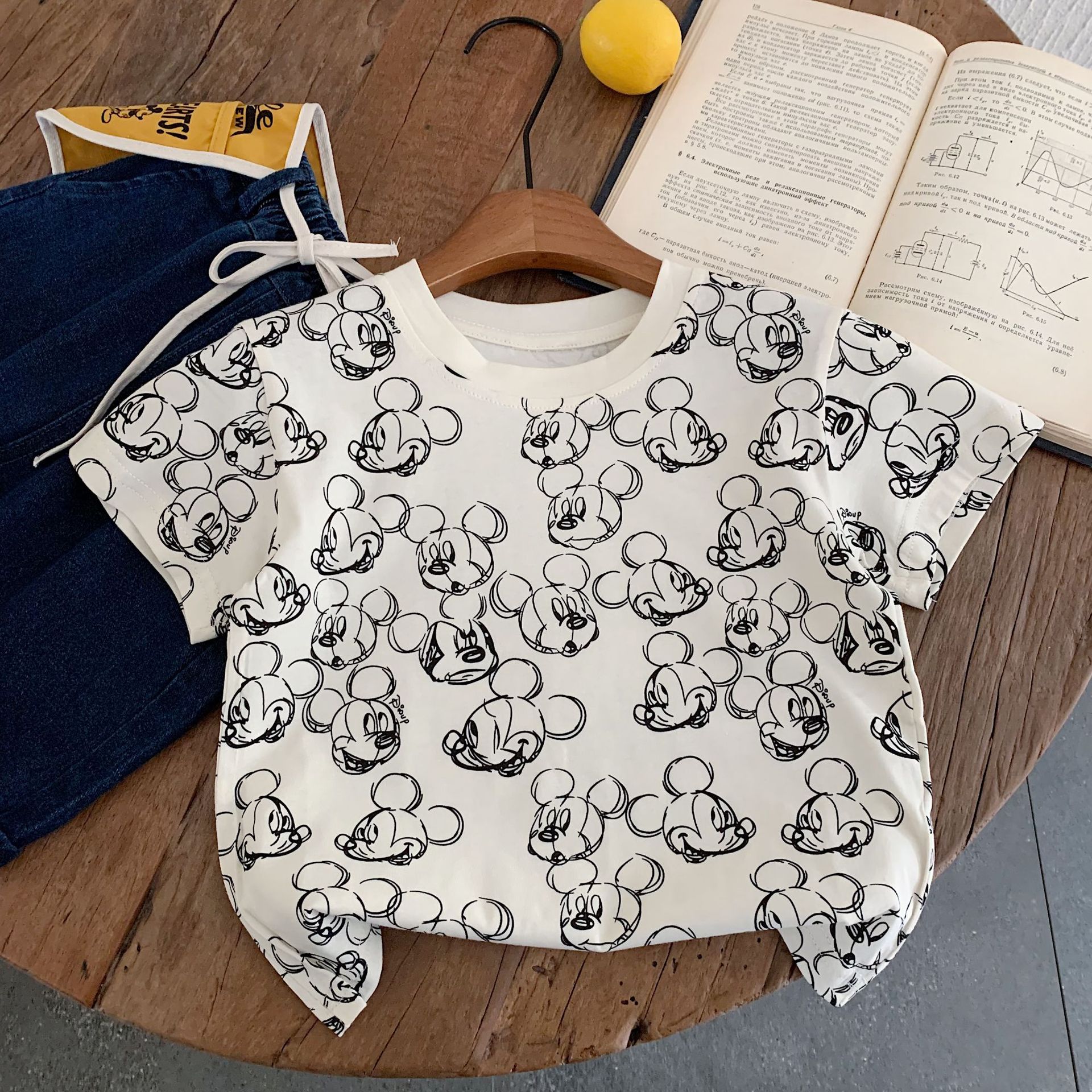 어린이 반팔 2025 천 및 설탕 여름 소년 소녀를위한 새로운 도착 스티칭 대조 컬러 반팔 티셔츠 아기 만화 인쇄 티셔츠스토어 가기