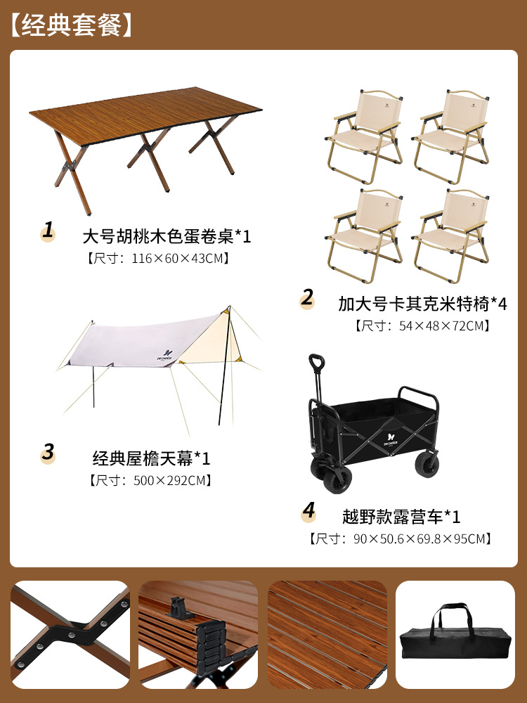 • [클래식 패키지] 대형 나뭇결 컬러 + 특대형 카키 의자*4+3x5m 캐노피+카트