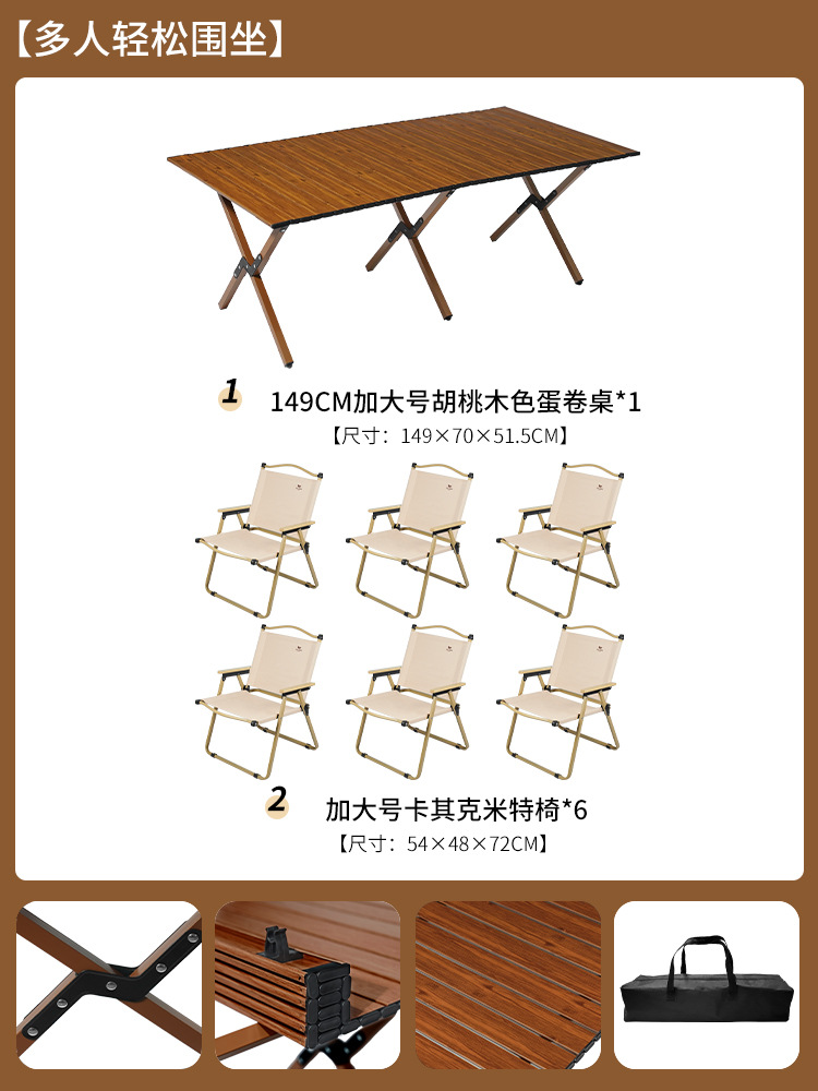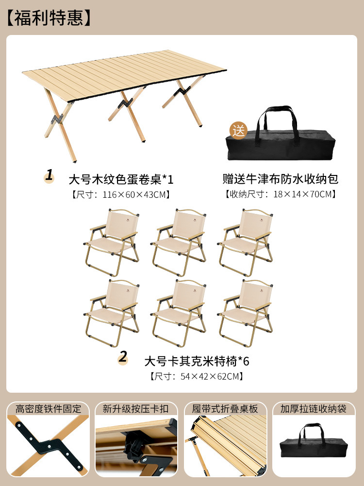 • [가족 나들이] 대형 나뭇결 컬러 에그롤 테이블 + 특대 카키 커밋 의자*6