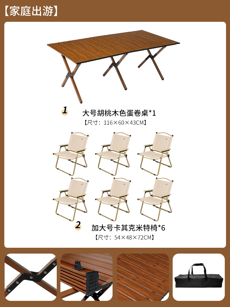 • [가족 나들이] 대형 월넛 컬러 에그롤 테이블 + 특대 카키 커밋 의자*6
