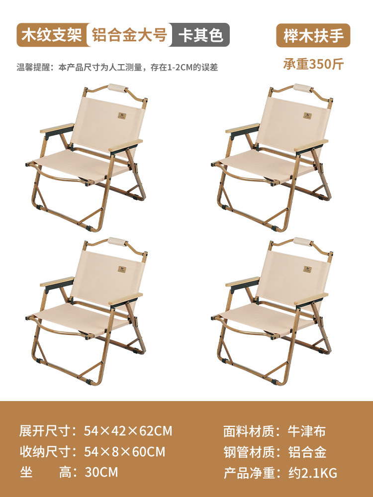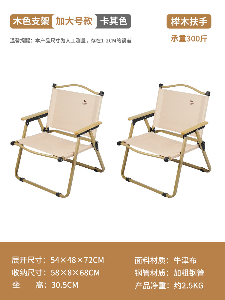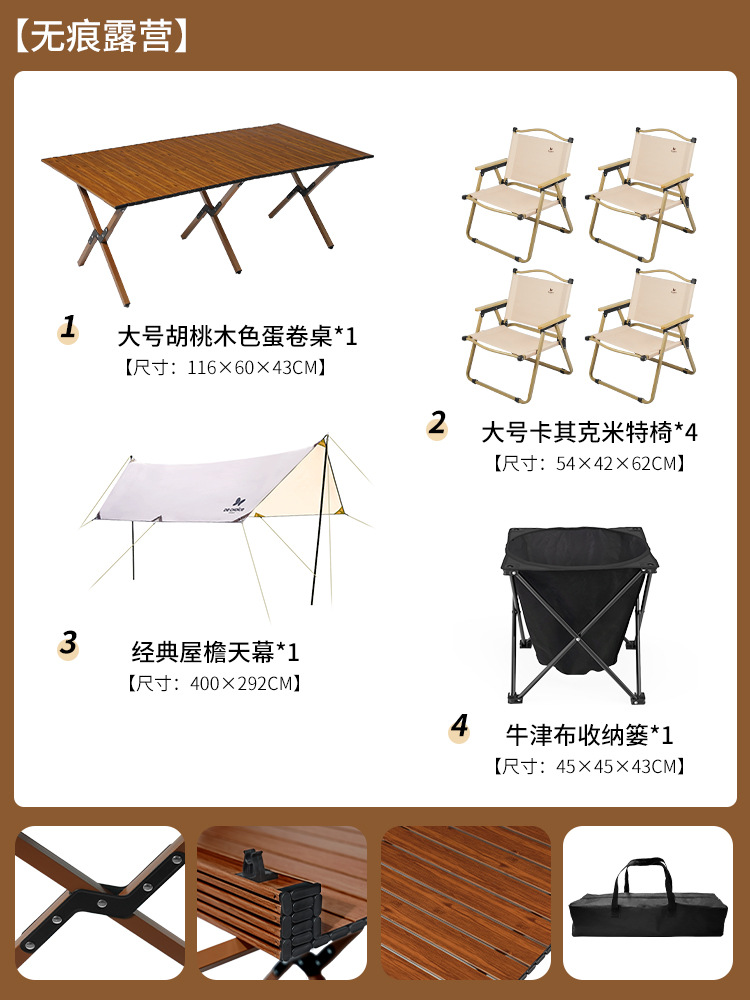 • [원활한 캠핑] 대형 나뭇결 컬러 + 대형 카키 의자*4+3x4m 캐노피+수납바구니