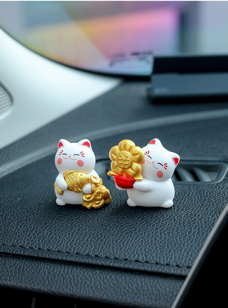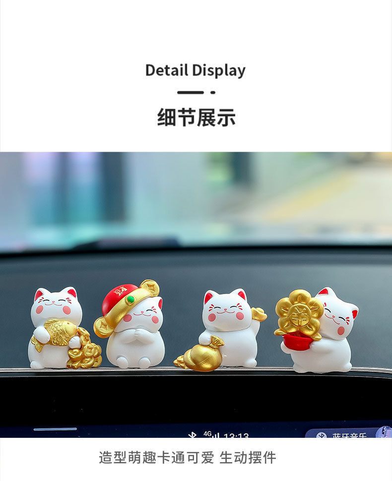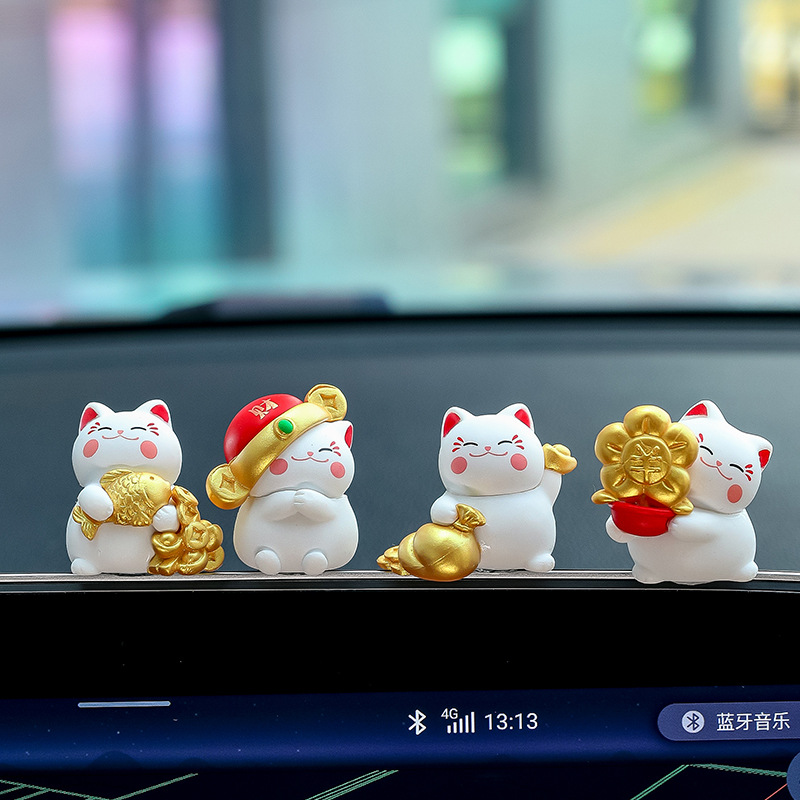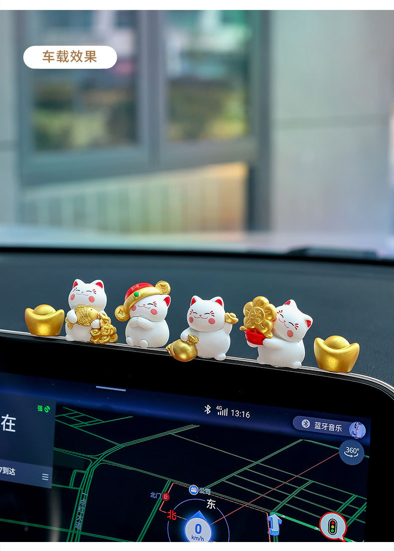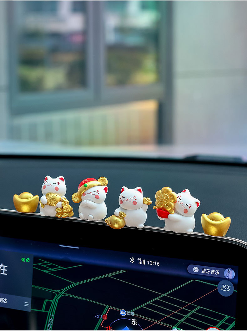 만화 행운의 고양이 자동차 장식품 인터넷 빨간 자동차 액세서리 미니 귀여운 새끼 고양이 자동차 센터 콘솔 화면 장식