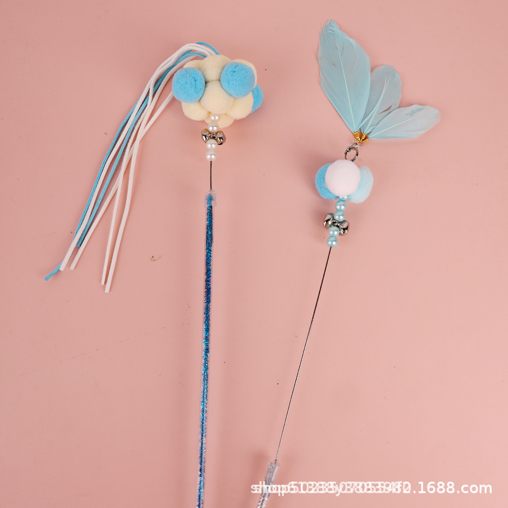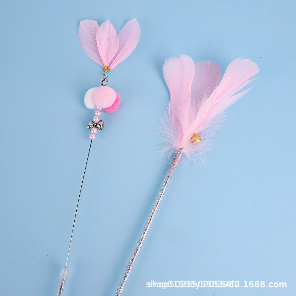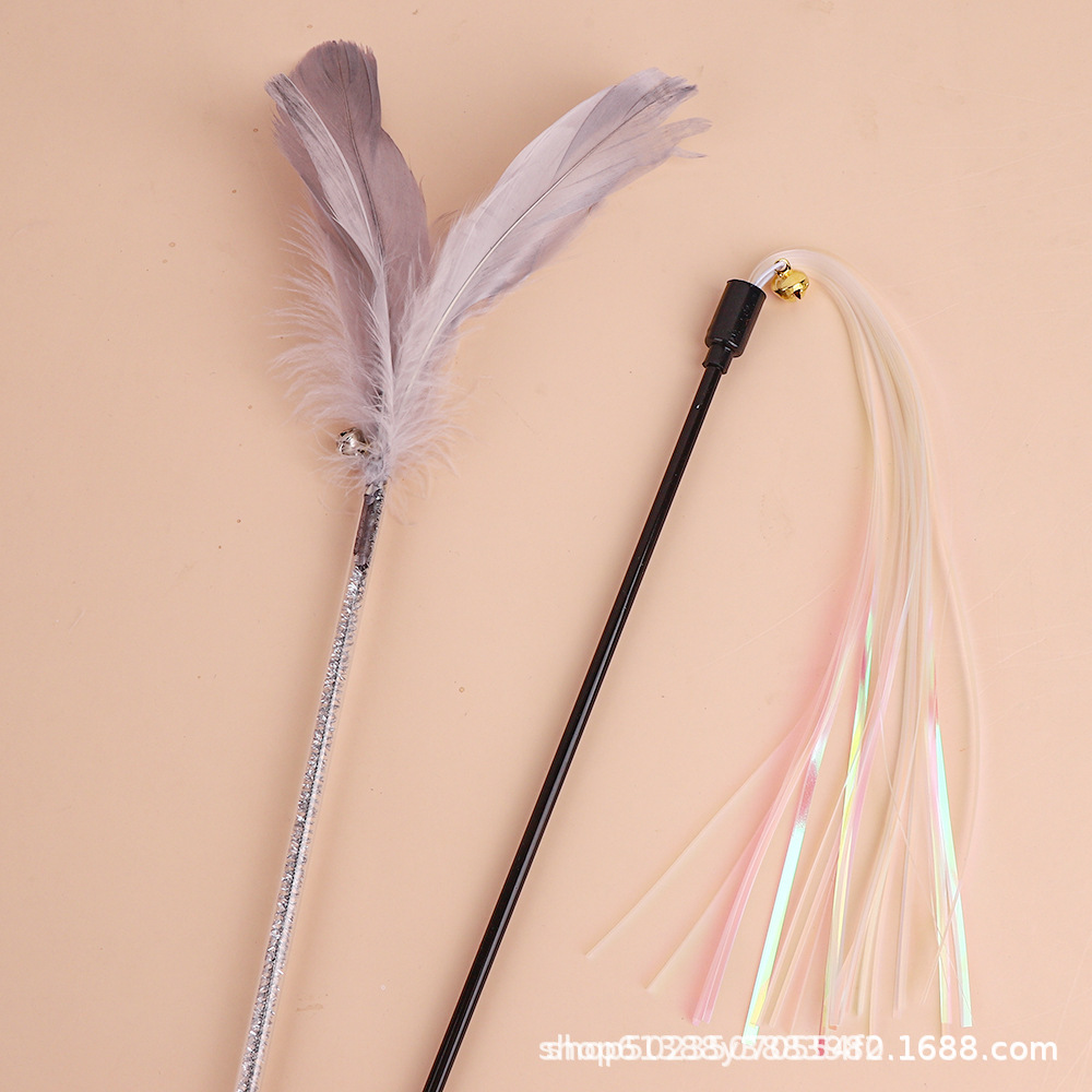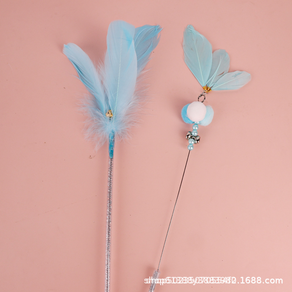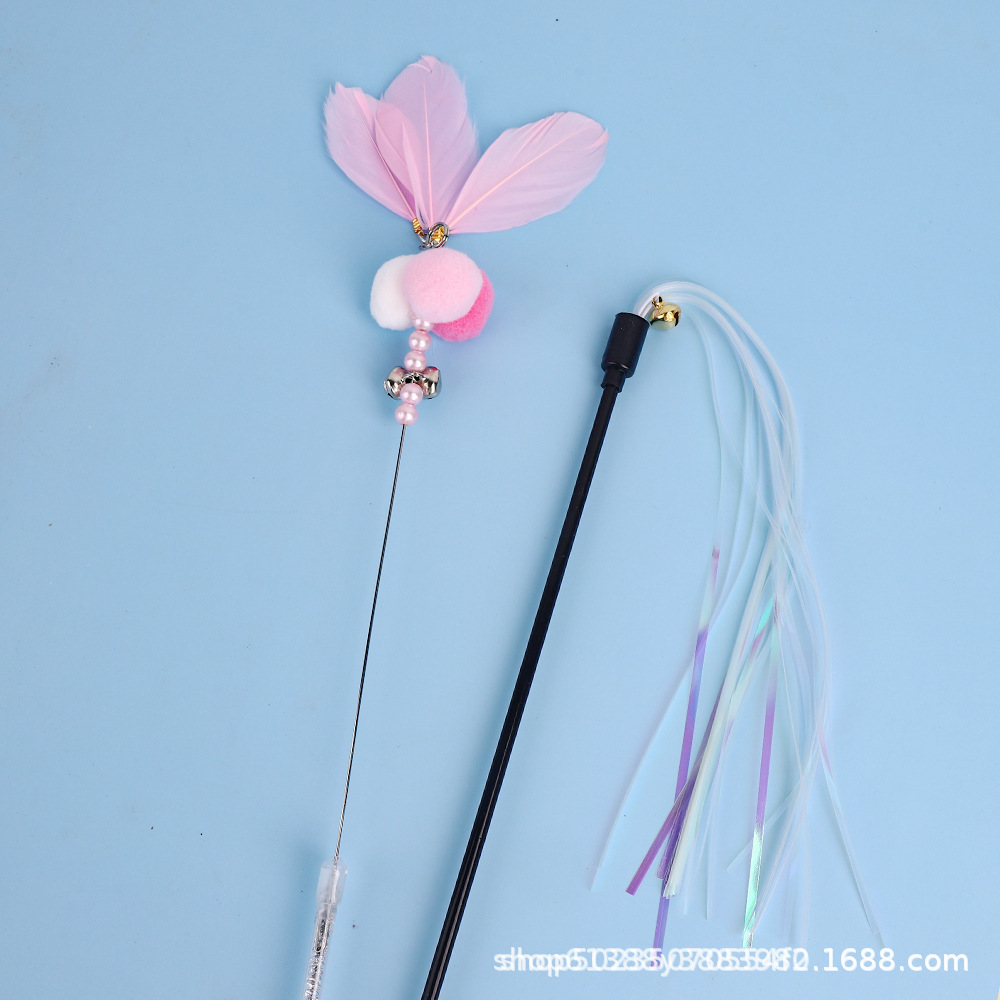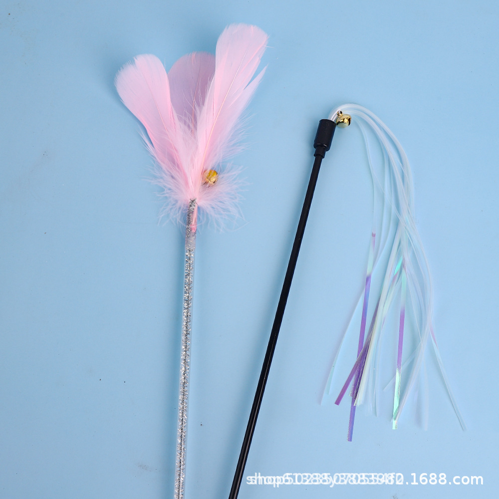 도매 그물 빨간 고양이 요정 고양이 스틱 두 조각 긴 막대 깃털 강철 와이어 장난감 물린 방지 벨 셀프 하이