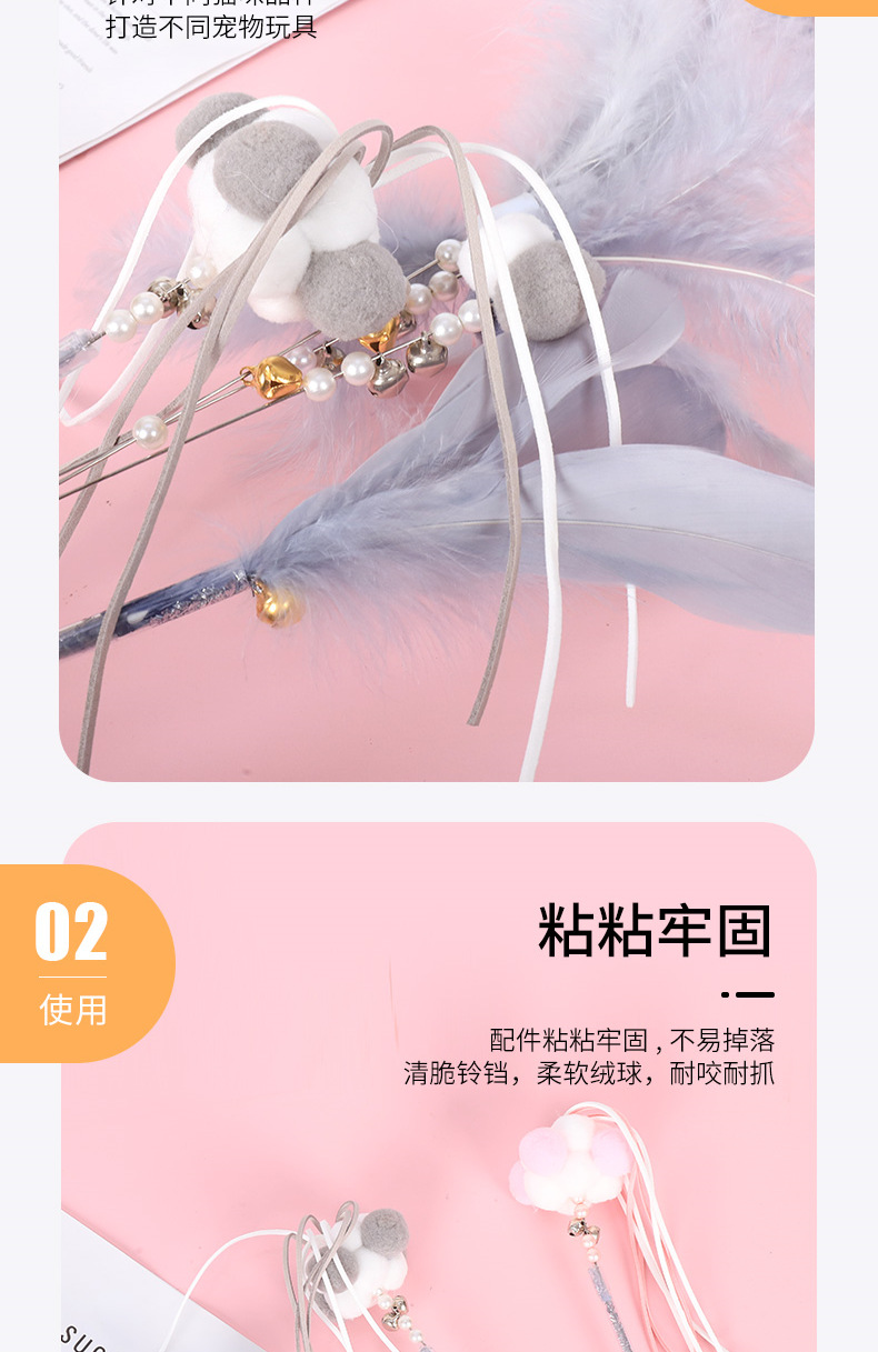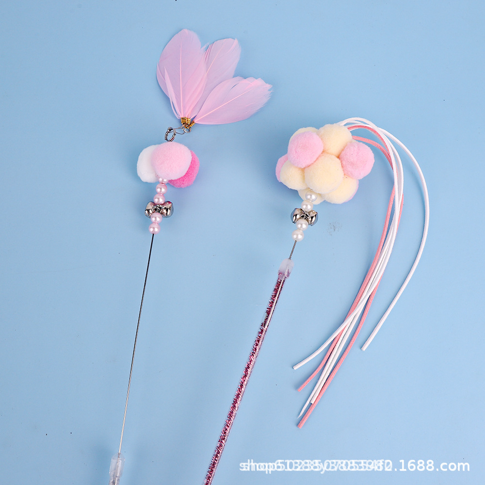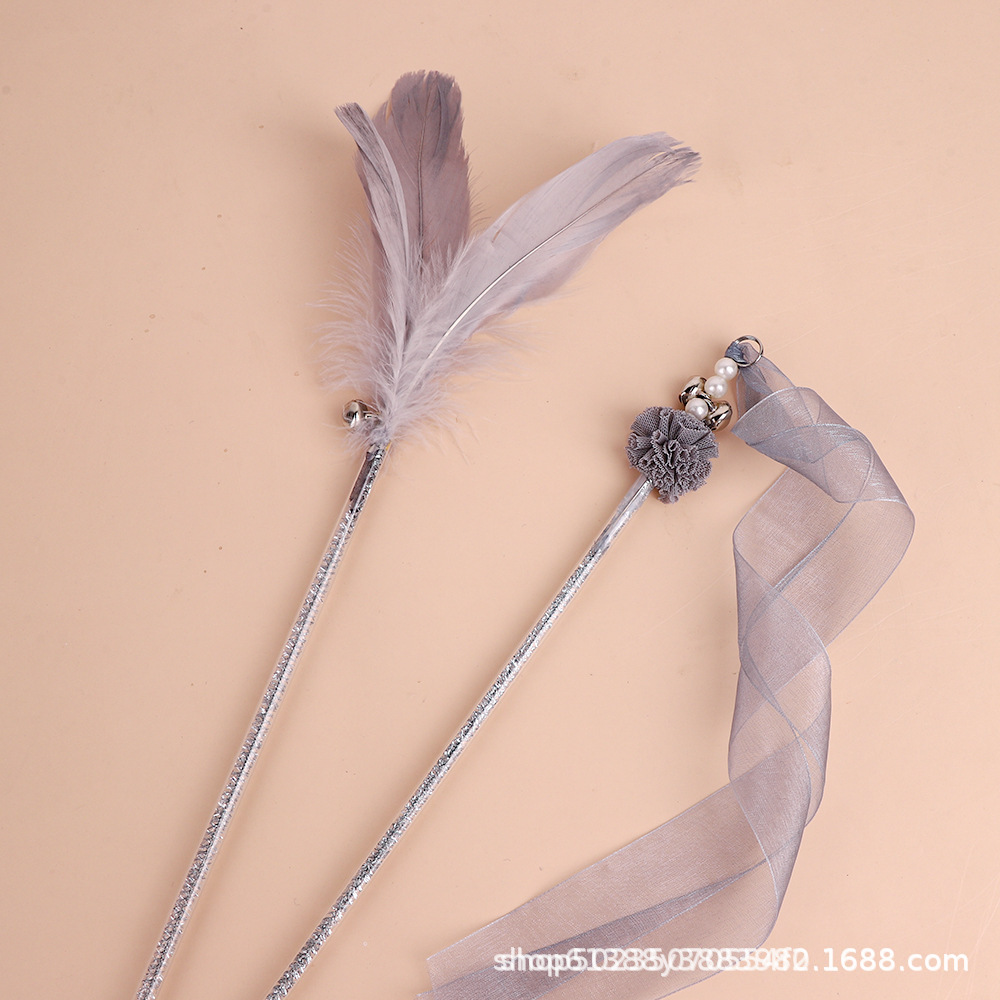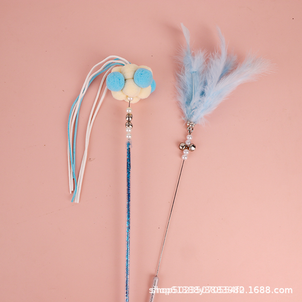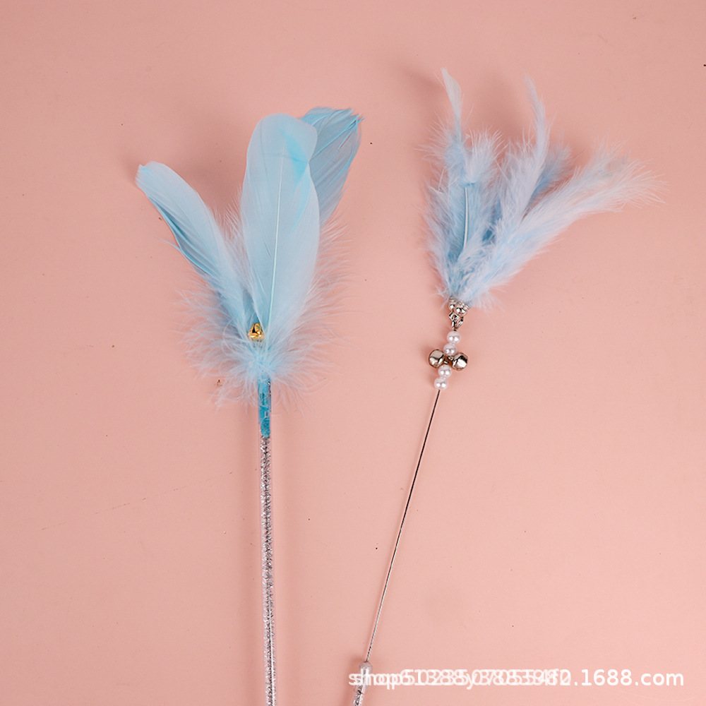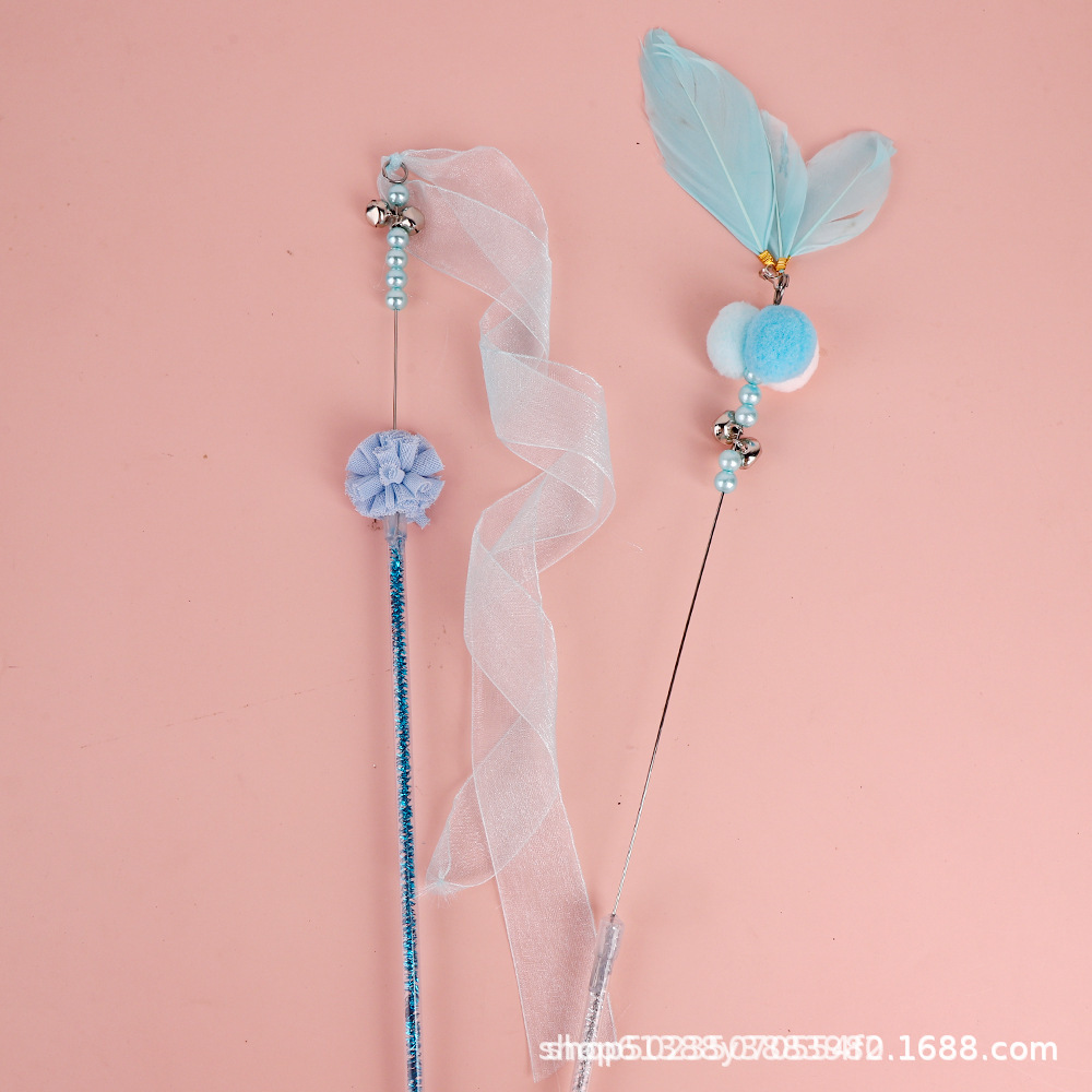 도매 그물 빨간 고양이 요정 고양이 스틱 두 조각 긴 막대 깃털 강철 와이어 장난감 물린 방지 벨 셀프 하이