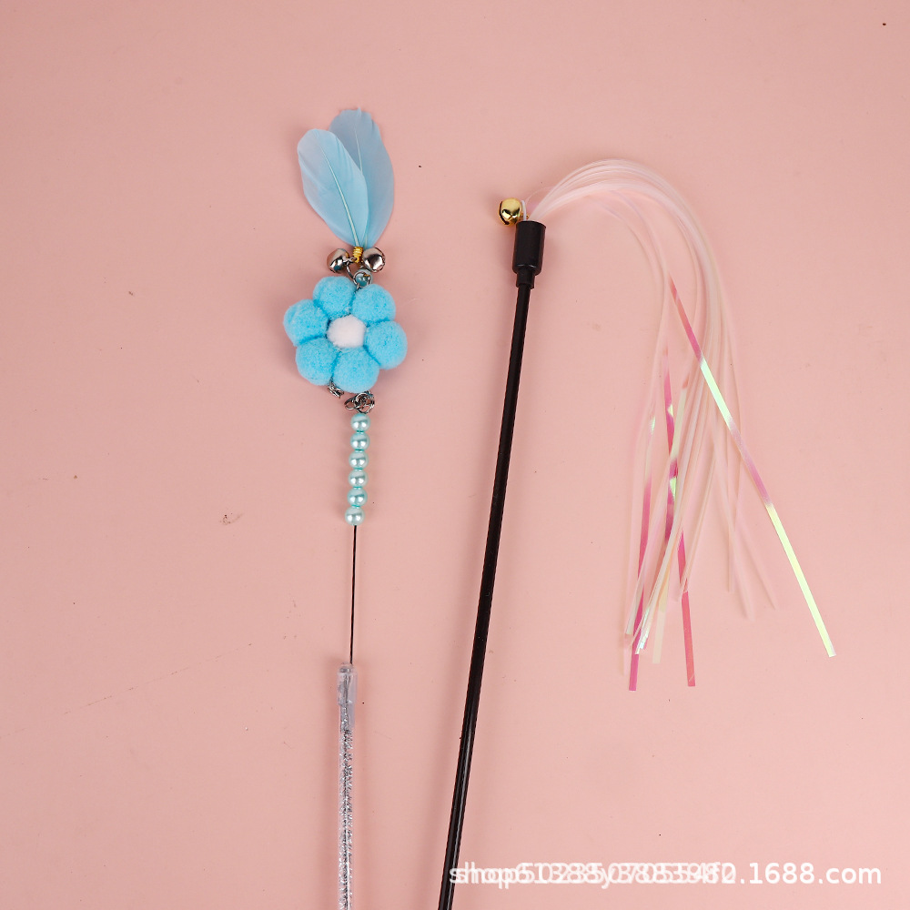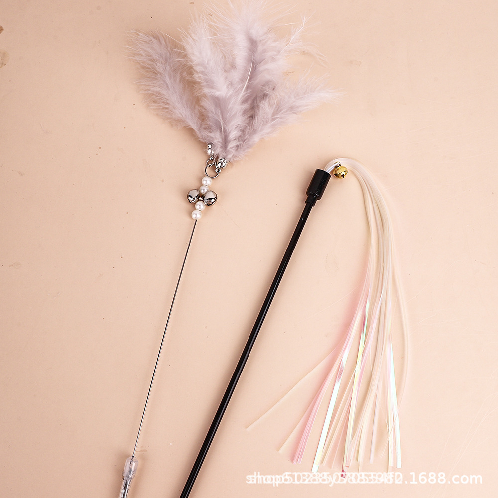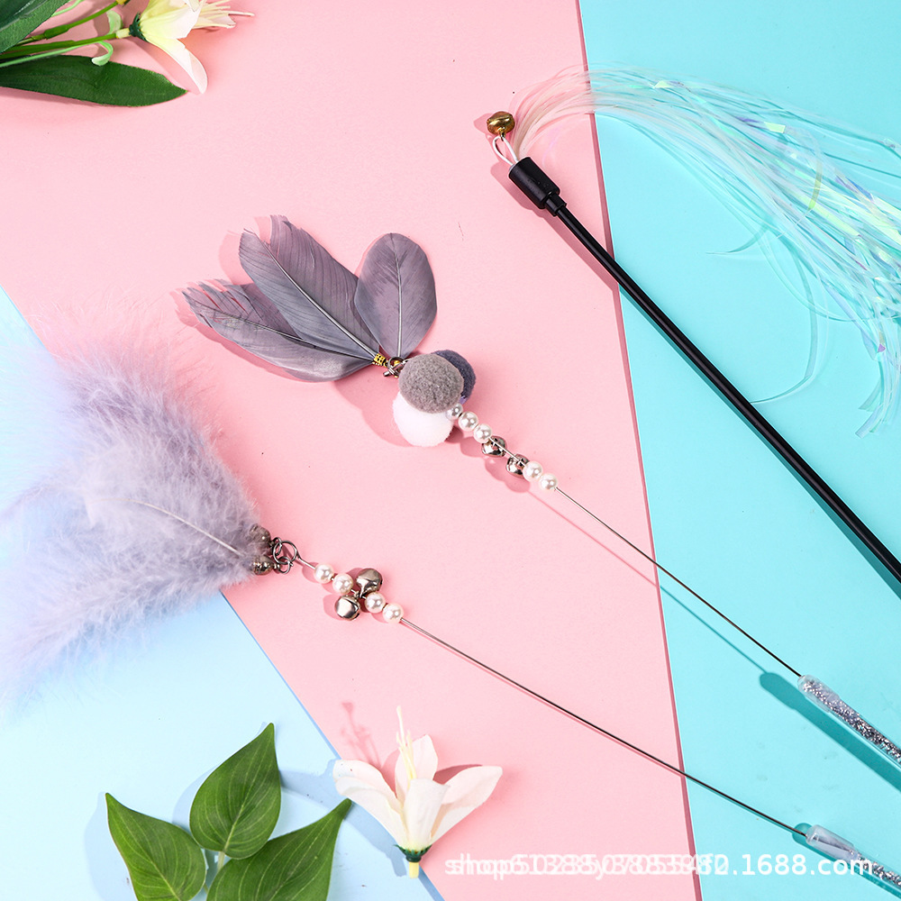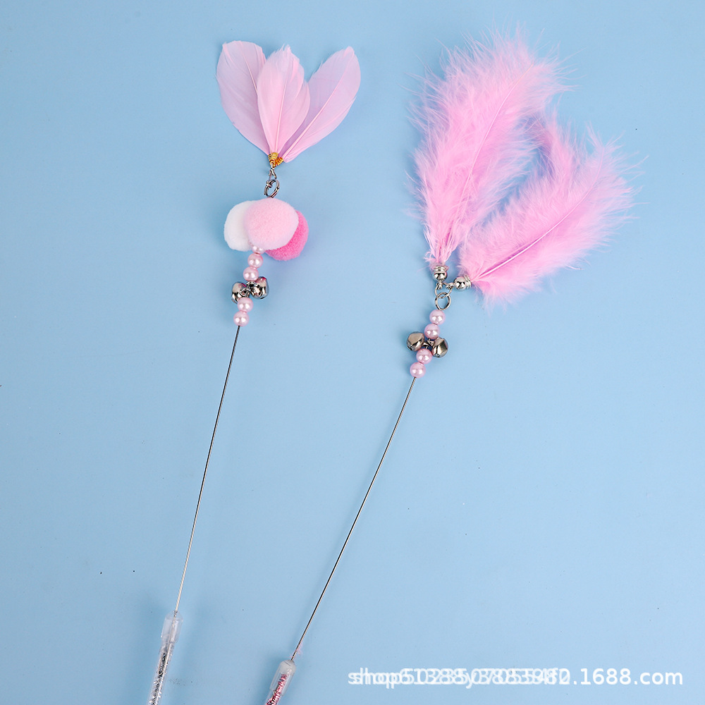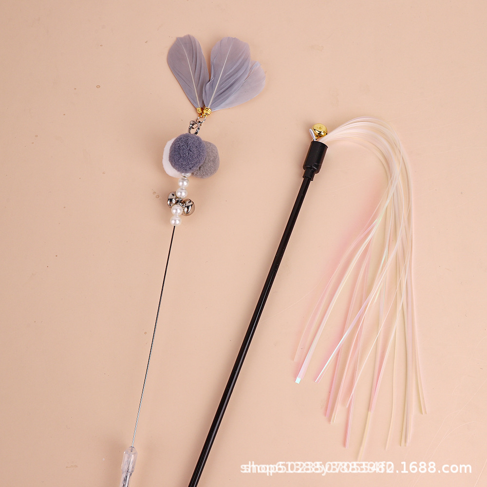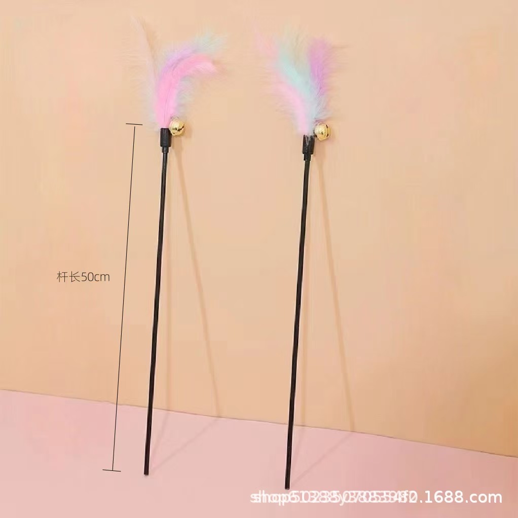 도매 그물 빨간 고양이 요정 고양이 스틱 두 조각 긴 막대 깃털 강철 와이어 장난감 물린 방지 벨 셀프 하이스토어 가기