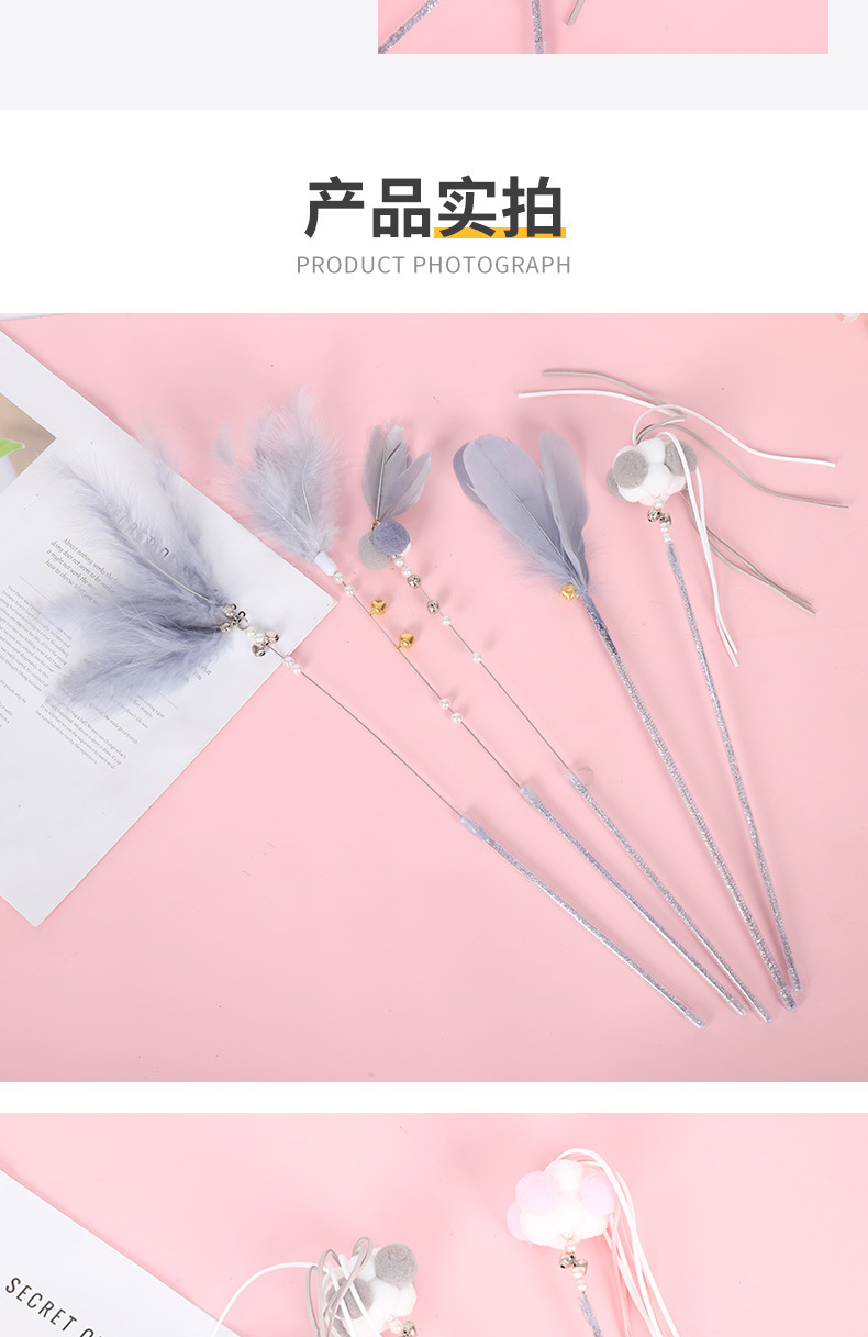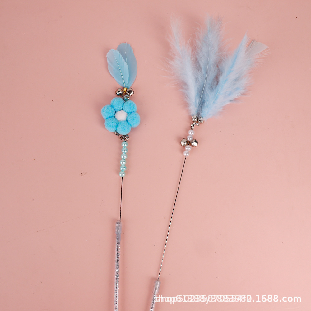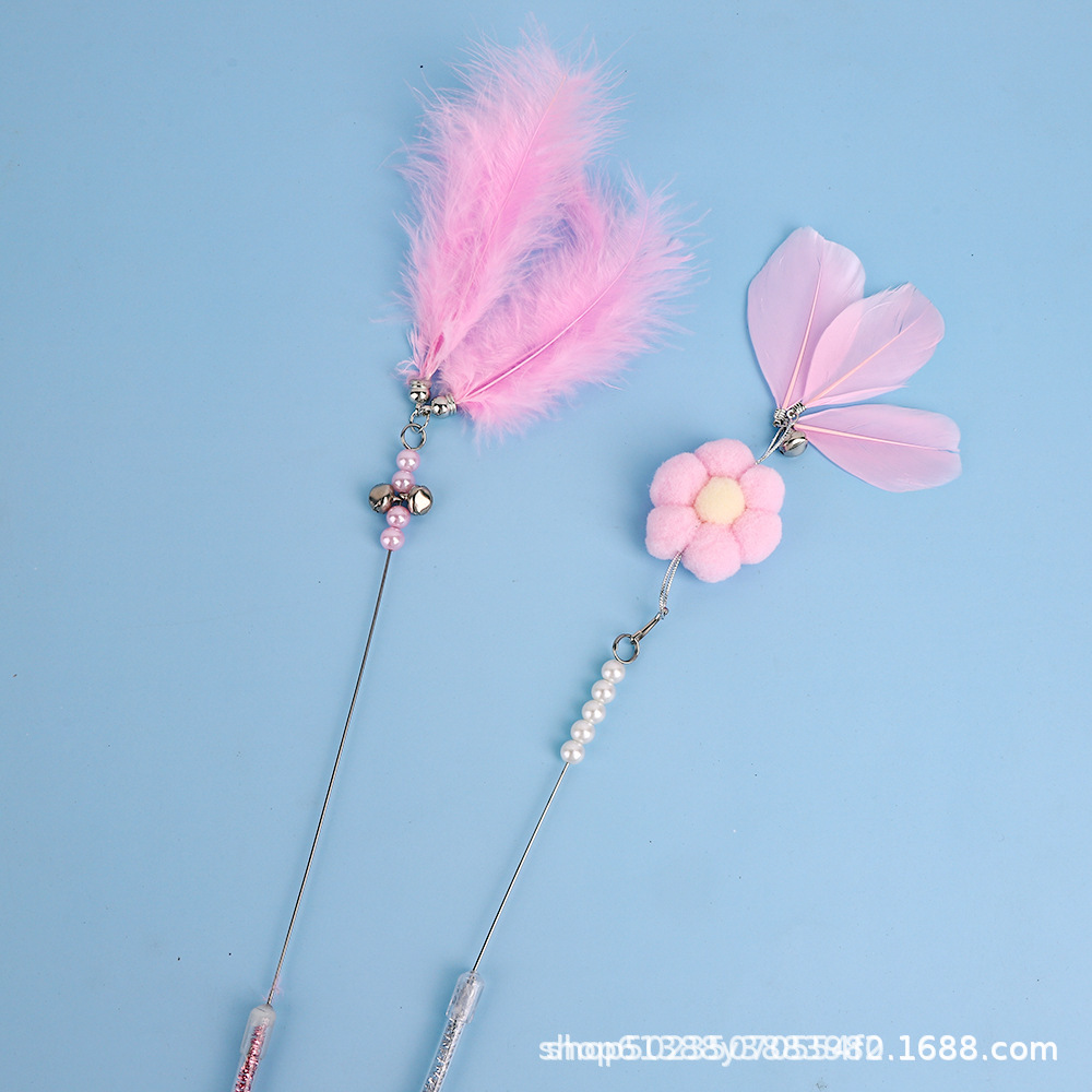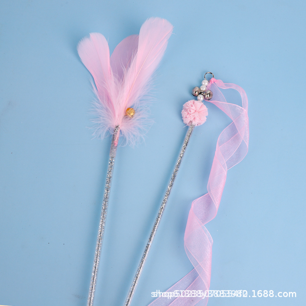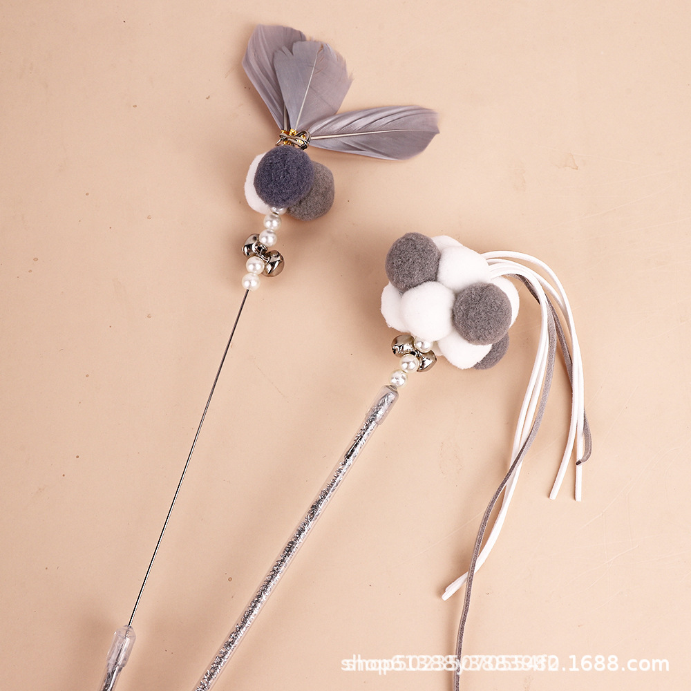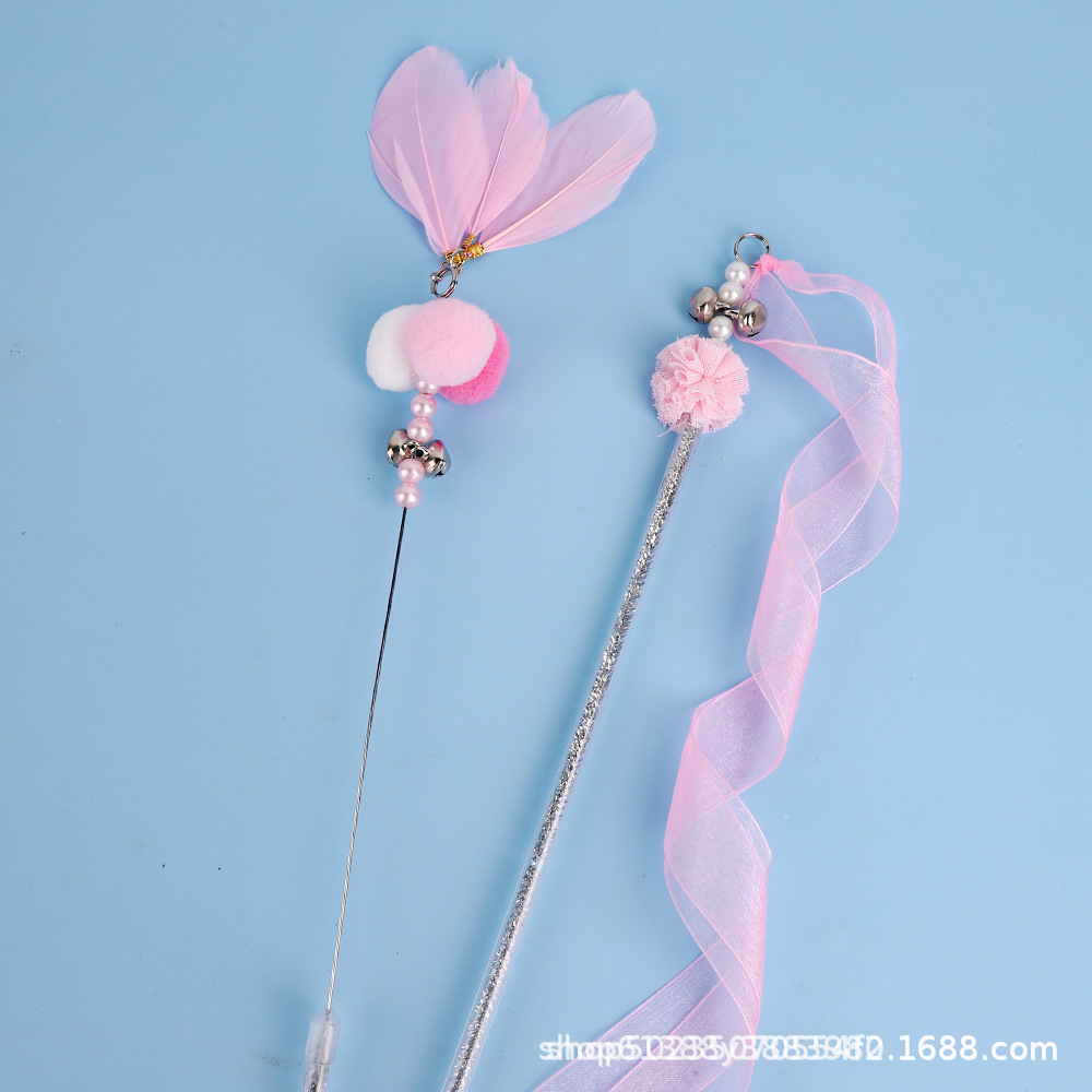 도매 그물 빨간 고양이 요정 고양이 스틱 두 조각 긴 막대 깃털 강철 와이어 장난감 물린 방지 벨 셀프 하이스토어 가기