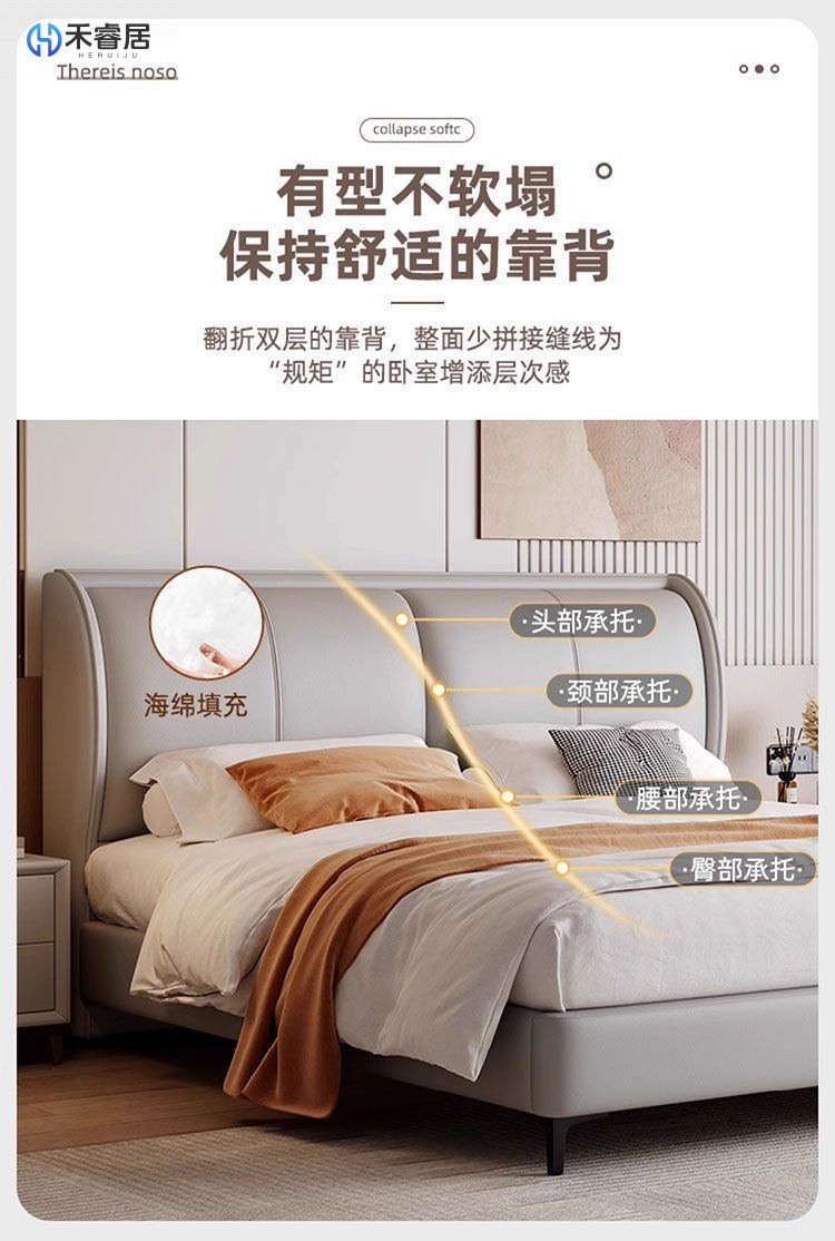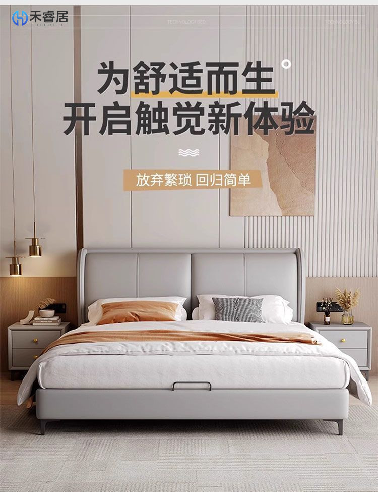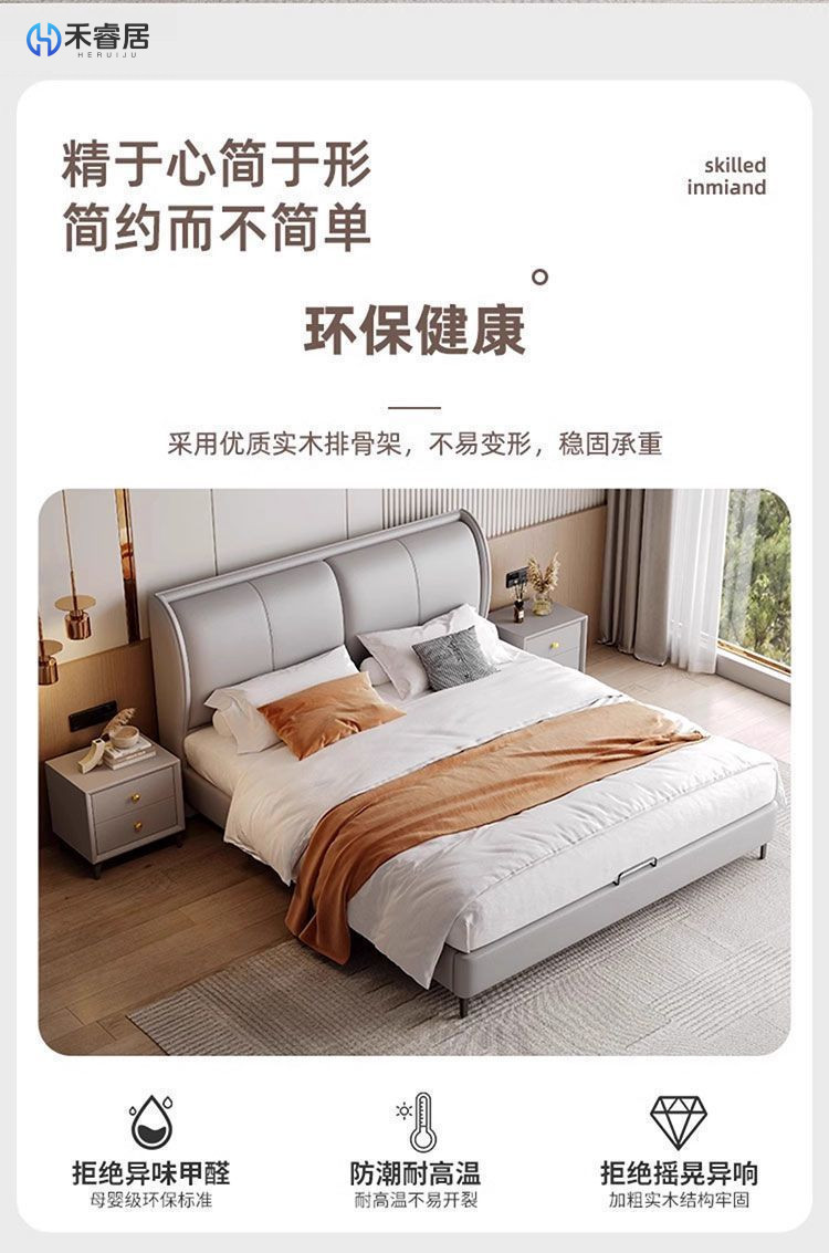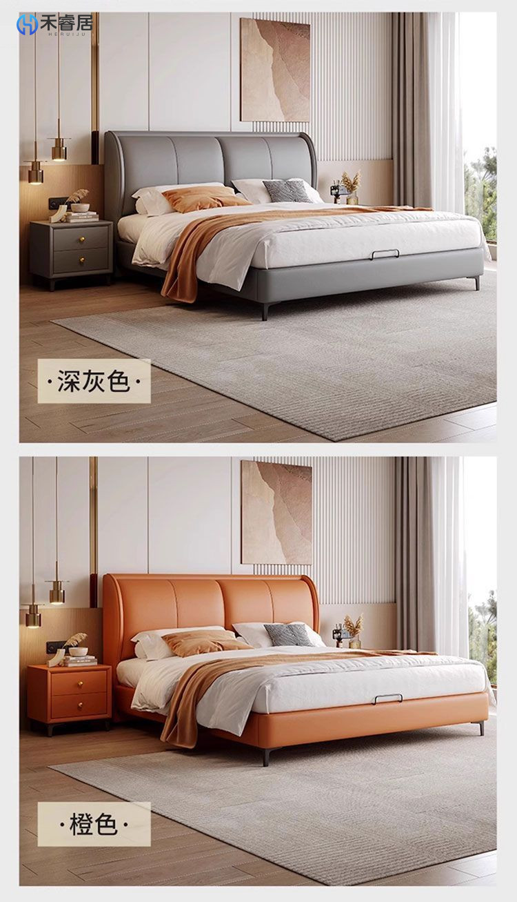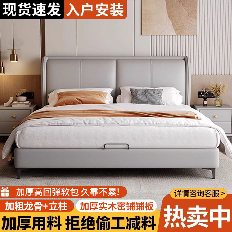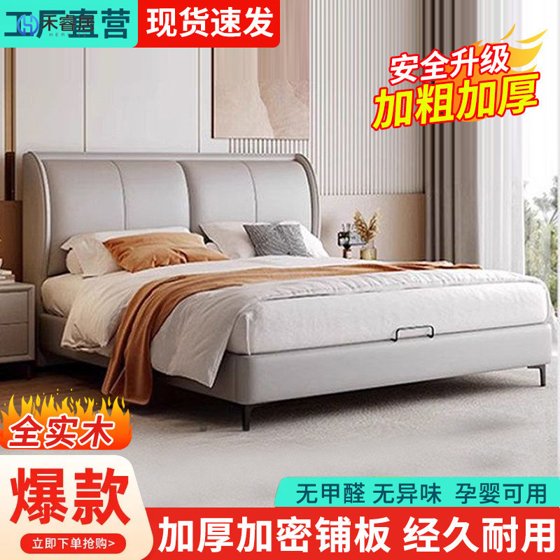 이탈리아 스타일 가죽 아트 침대 빛 고급 새 침실 단단한 나무 침대 현대 간단한 홈 1.8 더블 침대 1.5 마스터 침실 웨딩 침대스토어 가기