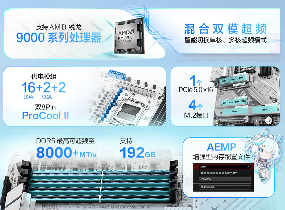ASUS ROG STRIX X870-A 게임 WIFI 눈 부는 지원 CPU 9900X/9950X스토어 가기