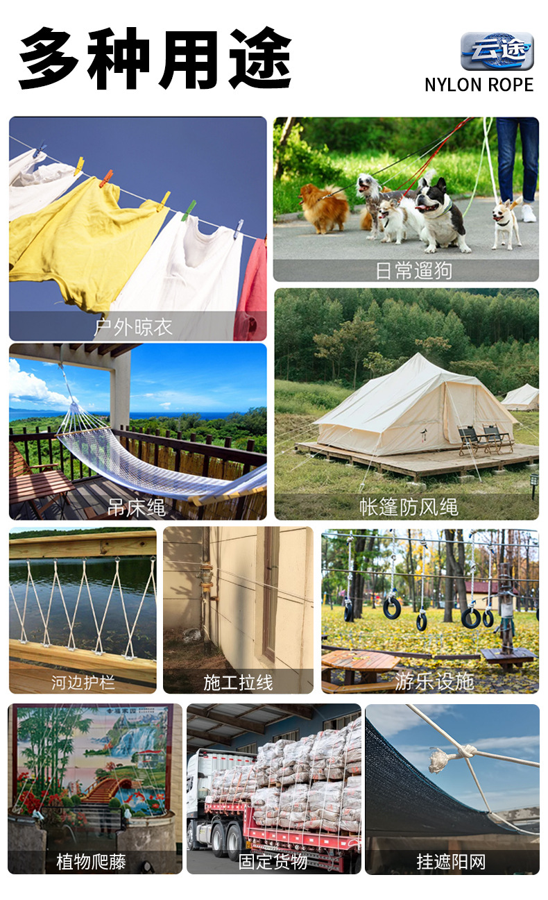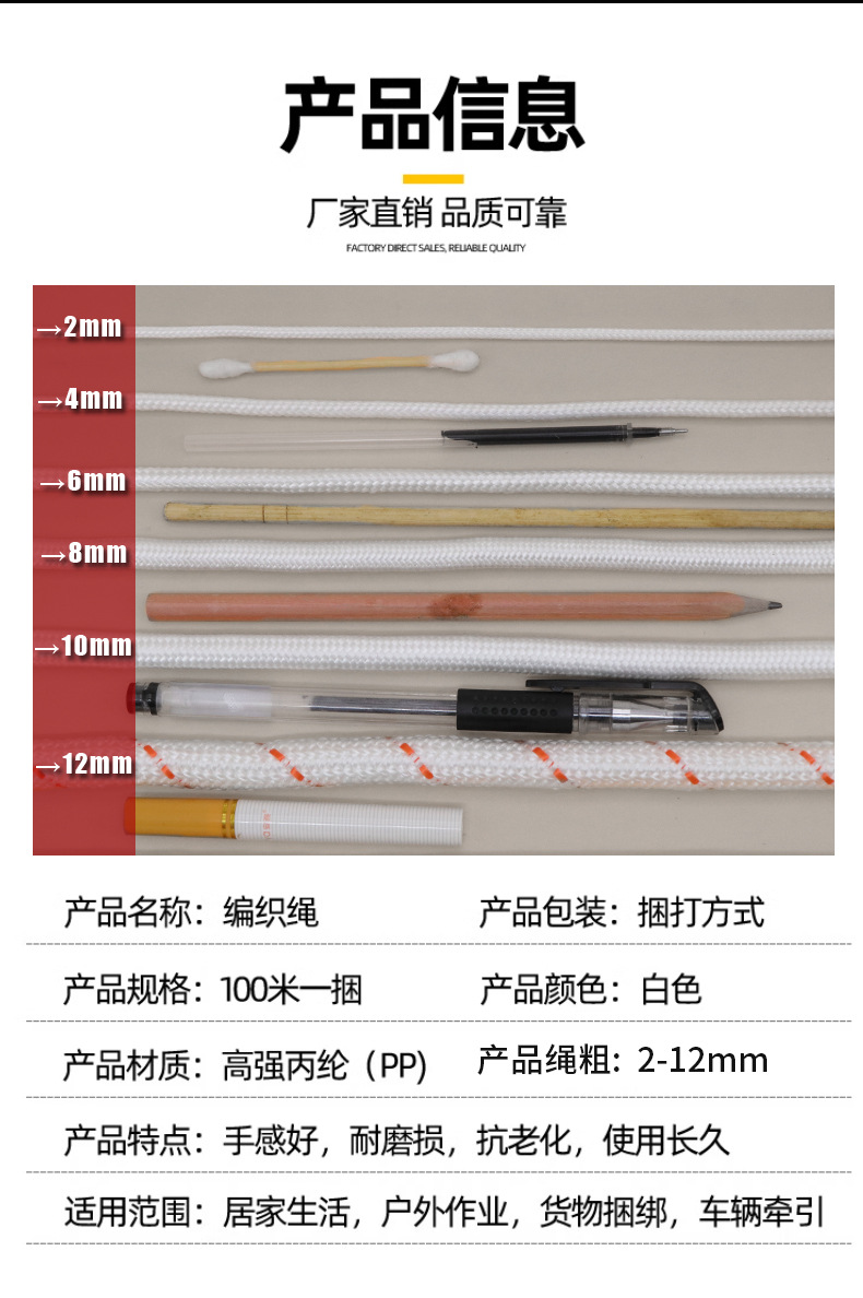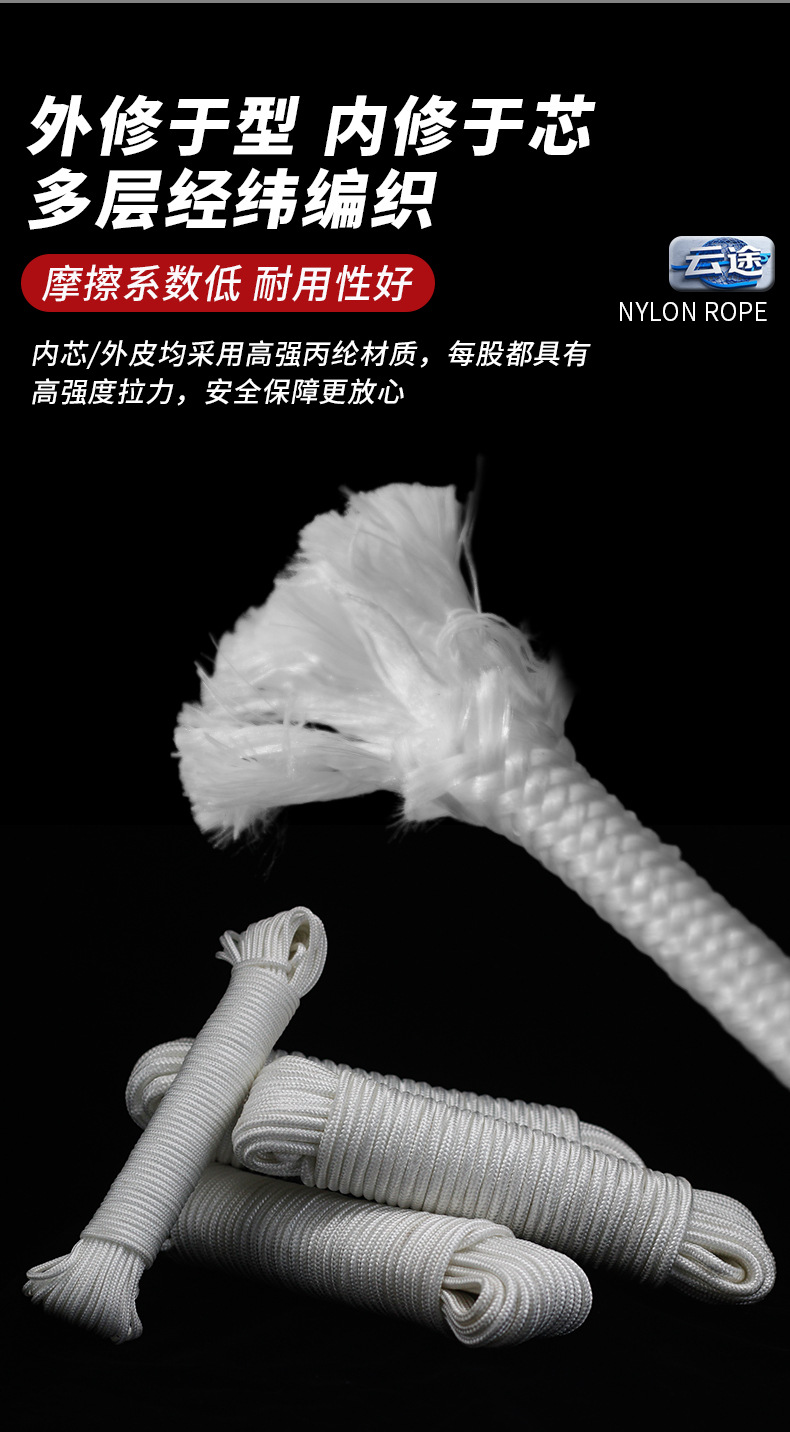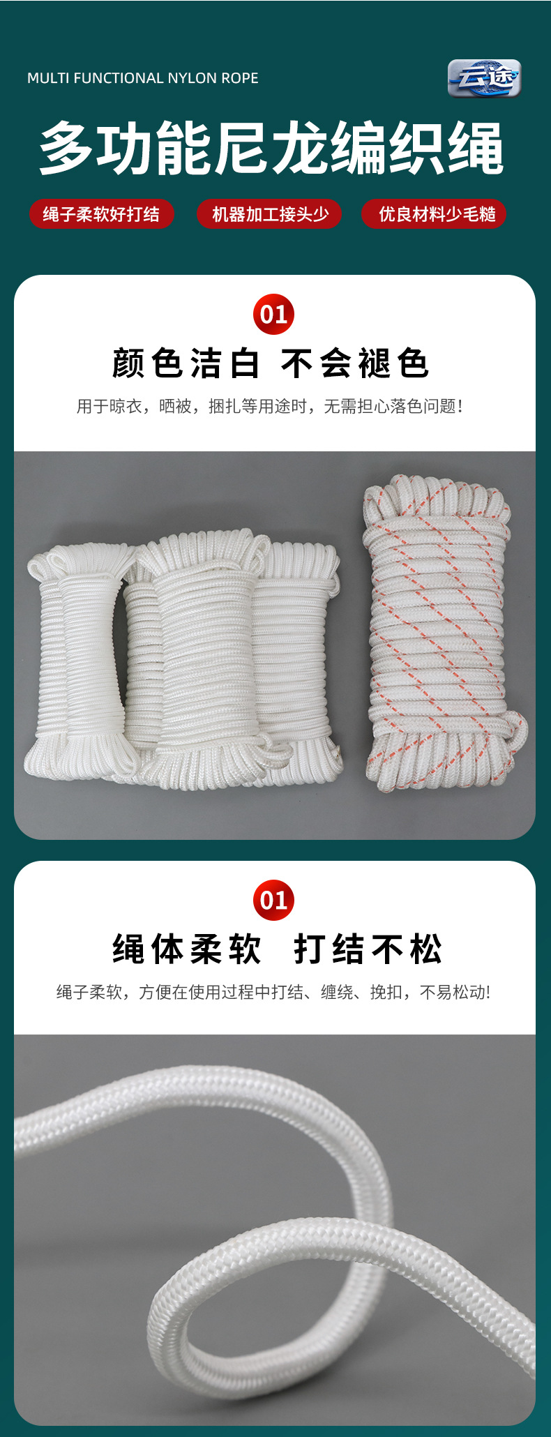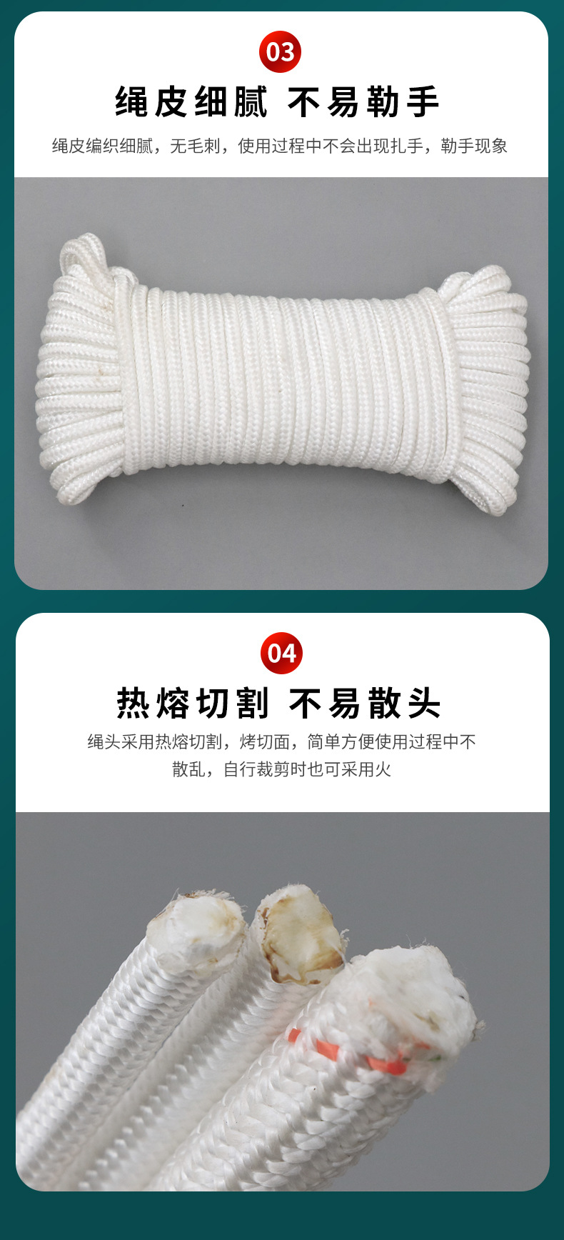 나일론 꼰 로프 화이트 코어-스핀 로프 바운드 텐트 트럭 노화 방지 의류 건조 액세서리 안전 로프 폴리 프로필렌 로프
