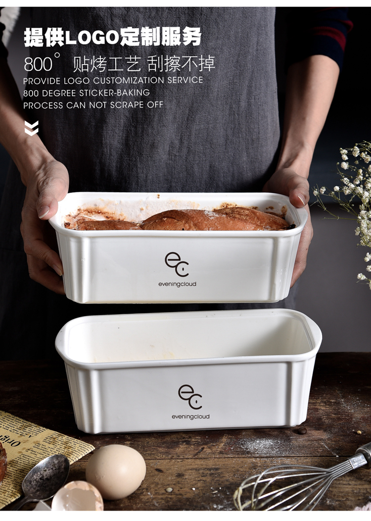 오븐 사용 가능한 1 케이크 금형 가정용 단색 토스트 금형 로고 베이킹 트레이 직사각형 세라믹 빵