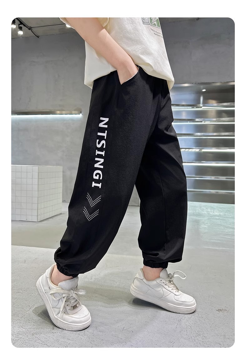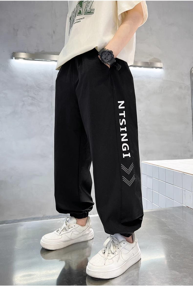 소년 여름 안티 모기 바지 2025 새로운 여름 아이스 실크 빠른 건조 스포츠 바지 큰 아이들 얇은 여름 소년 트렌디스토어 가기