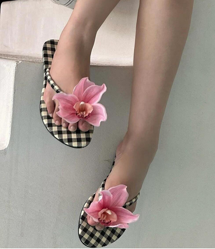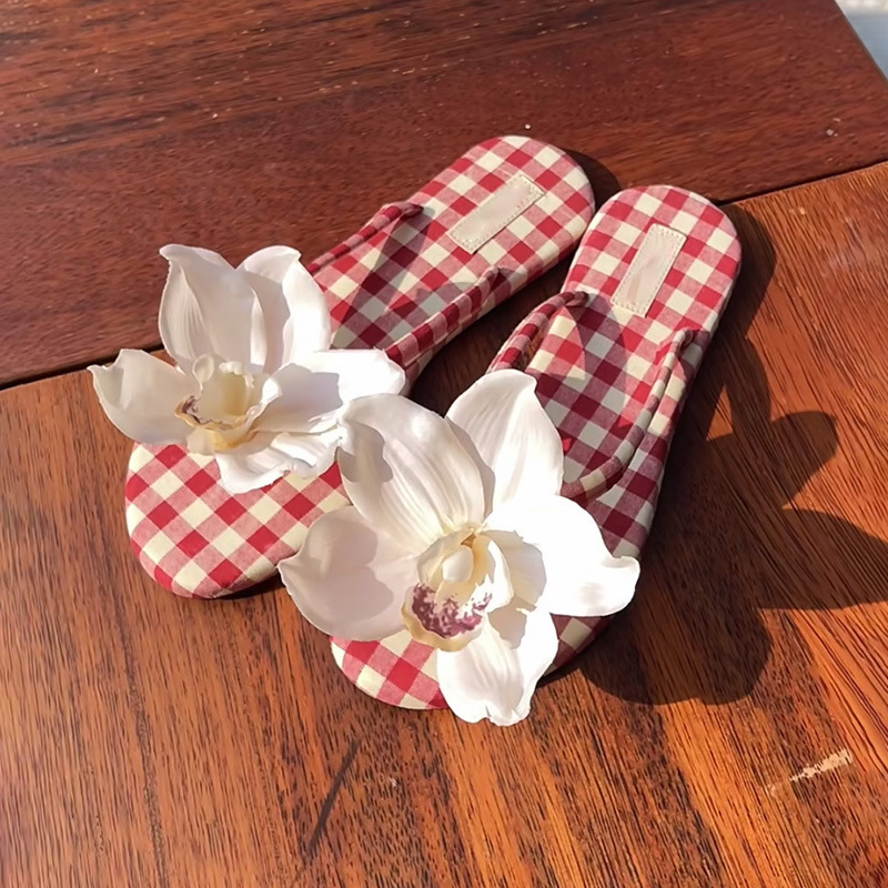 송아지 가죽 슬리퍼, 휴가 스타일 플랫 슬리퍼, 여성용 액세서리, 패셔너블하고 달콤한 분위기, 보헤미안 스타일, 사진 촬영용, 나비 모양