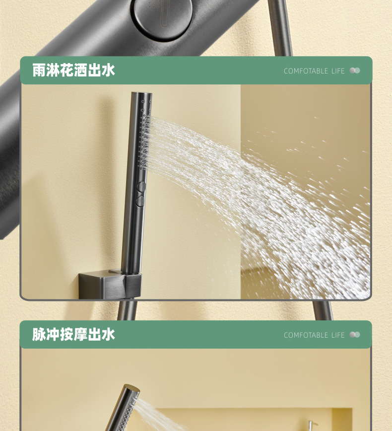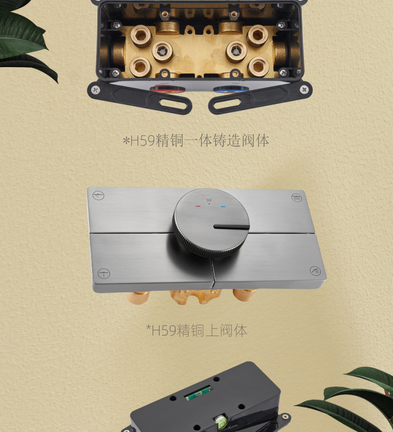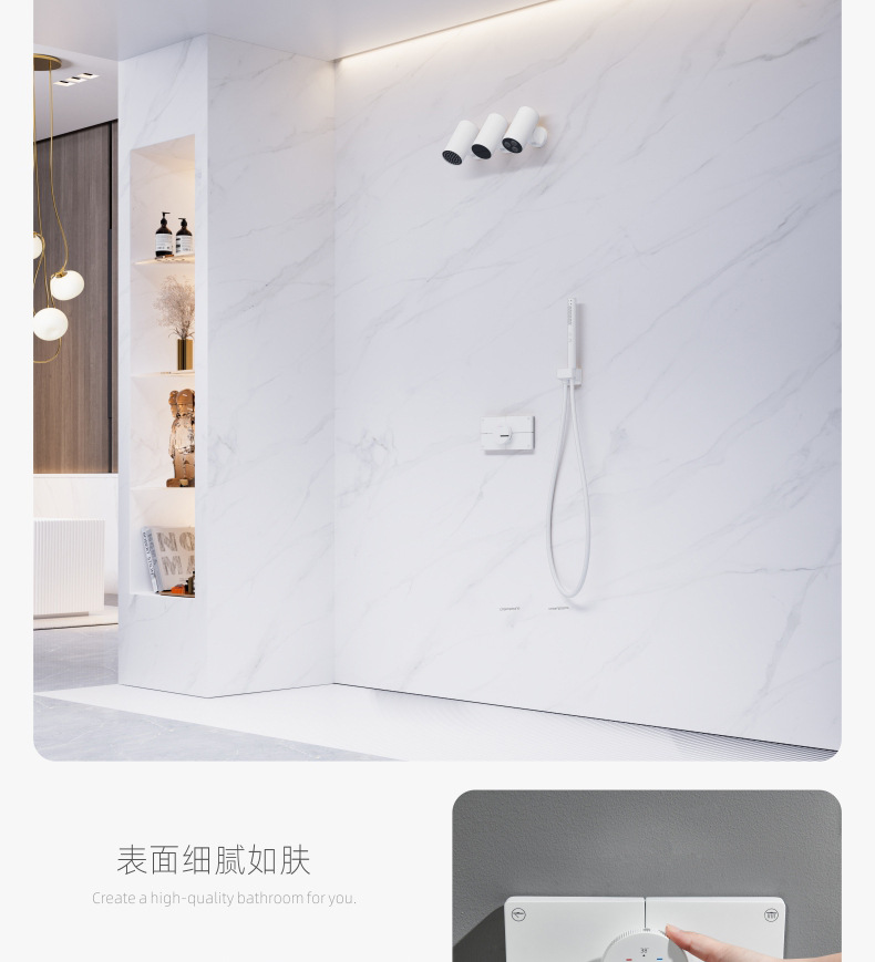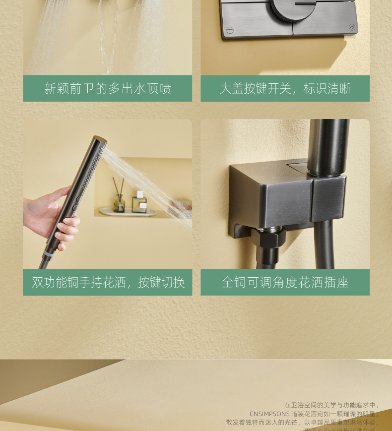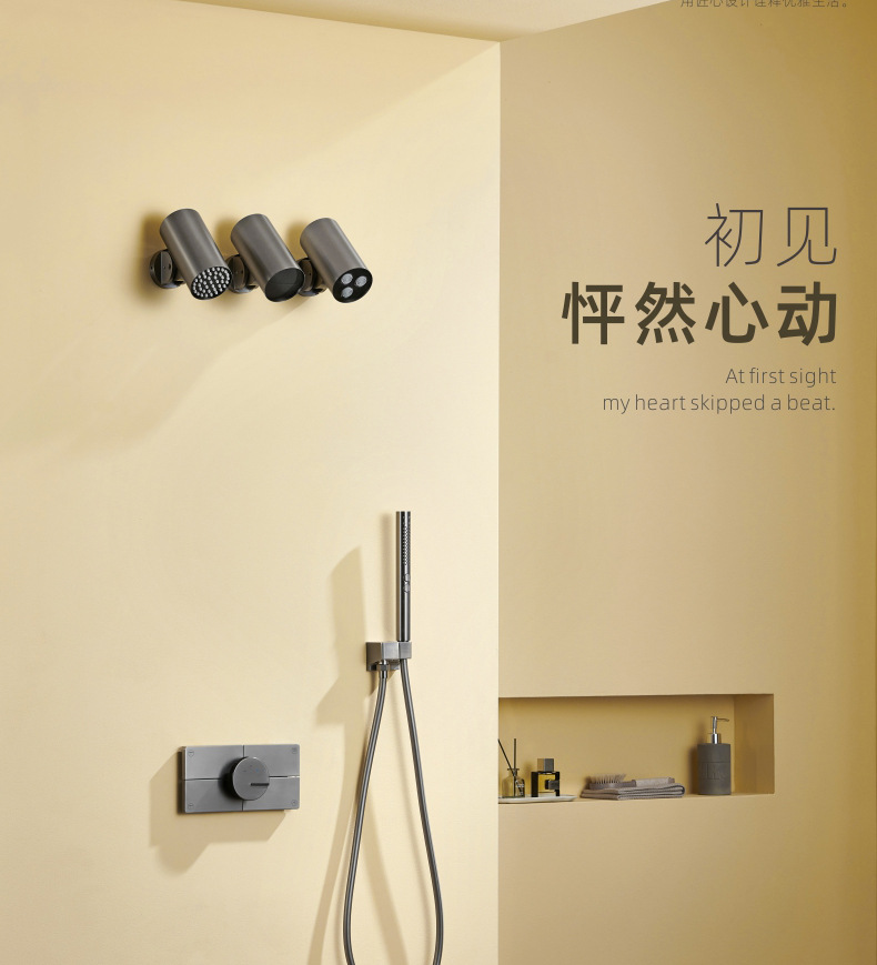 지능형 일정한 온도 숨겨진 샤워 세트 미니멀리스트 탑 스프레이 숨겨진 임베디드 샤워 정제 된 구리 벽 임베디드 임베디드 샤워스토어 가기