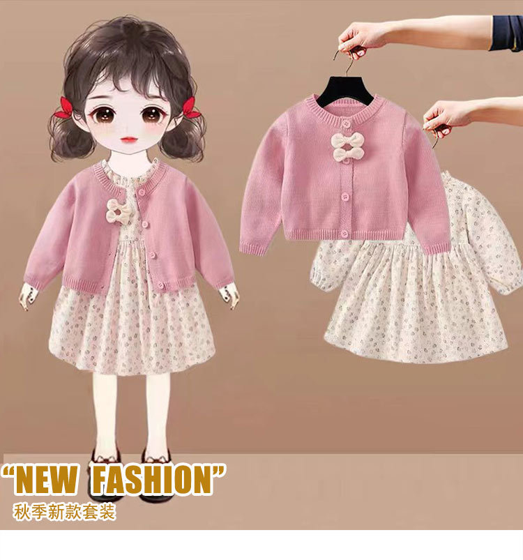여성 아동복 이른 가을 착용 2025 새로운 어린이 온라인 인기 외국 스타일 유행 여성 보물 스웨터 원피스 세트