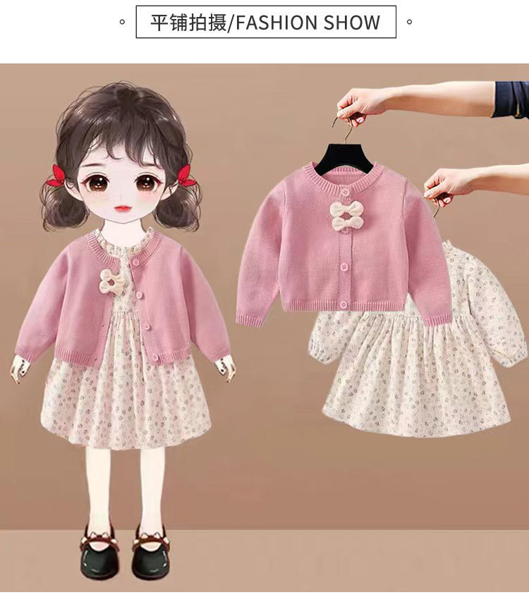 여성 아동복 이른 가을 착용 2025 새로운 어린이 온라인 인기 외국 스타일 유행 여성 보물 스웨터 원피스 세트스토어 가기
