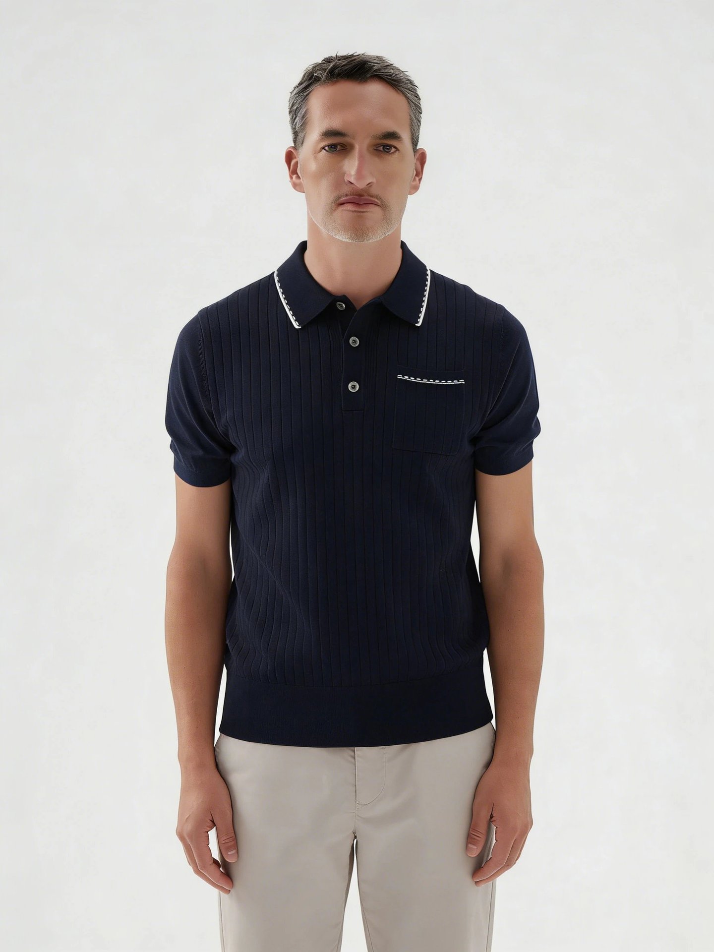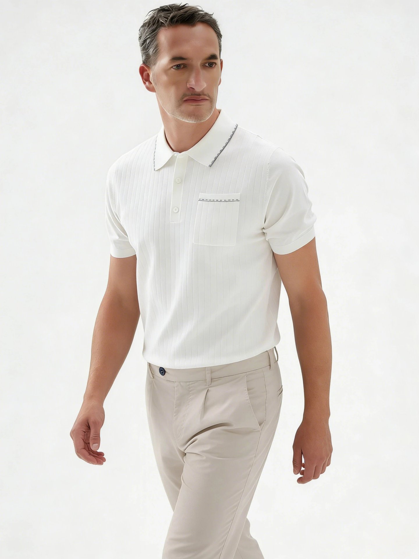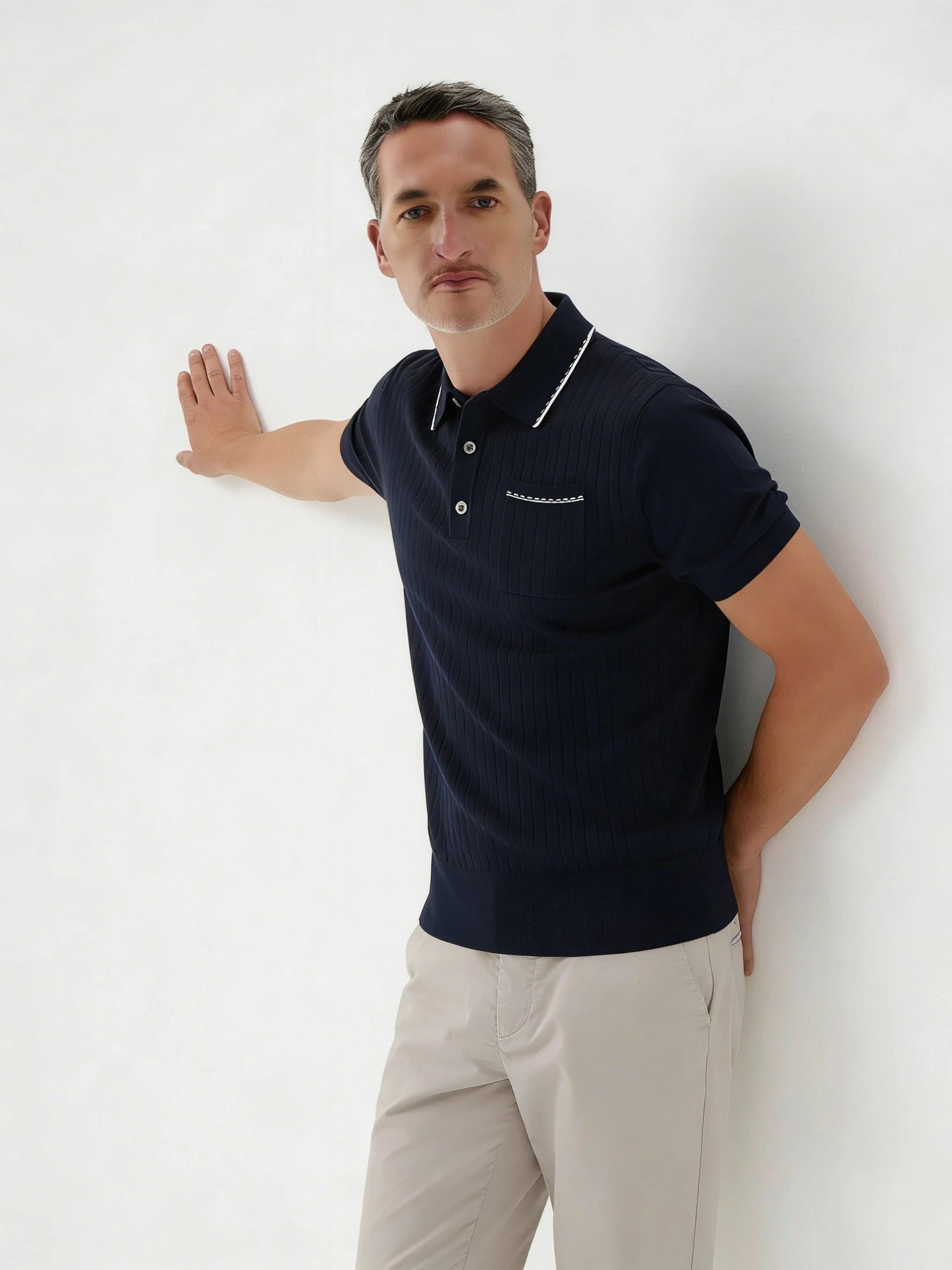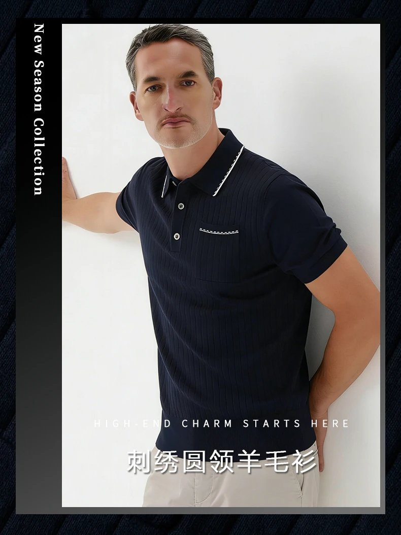 BC와 동일한 스타일의 비즈니스 남성용 16니트 라펠 스웨터, 60수 순면 편안한 POLO 니트웨어 62158