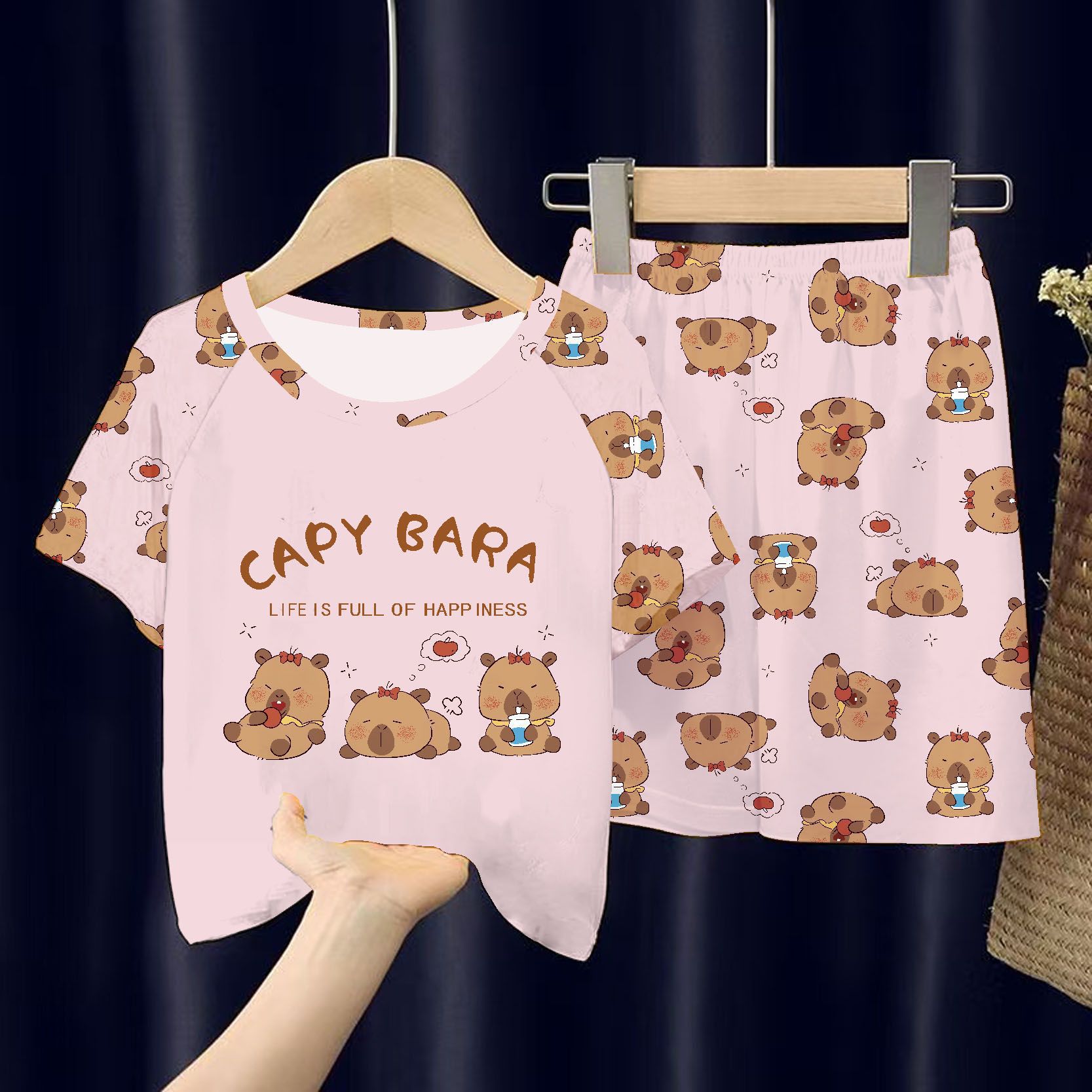 새로운 여름 어린이 잠옷 만화 소녀 반팔 반바지 얇은 소년 캐주얼 중 큰 아이 세트 홈 옷스토어 가기