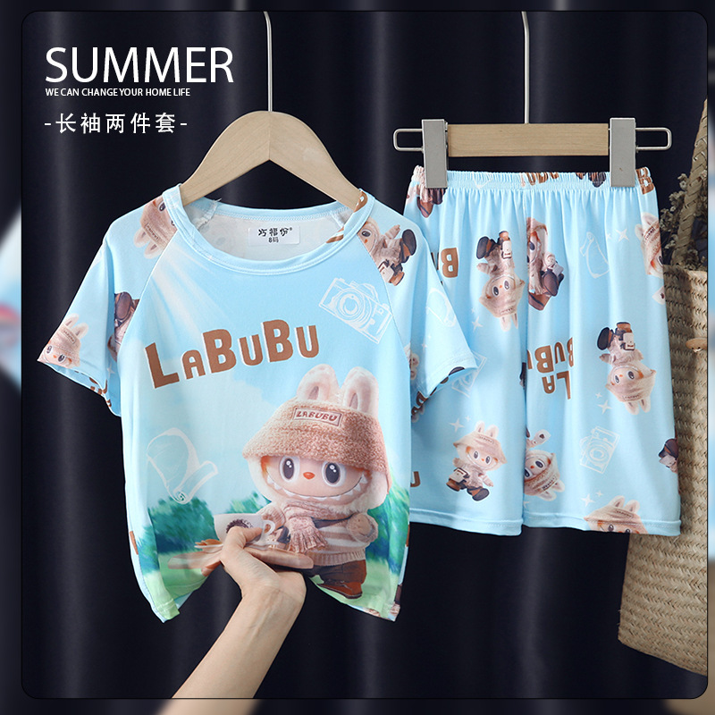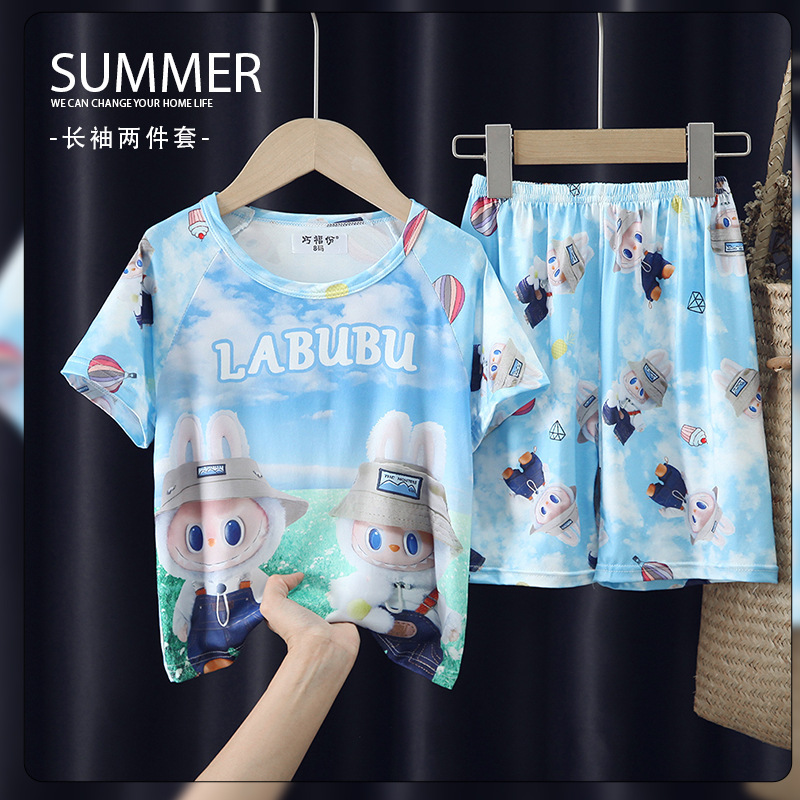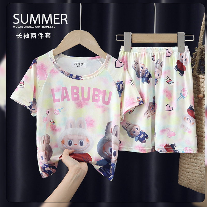 새로운 여름 어린이 잠옷 만화 소녀 반팔 반바지 얇은 소년 캐주얼 중 큰 아이 세트 홈 옷
