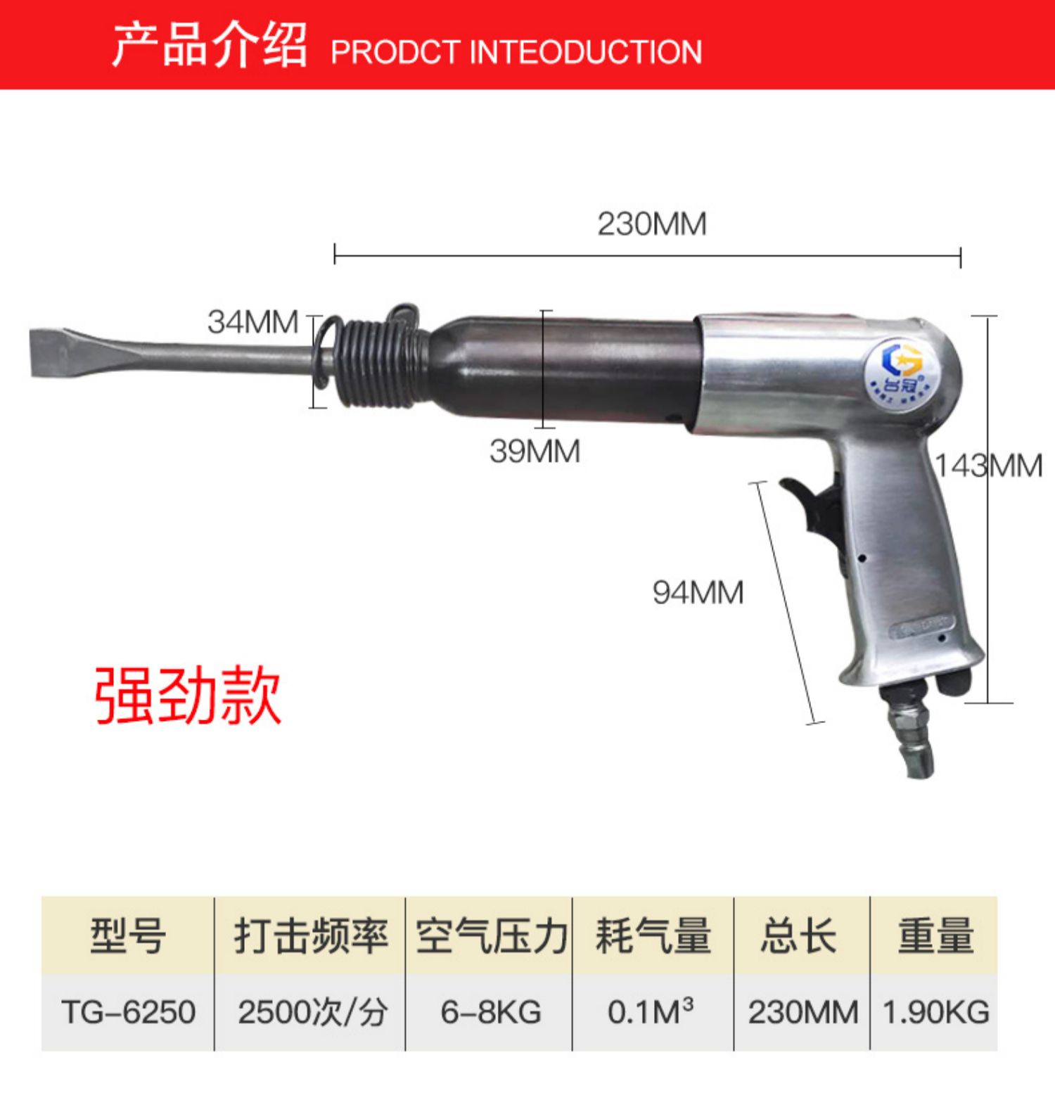 • ▲새로운 오리지널 대만 TG-6350 대용량/4 삽 헤드/1 스프링/1 플러그 충격력 120KG 공기 삽 시리즈 힘