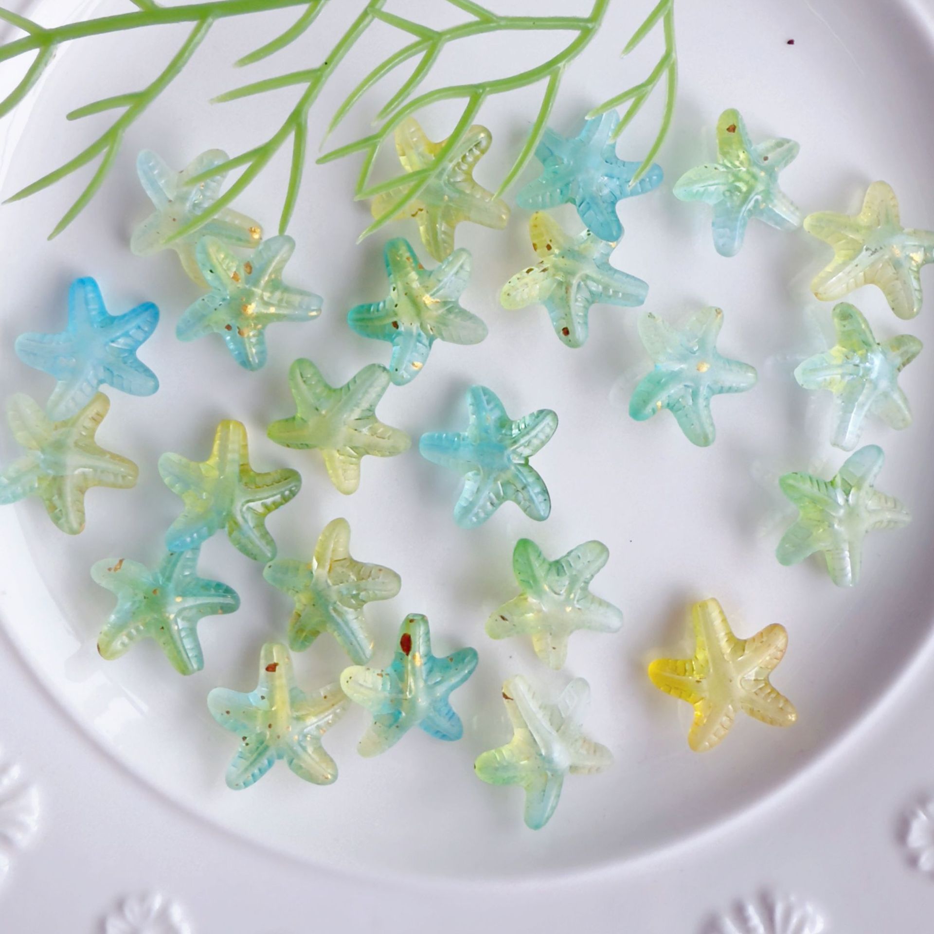 아크릴 시뮬레이션 그라디언트 포인트 골드 불가사리 수제 DIY 보석 액세서리 팔찌 목걸이 느슨한 구슬 직선 구멍 일치