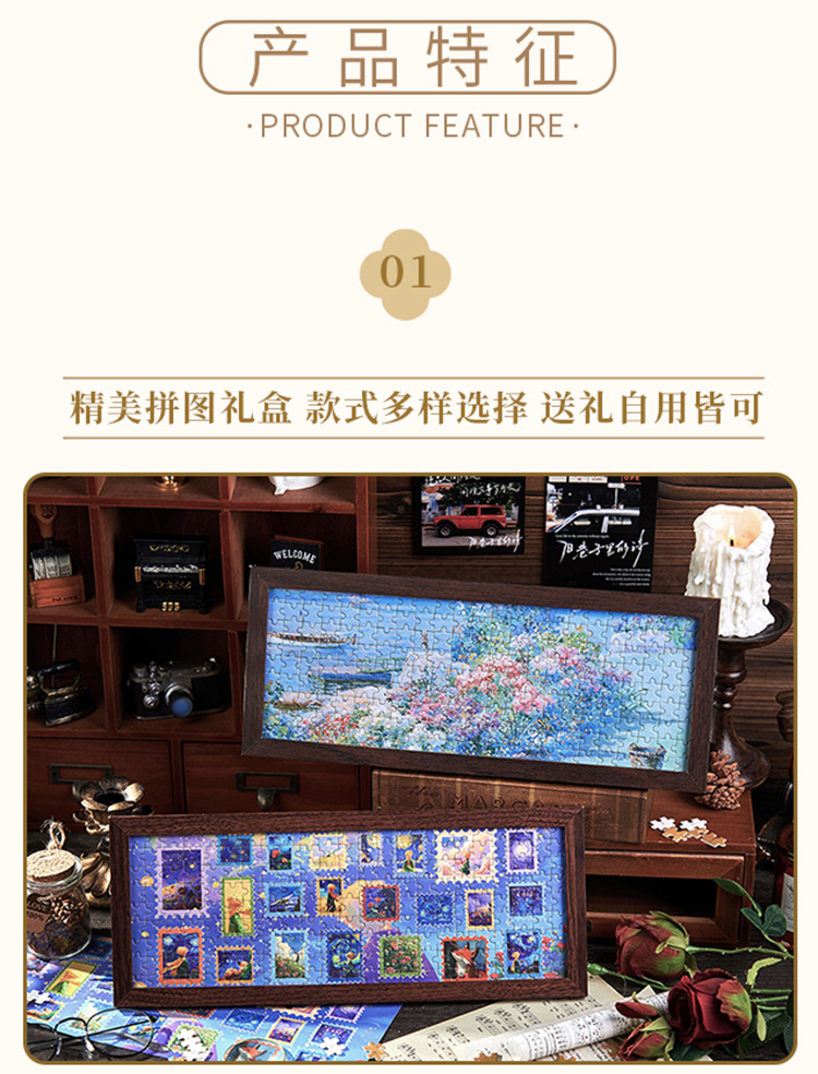 시광 긴형 나무 사진 액자 퍼즐 선물 상자, 문화창의적인 생일 문구 선물, 학생들이 친구에게 주는 데스크탑 장식품