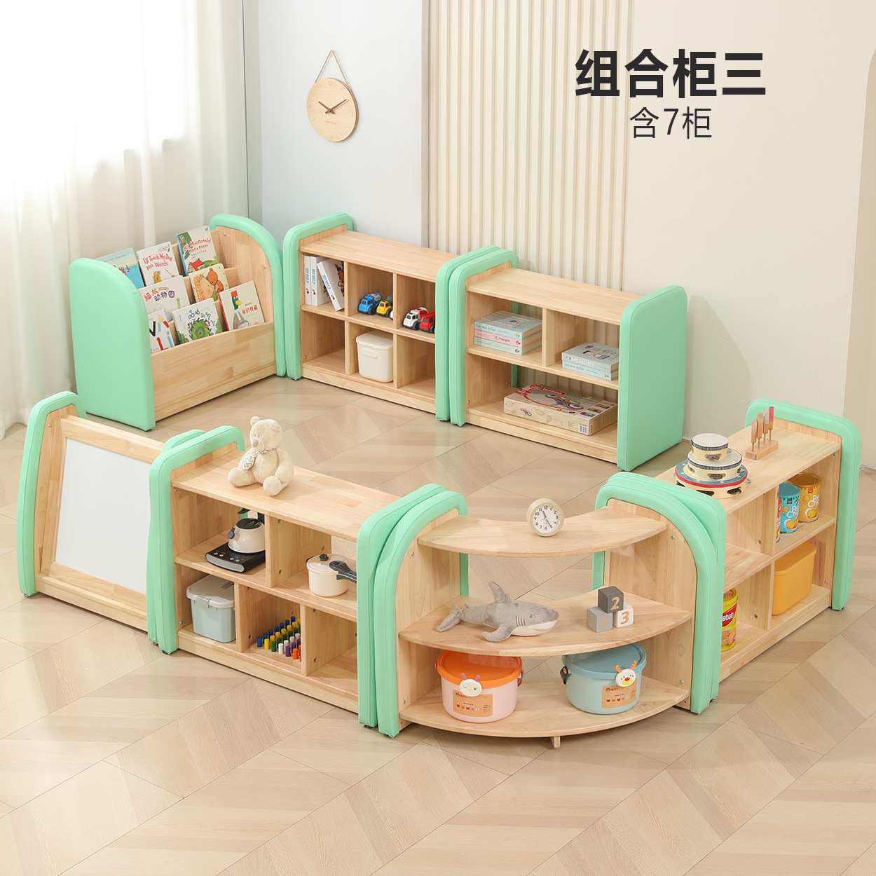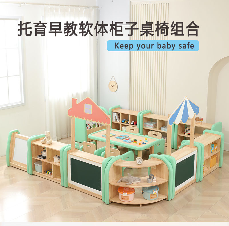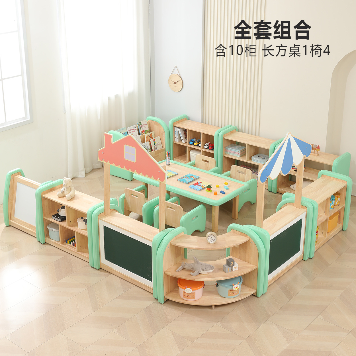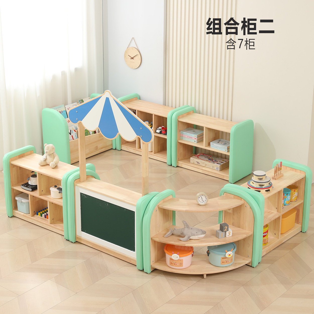 유치원 보육 공간 코너 캐비닛 테이블과 의자 어린이 단단한 나무 부드러운 장난감 캐비닛 더블 레이어 스토리지 캐비닛 몬테소리 교육 보조 캐비닛