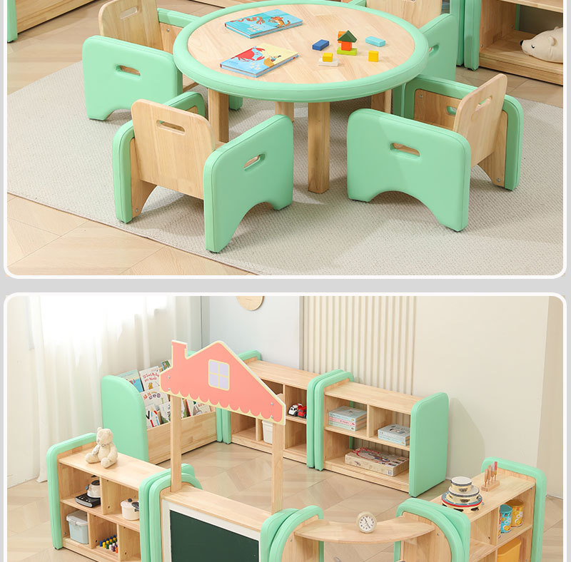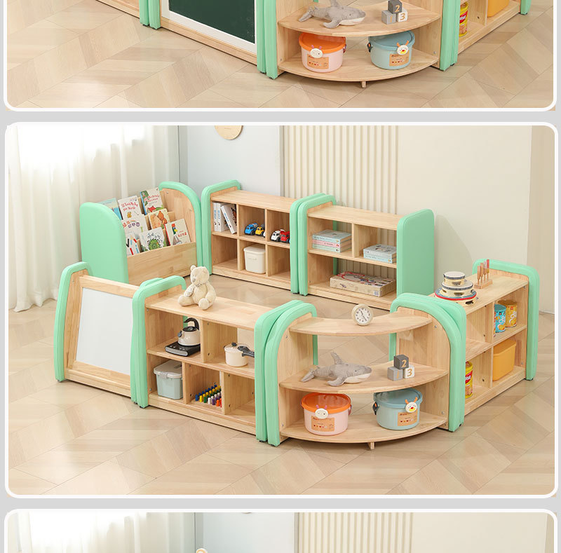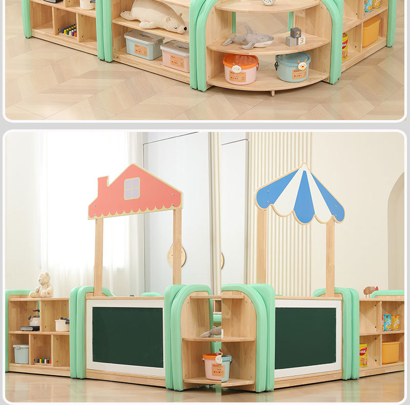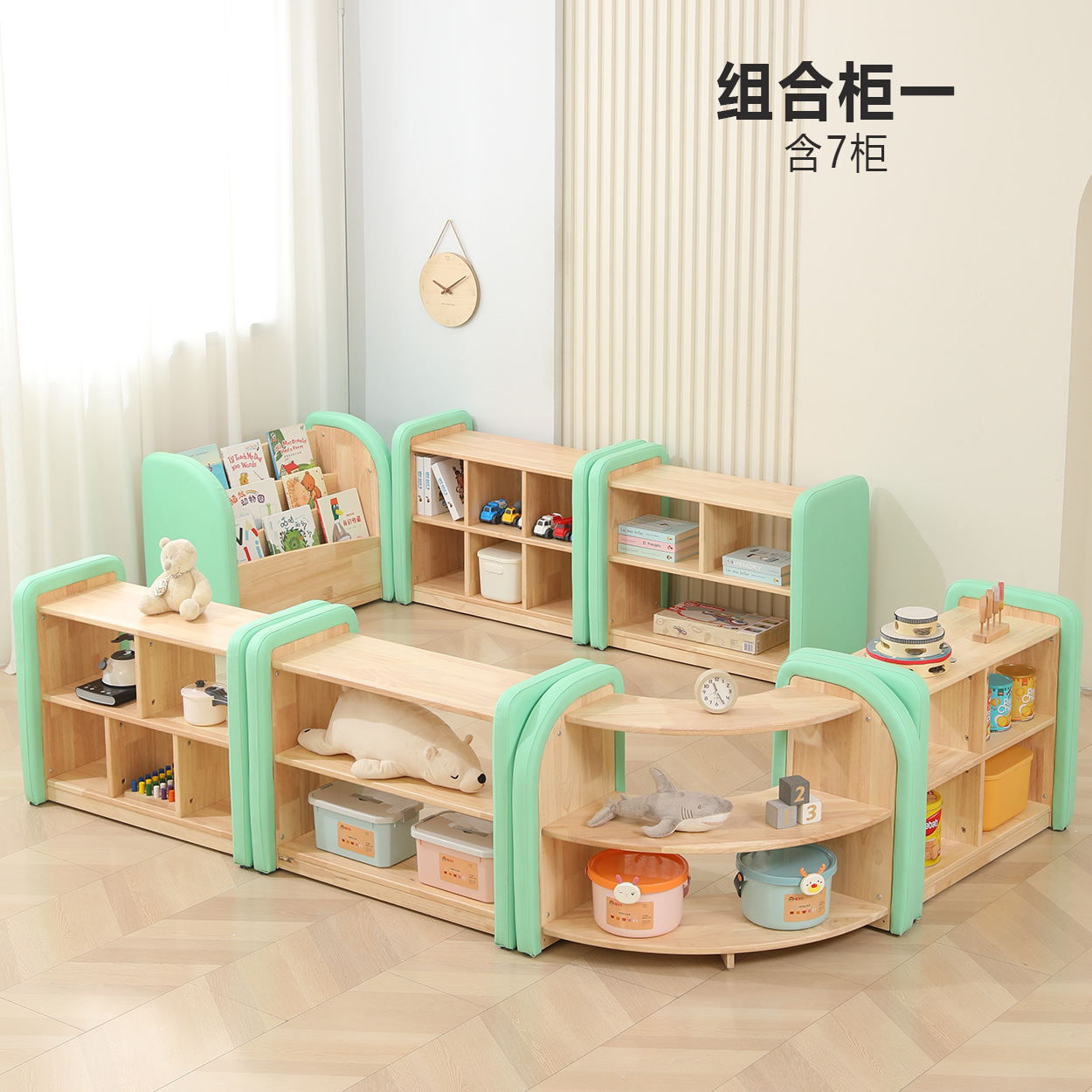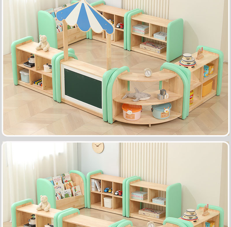 유치원 보육 공간 코너 캐비닛 테이블과 의자 어린이 단단한 나무 부드러운 장난감 캐비닛 더블 레이어 스토리지 캐비닛 몬테소리 교육 보조 캐비닛