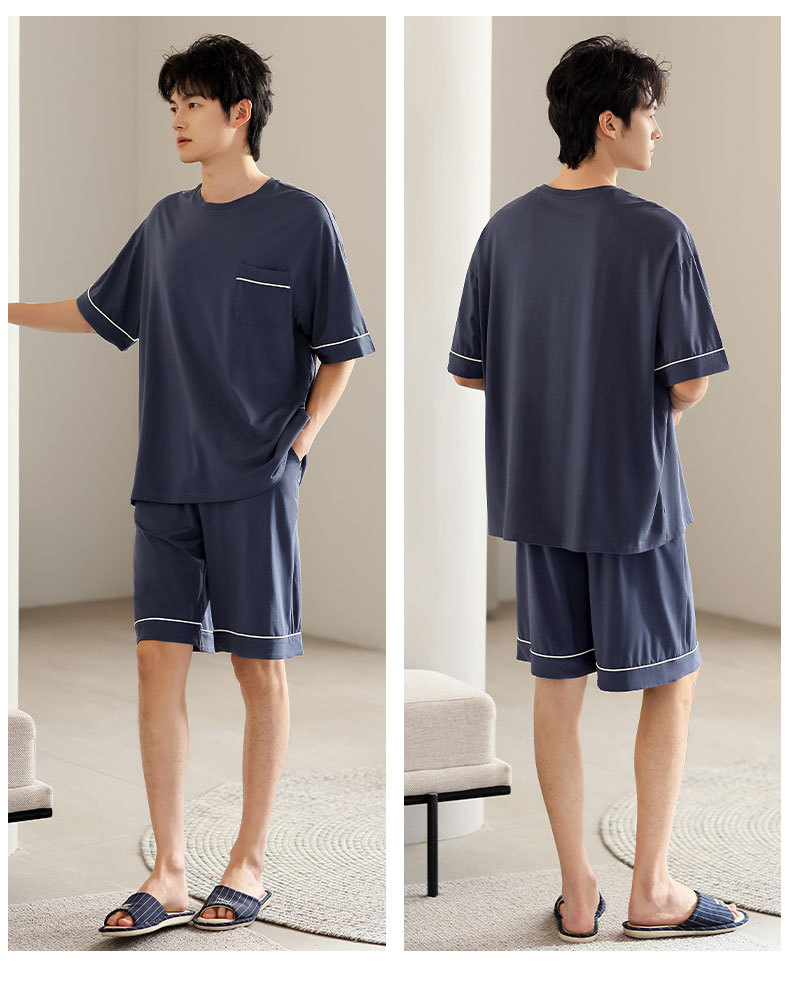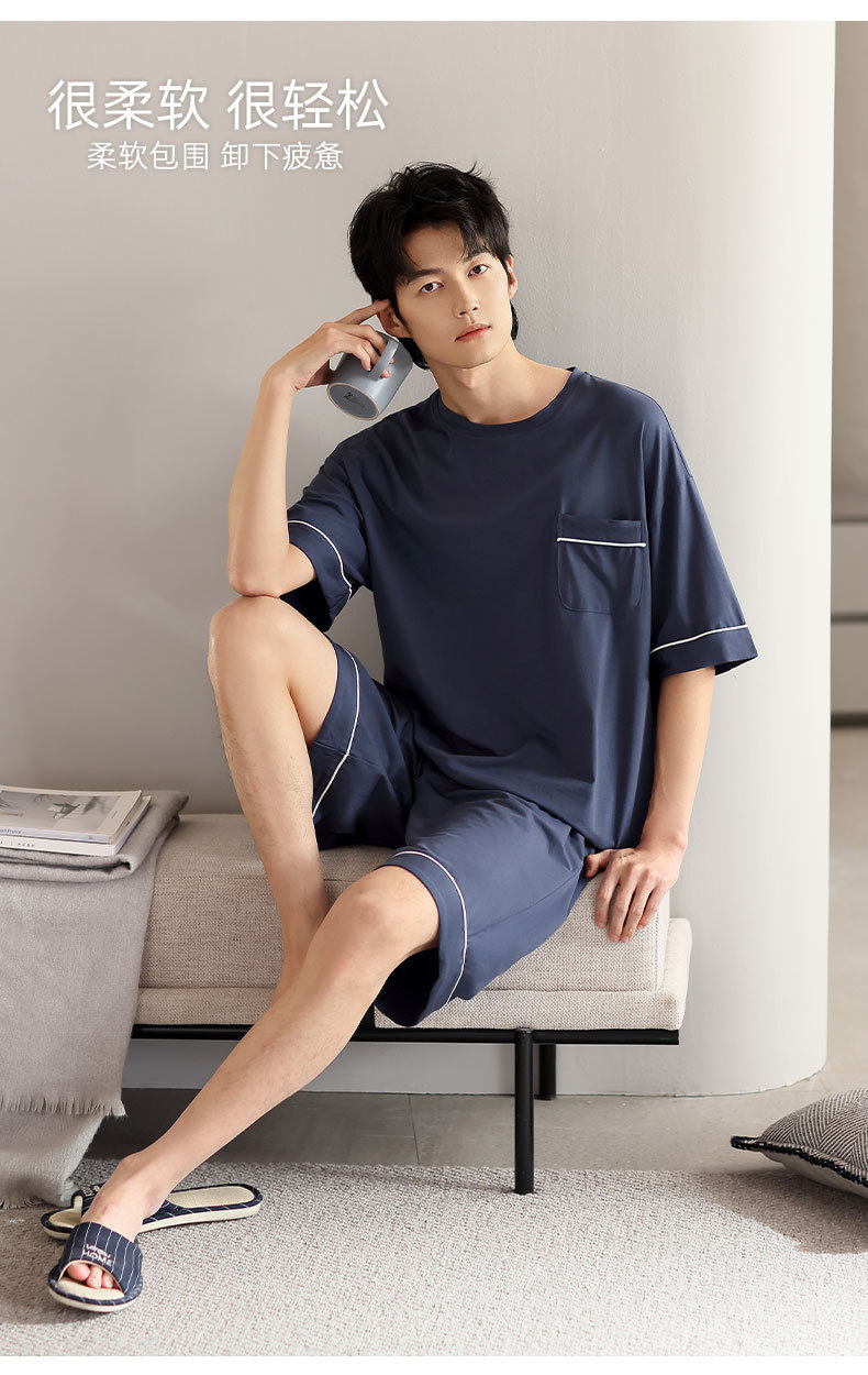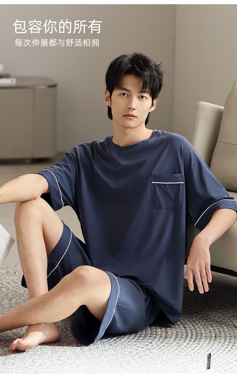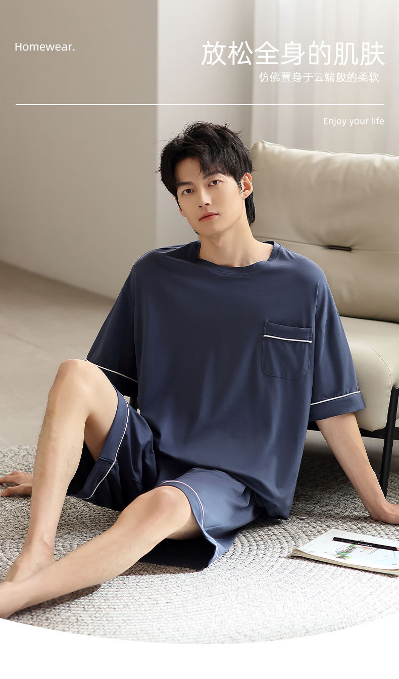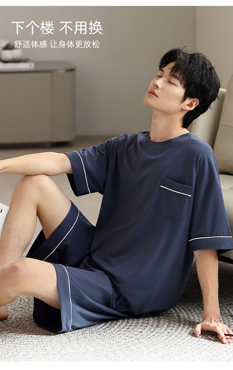 남성 잠옷 반팔 모달 얇은 멋진 플러스 사이즈 홈 캐주얼 간단한 단색 홈 의류 세트스토어 가기