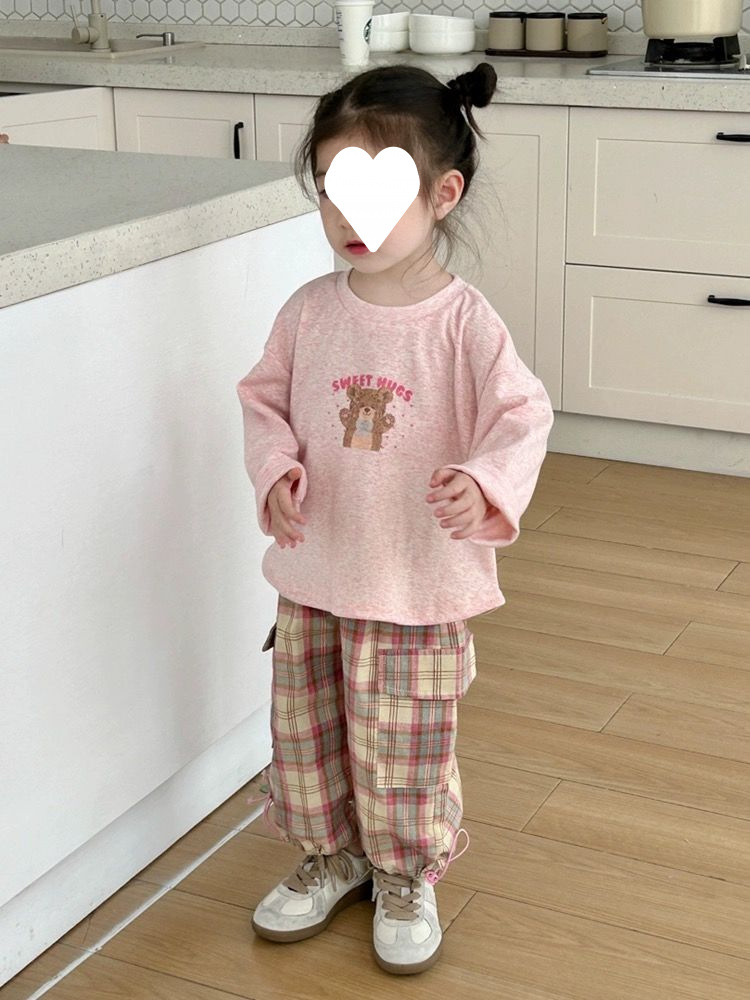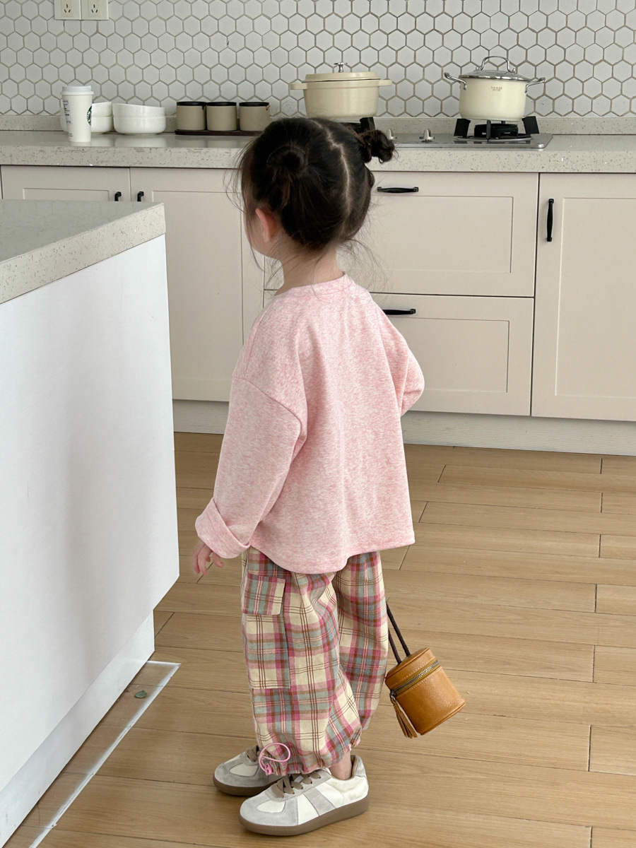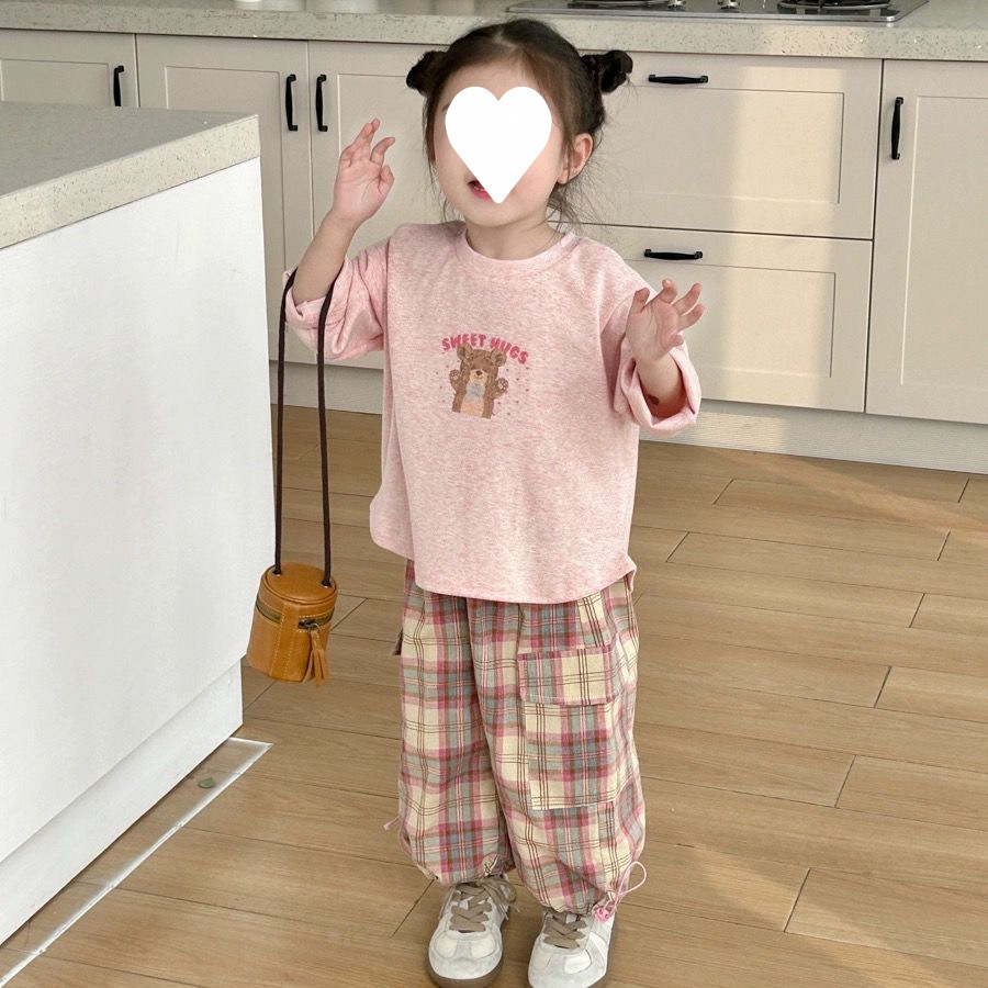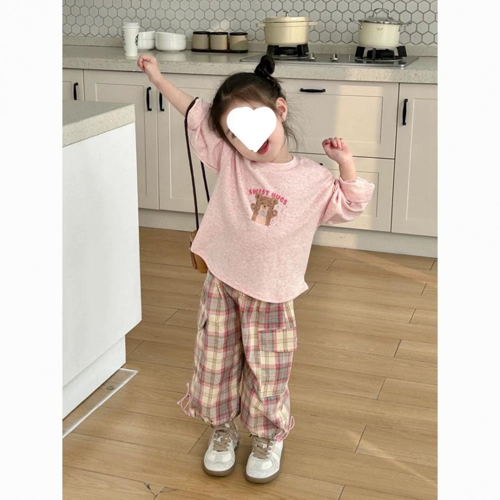 소녀 세트 2025 봄과 여름 새로운 한국 스타일 귀여운 캐주얼 긴 소매 아기 격자 무늬 바지 티셔츠 투피스 트렌디 6