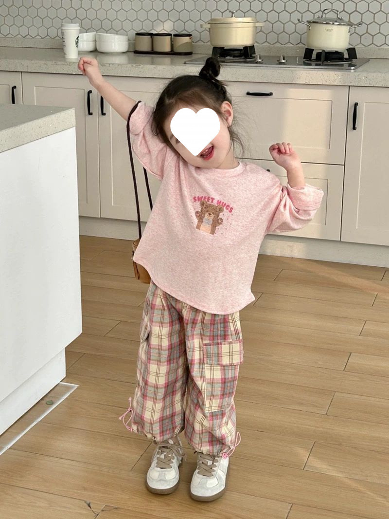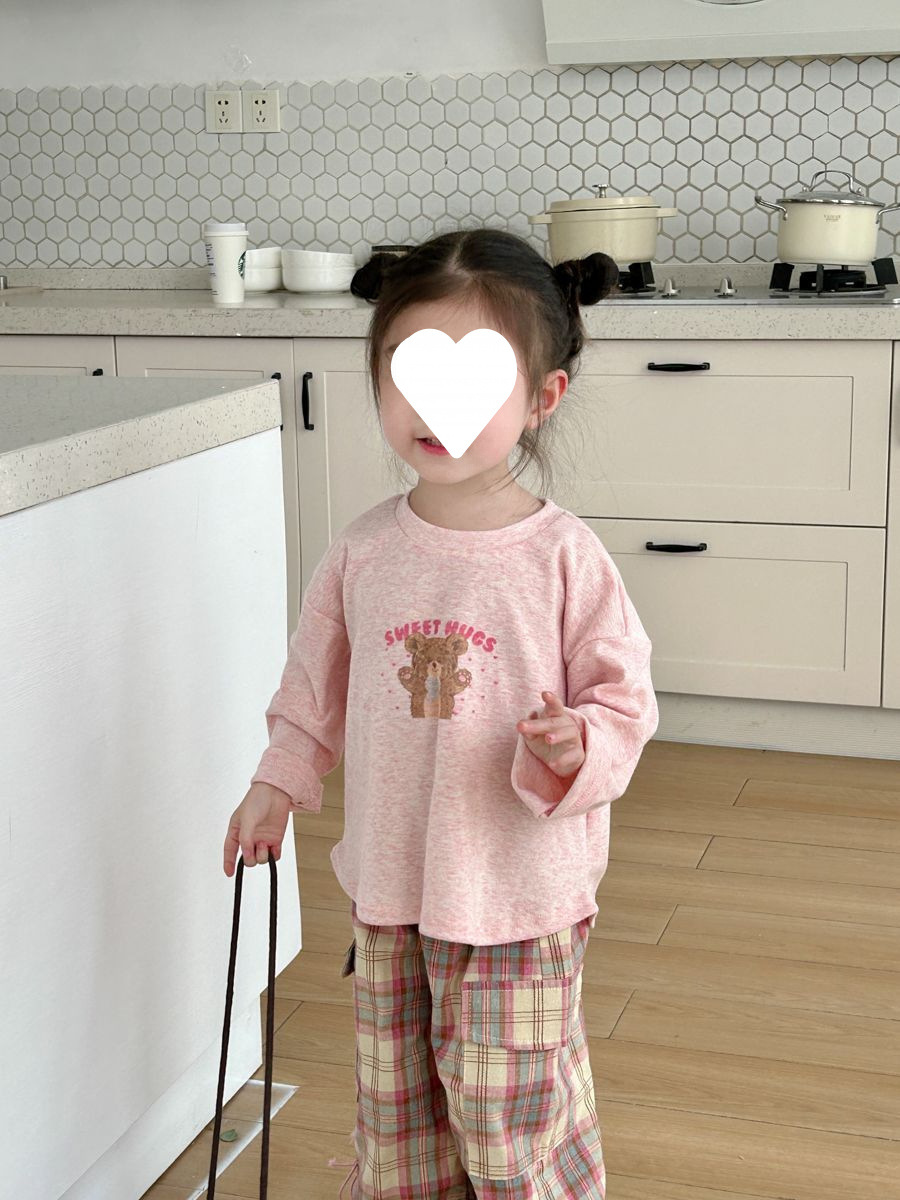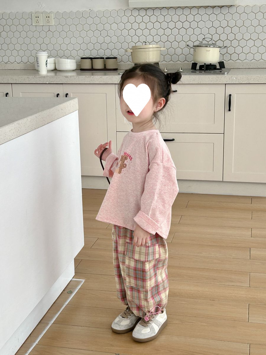 소녀 세트 2025 봄과 여름 새로운 한국 스타일 귀여운 캐주얼 긴 소매 아기 격자 무늬 바지 티셔츠 투피스 트렌디 6