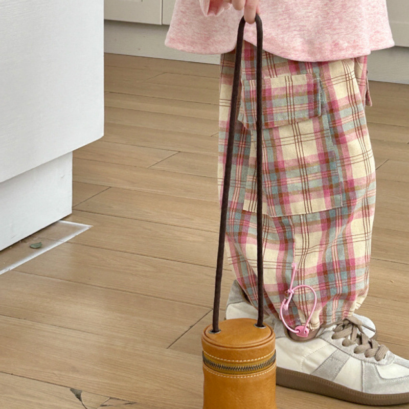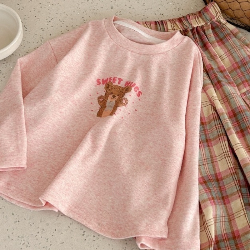 소녀 세트 2025 봄과 여름 새로운 한국 스타일 귀여운 캐주얼 긴 소매 아기 격자 무늬 바지 티셔츠 투피스 트렌디 6스토어 가기