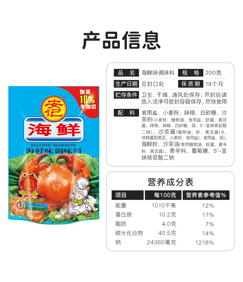 안지 해산물 분말 조미료 200g 조미료 상업 볶음 조미료 분말 말라 탕 냄비 조미료 1kg