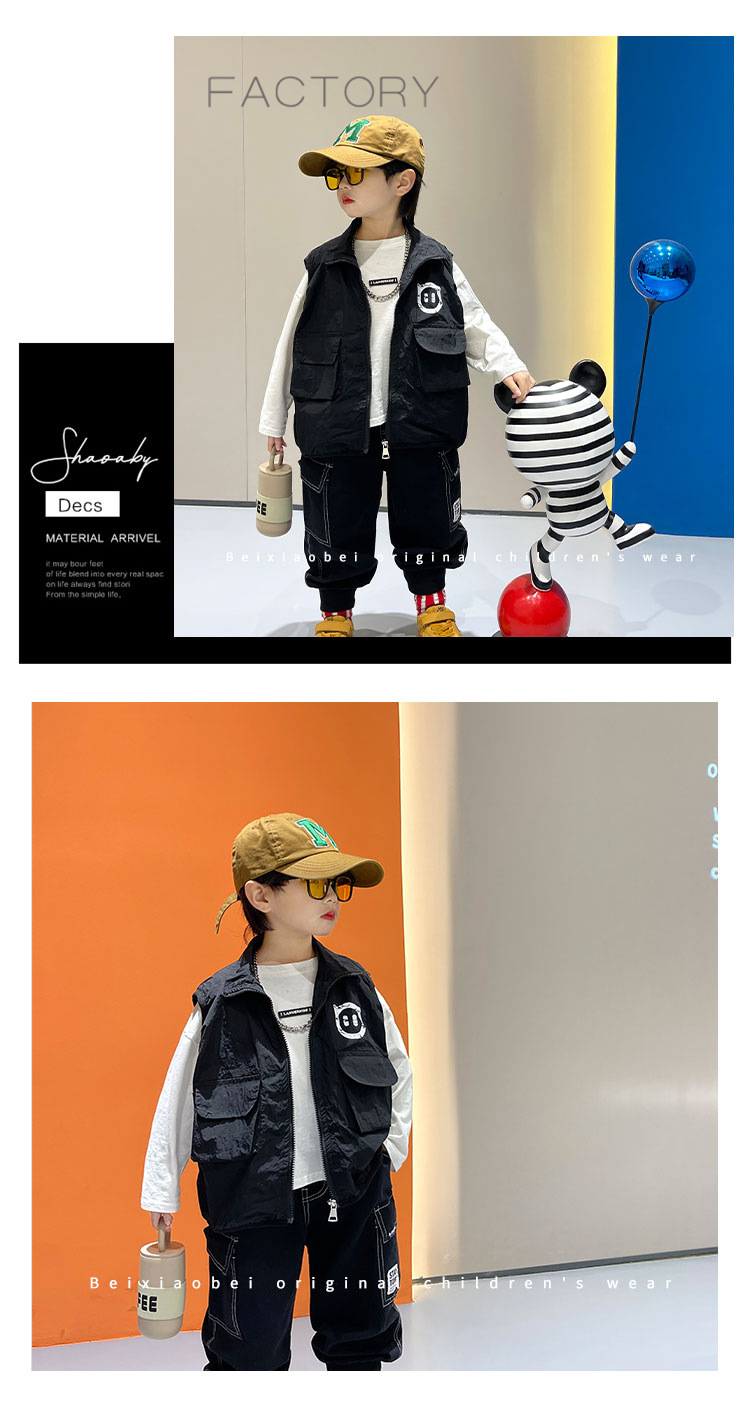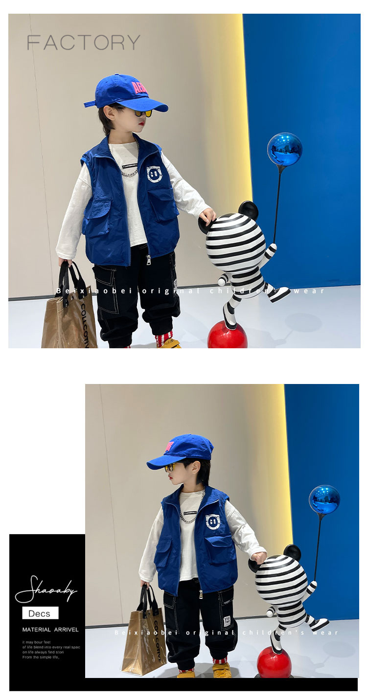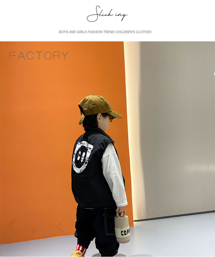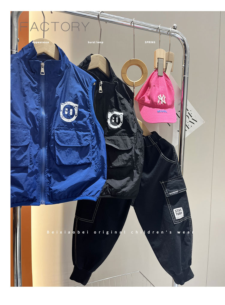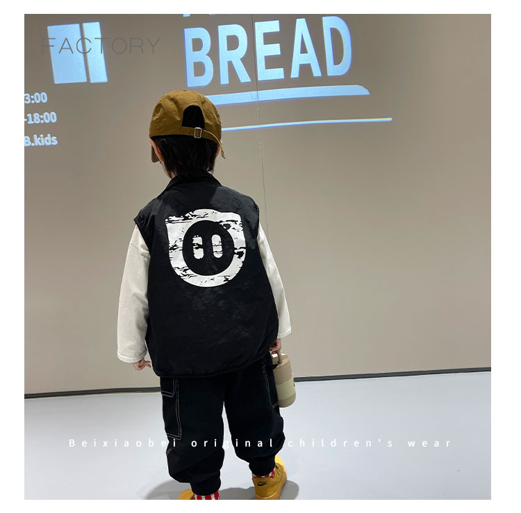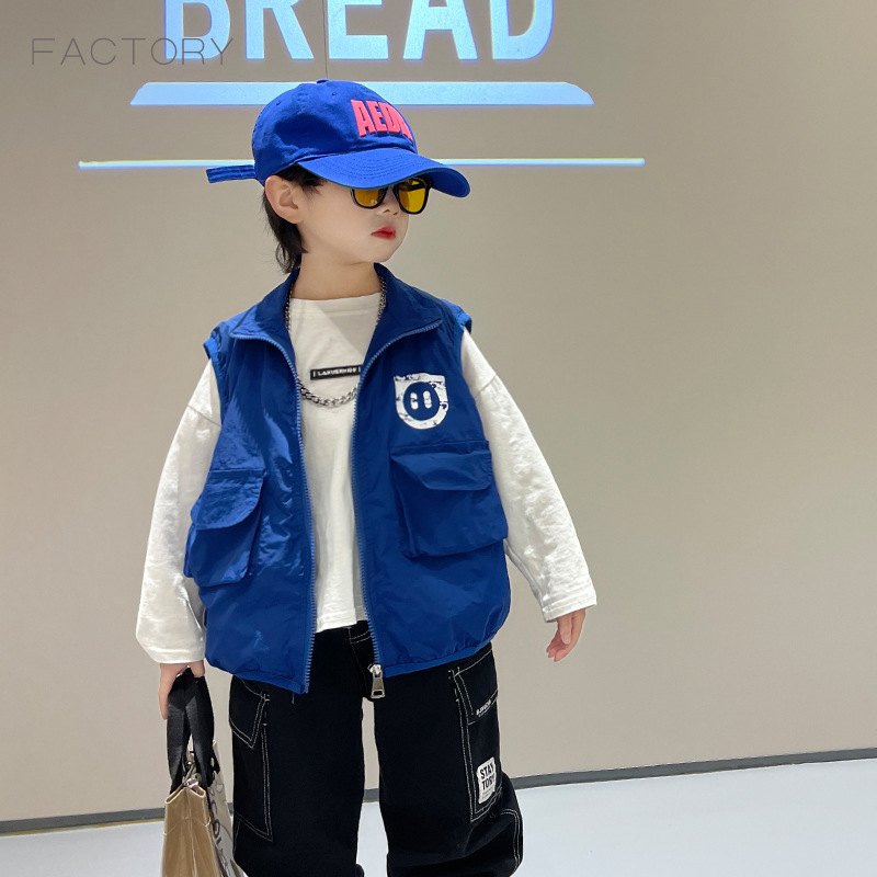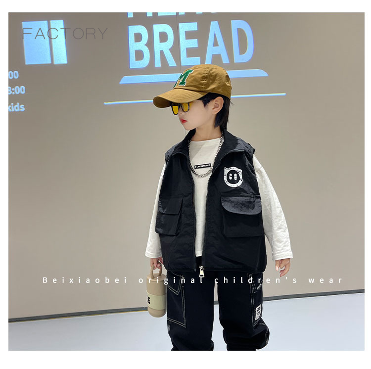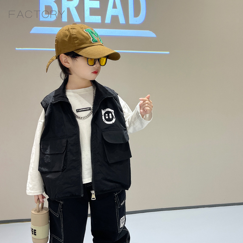 어린이 작업복 조끼 봄 2025 새로운 아기 트렌디 쿨 만화 느슨한 재킷 소년의 잘 생긴 왁스 코트스토어 가기
