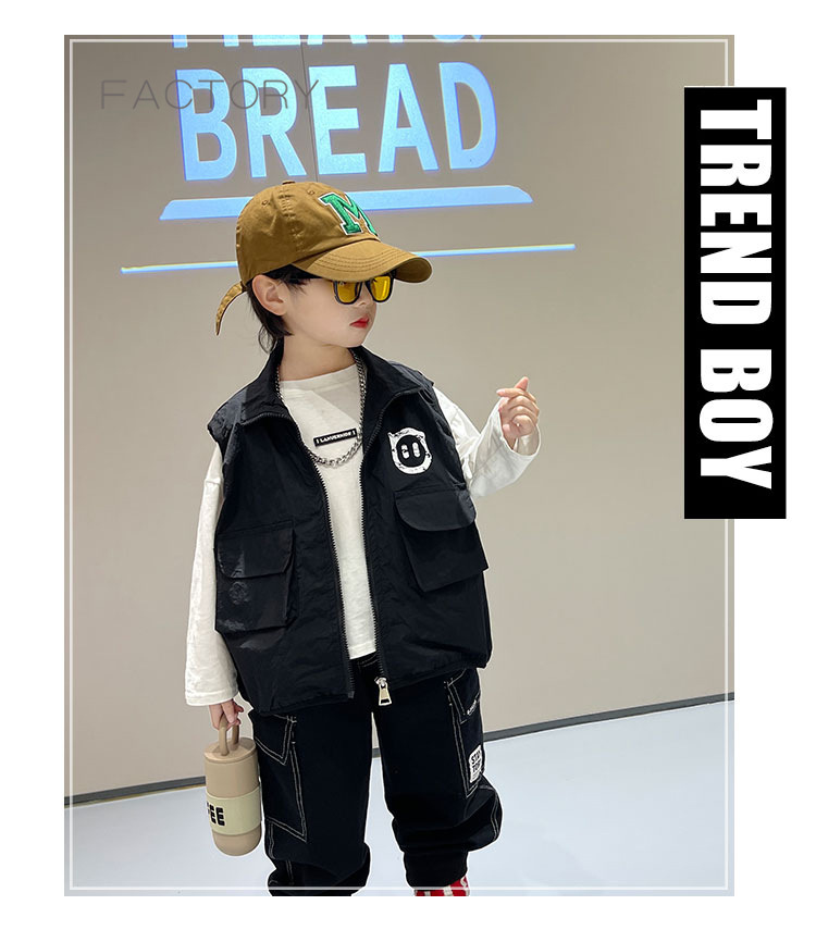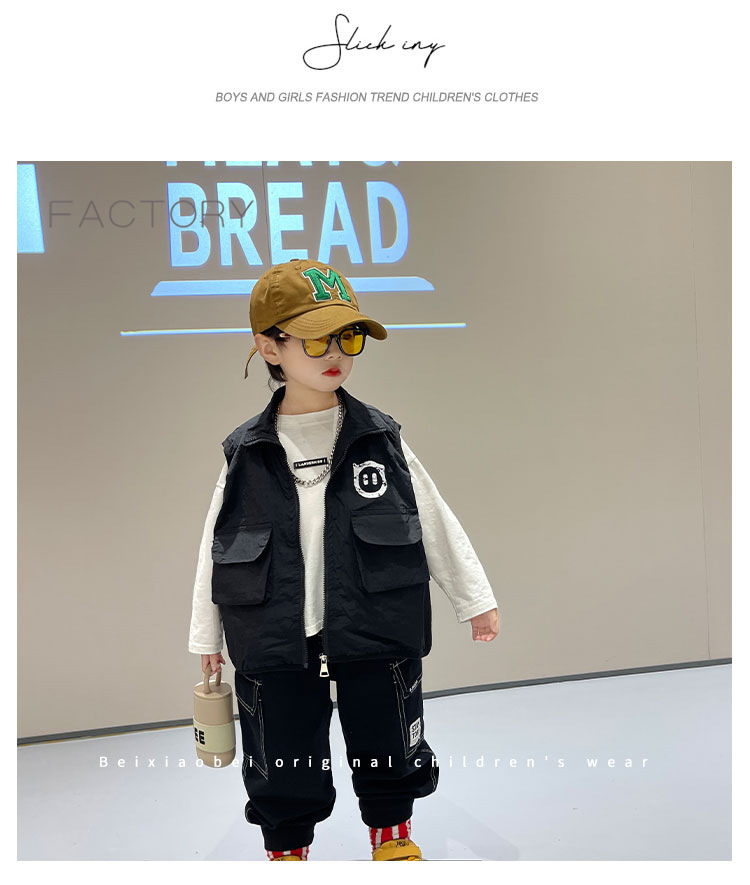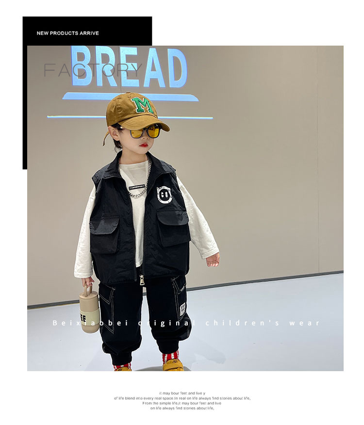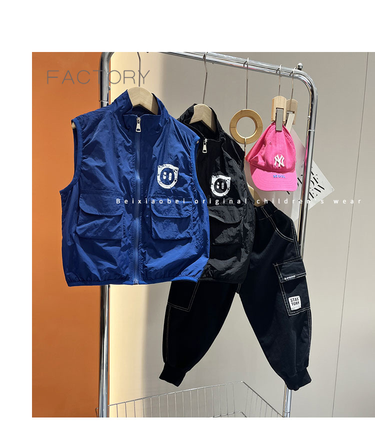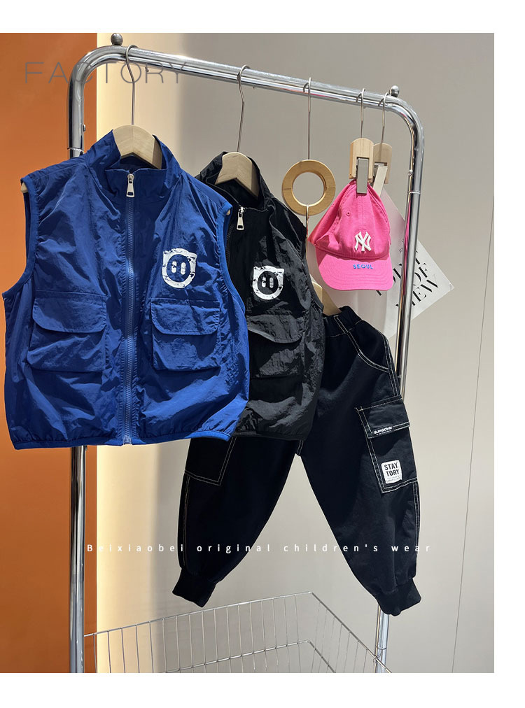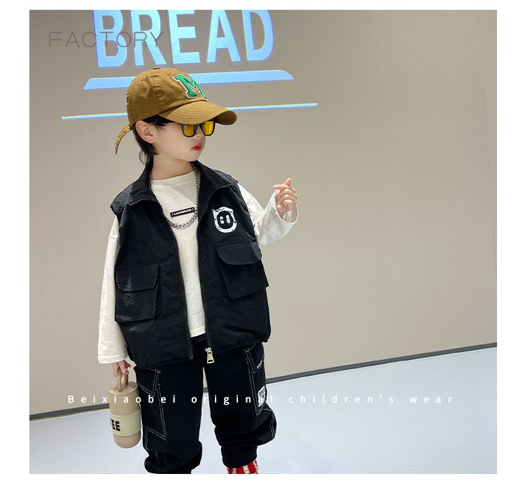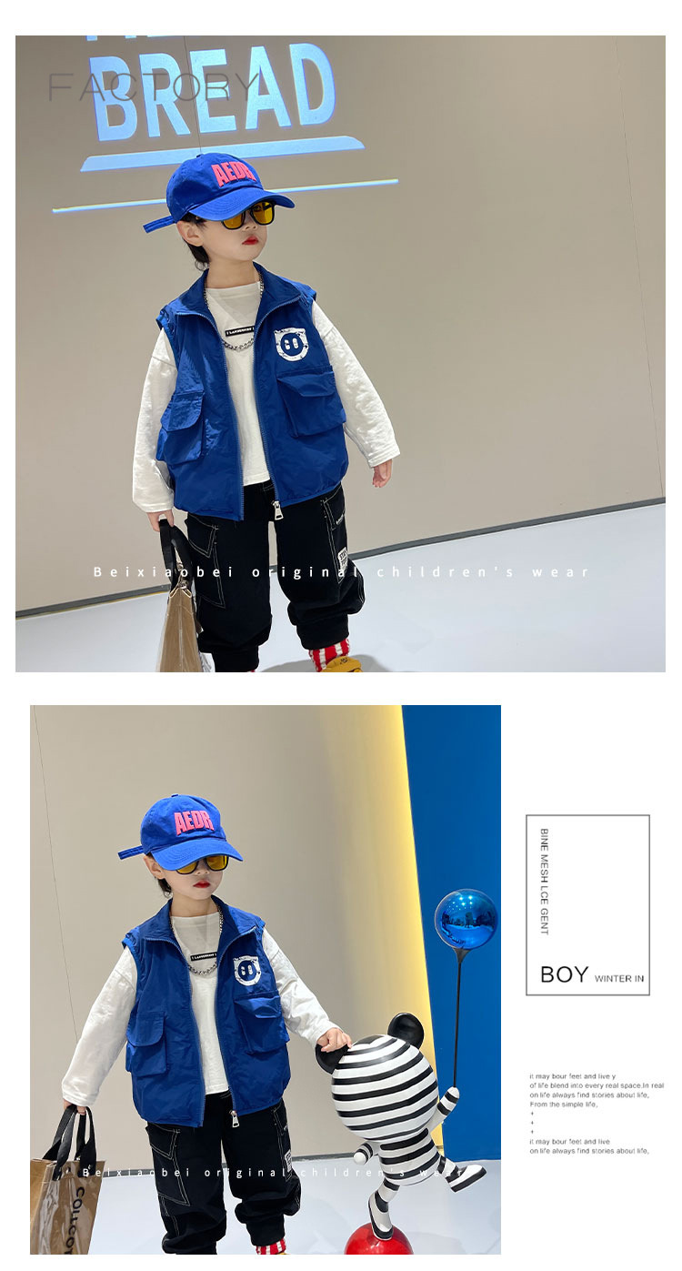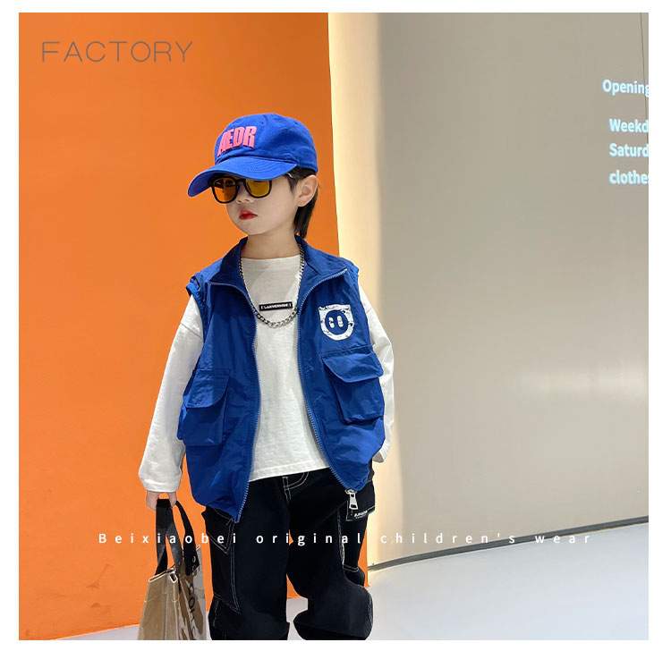 어린이 작업복 조끼 봄 2025 새로운 아기 트렌디 쿨 만화 느슨한 재킷 소년의 잘 생긴 왁스 코트스토어 가기