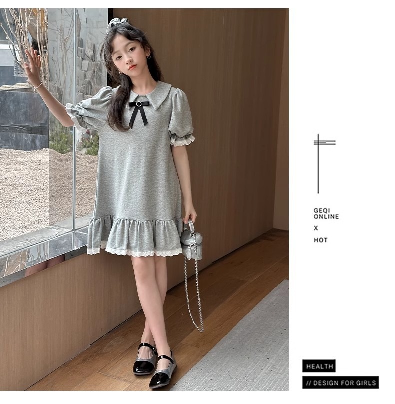 여자 폴로 원피스 2025 새로운 어린이 여름 원피스 대학 스타일 원피스 소녀 여름 유행 회색 스커트스토어 가기