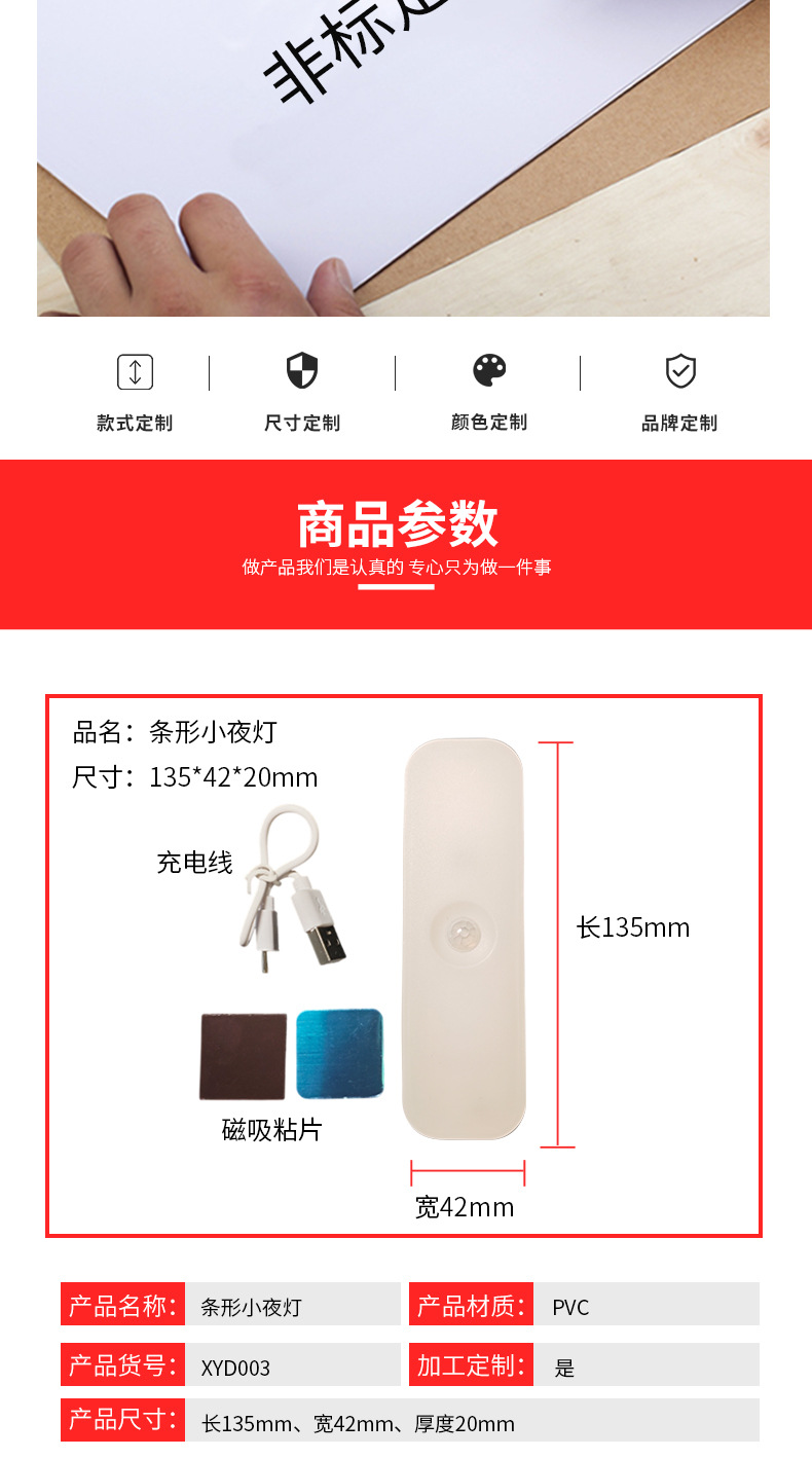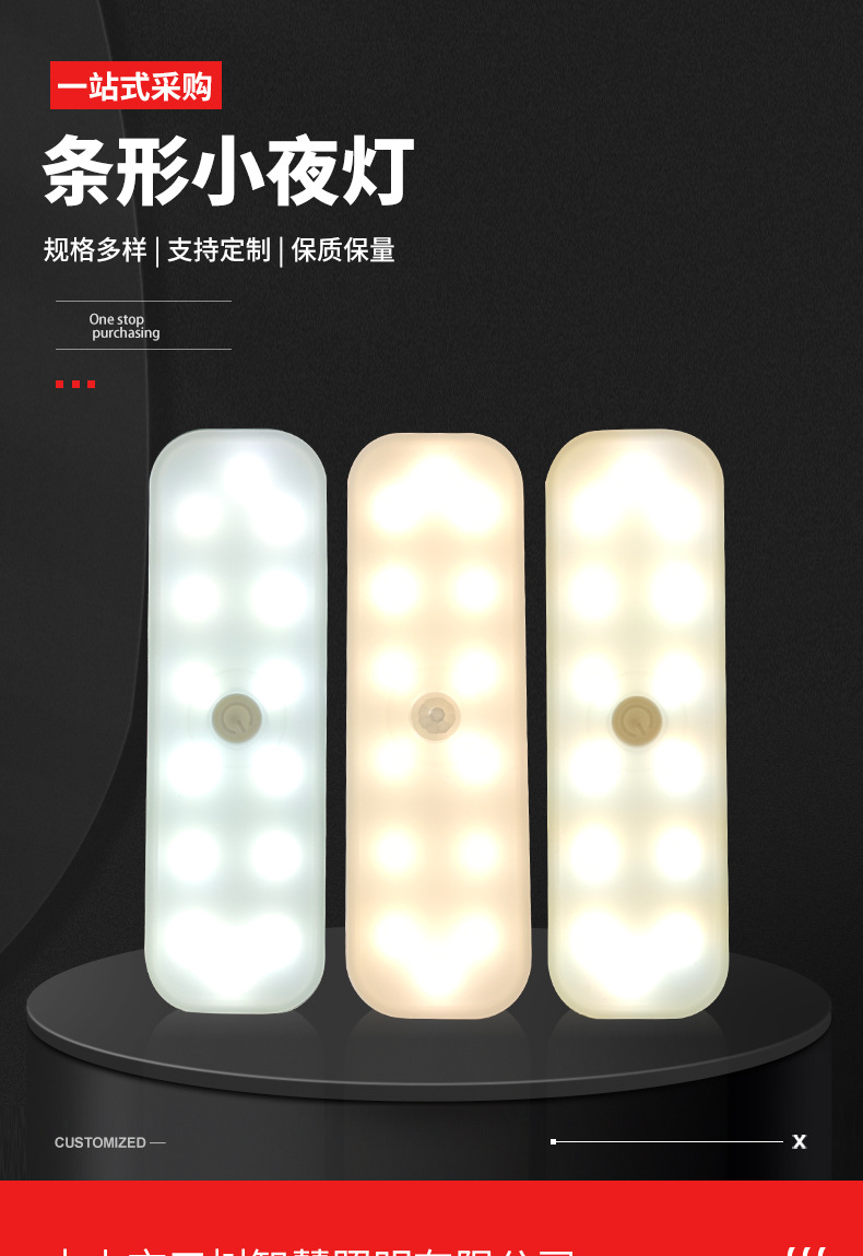 맞춤형 1350mm 휴대용 스트립 야간 조명 인체 유도 백색광 따뜻한 빛 버튼 3색 무단계 디밍 처리